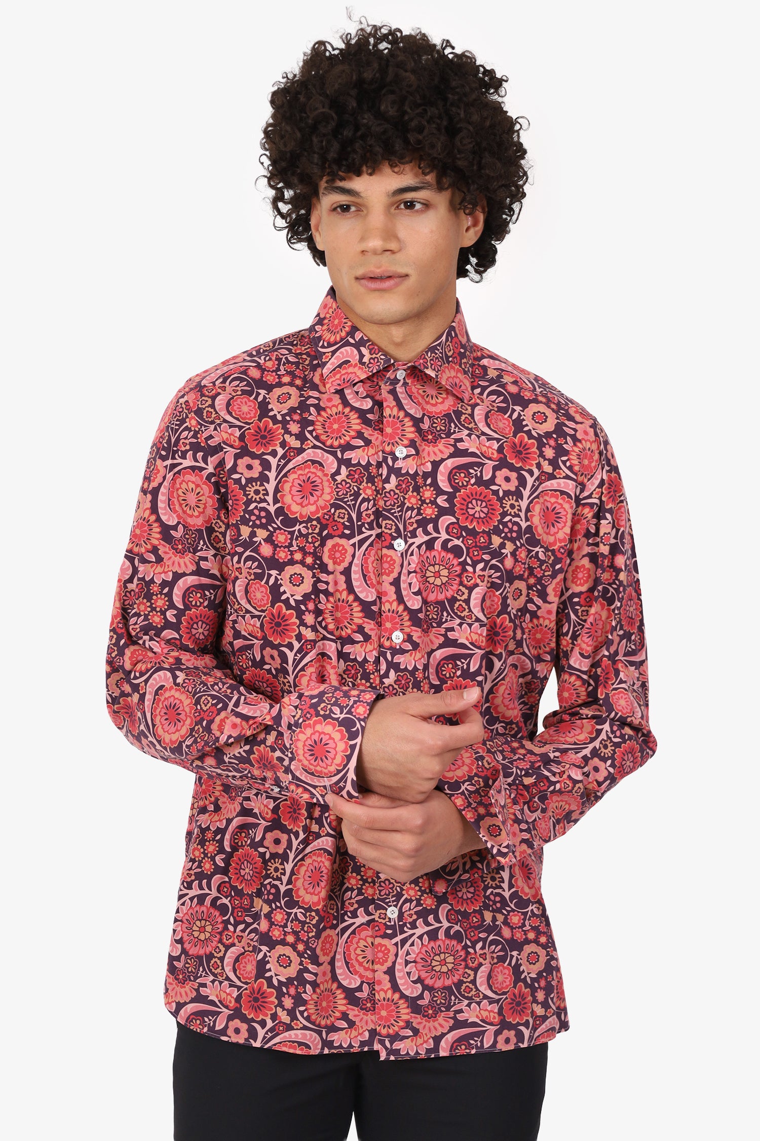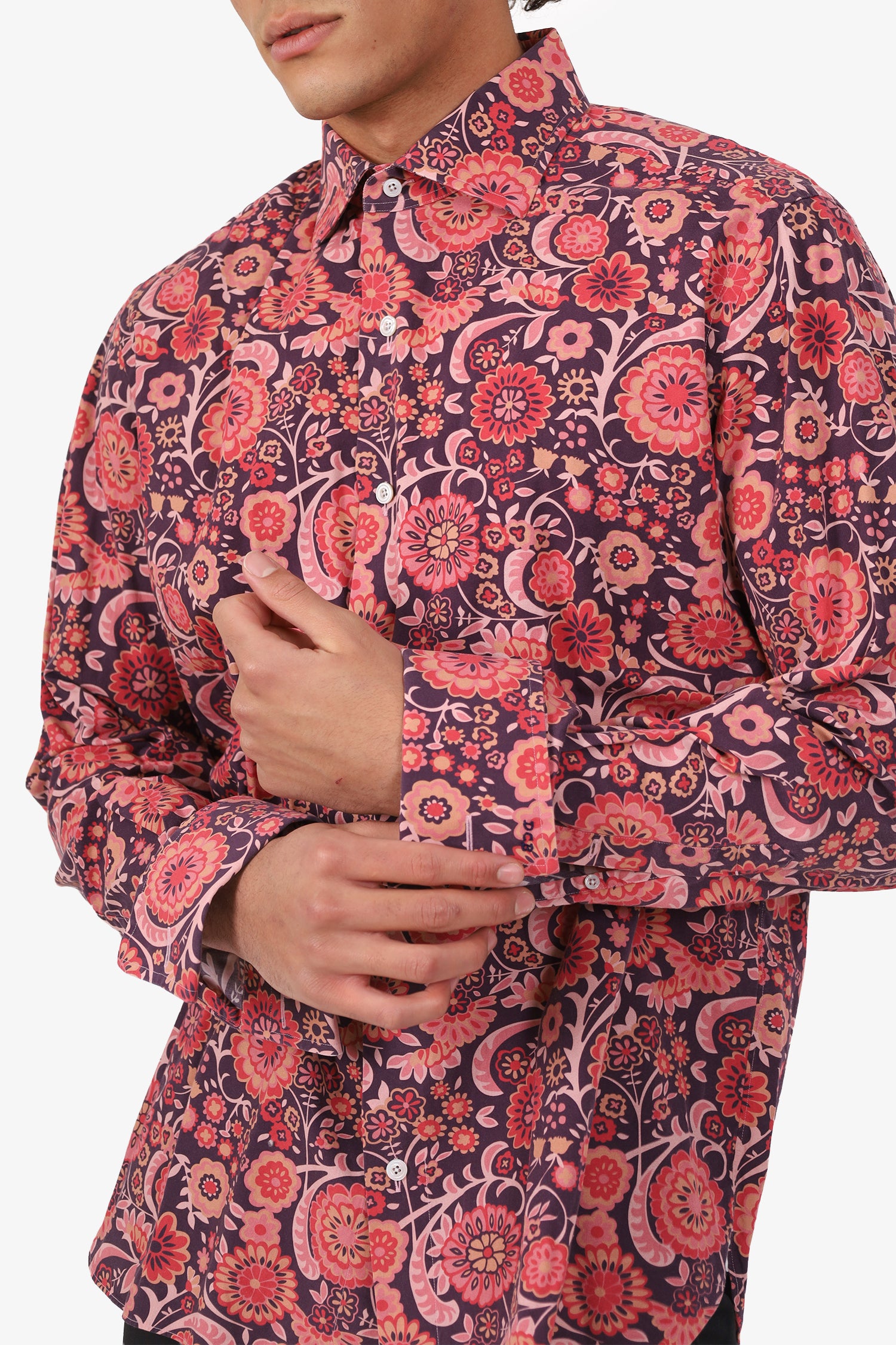 Refresh availabilityTom Ford Pink Floral Cotton Shirt. Pull-on. Collared neckline. Front button-up closure. Sleeve cuffs with button-up closure. Tonal stitching.