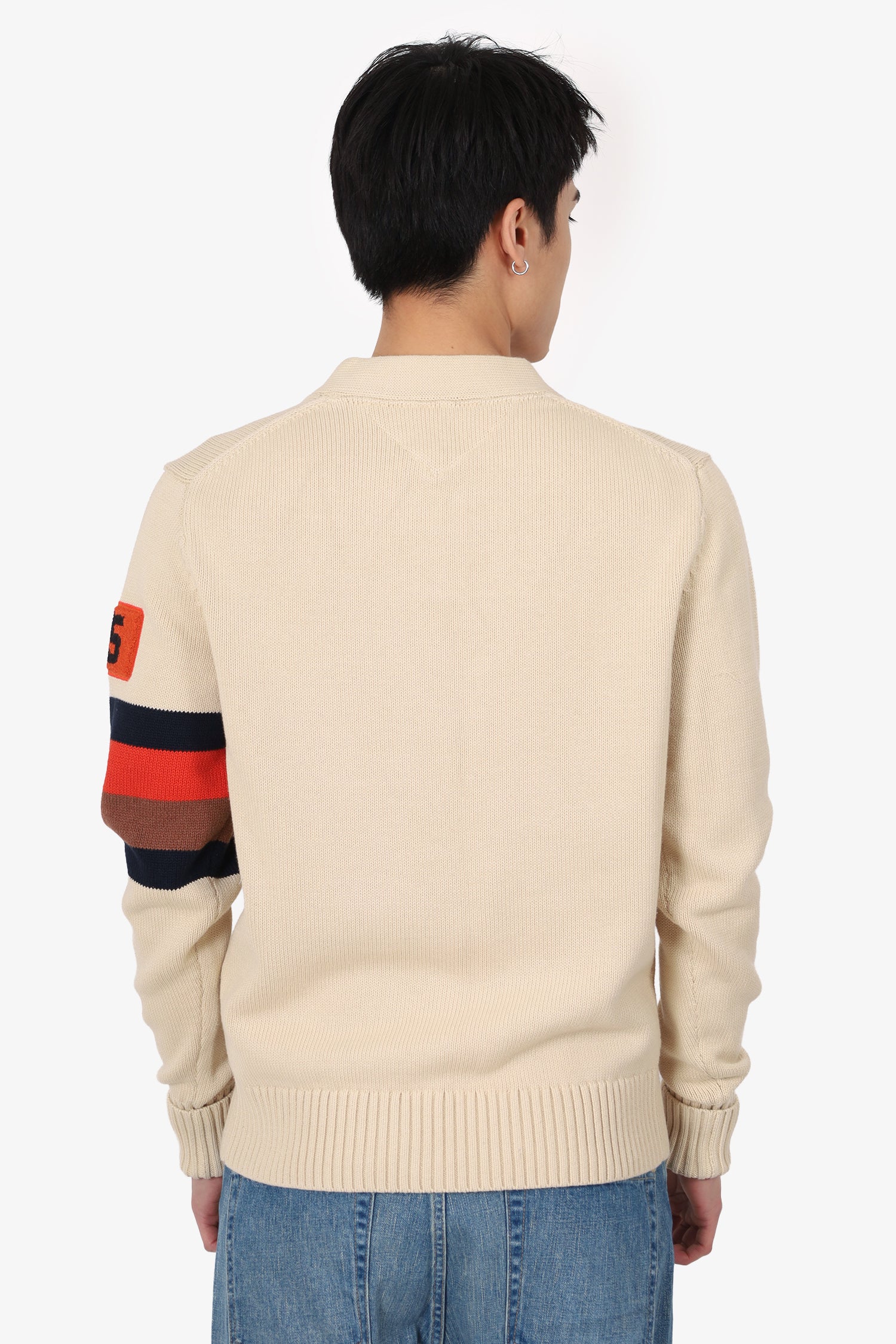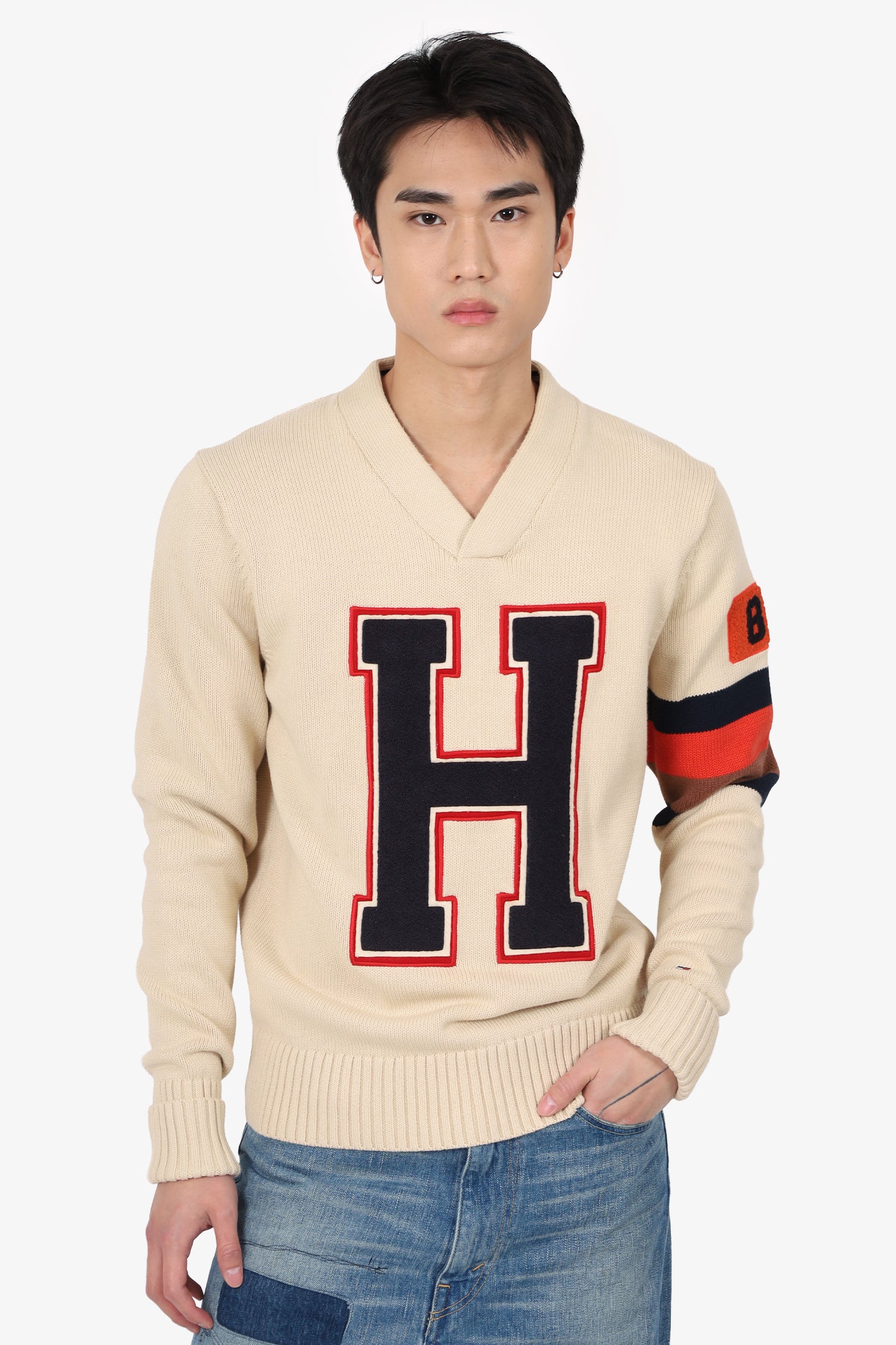 Refresh availabilityTommy Hilfiger X Kith Ivory Varsity Sweater. Pull-on. V-neckline. Ribbed sleeve cuffs and bottom hem. Tonal stitching.