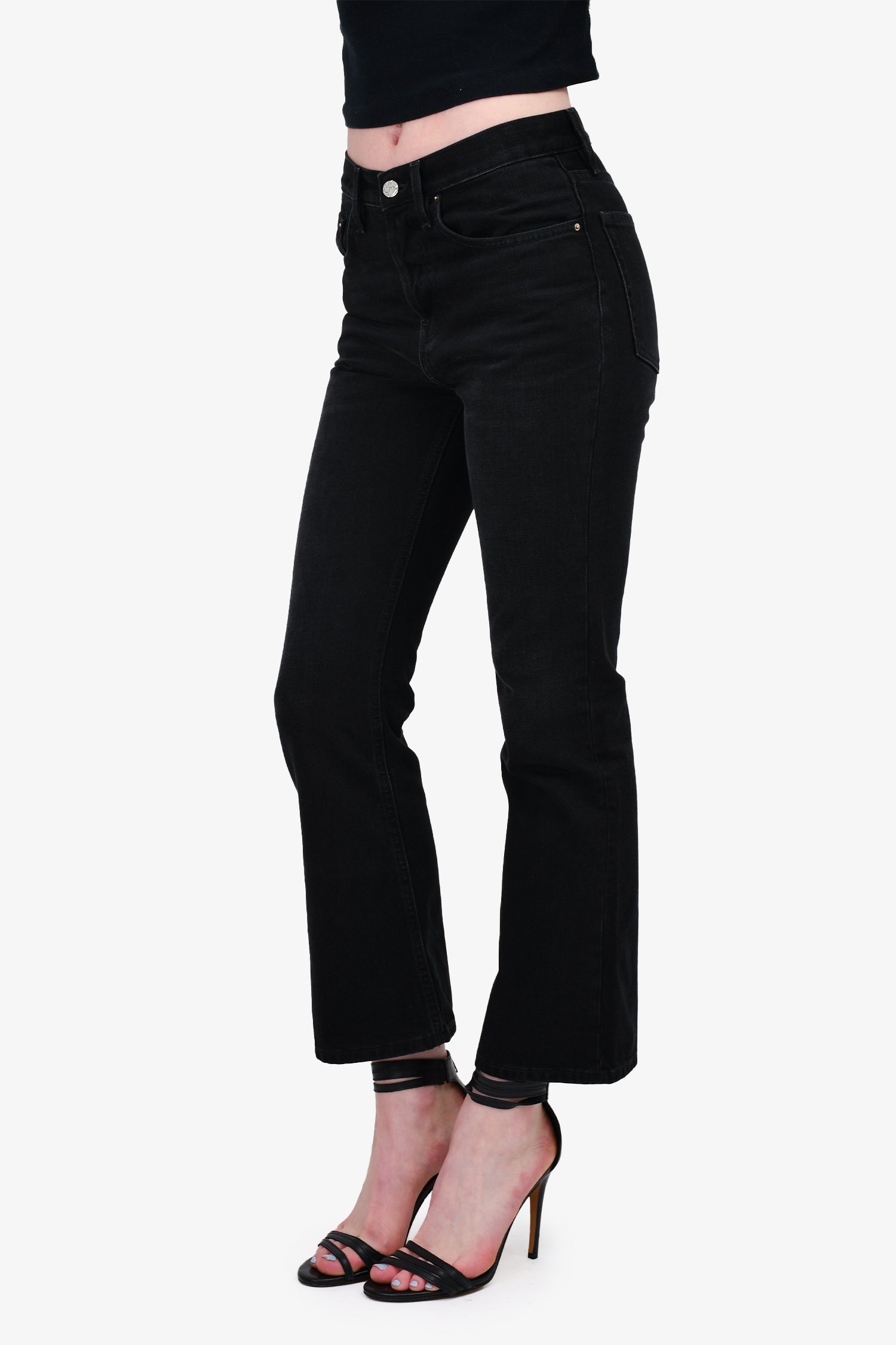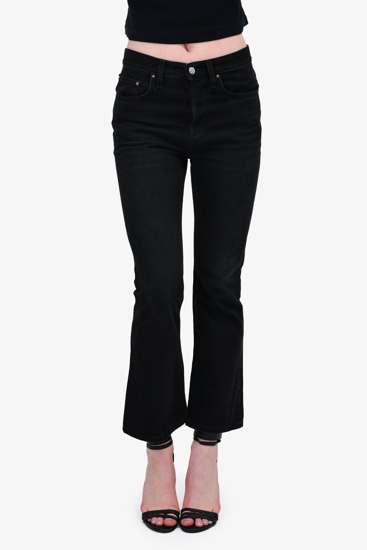 Refresh availabilityToteme Black Denim Mini Flared Jeans. Front button-up closure. Front and rear pockets. Waist belt loops. Tonal stitching.