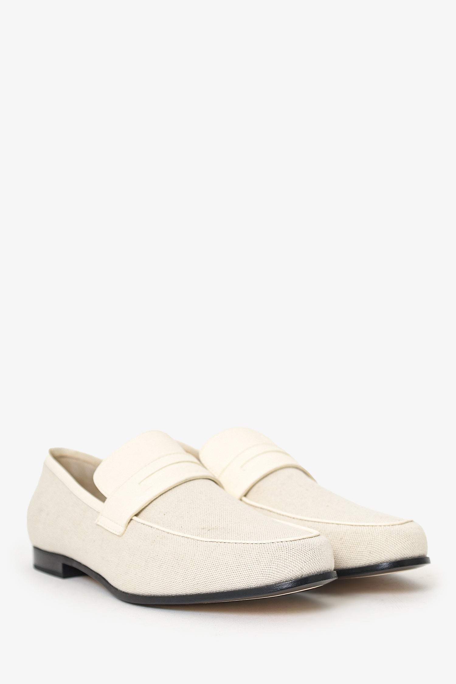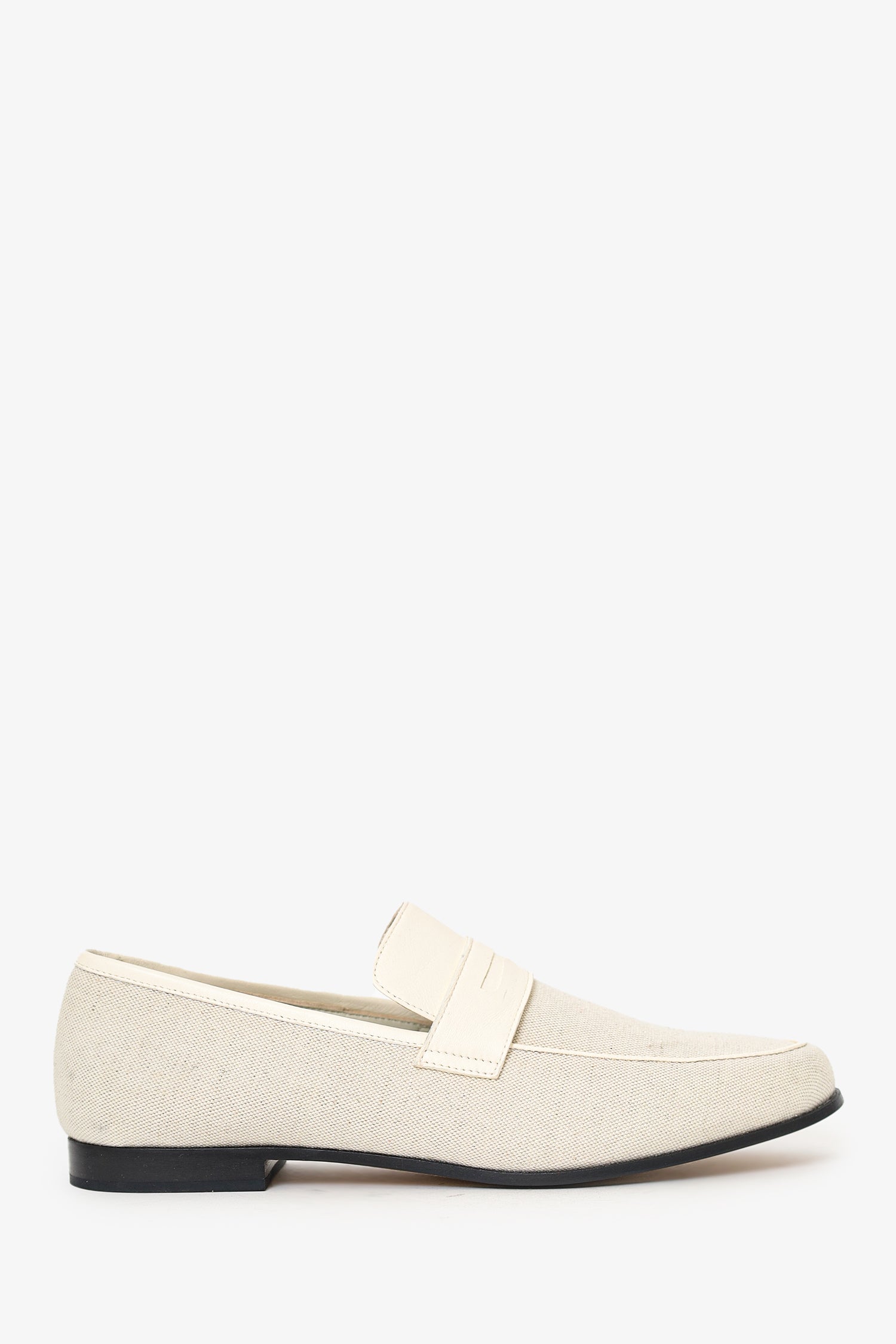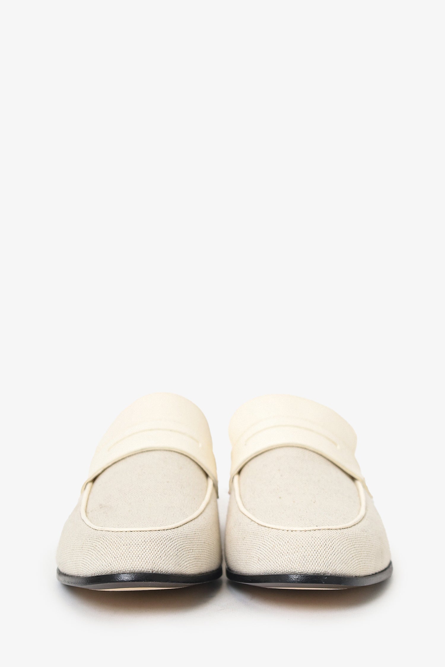 Refresh availabilityToteme White Canvas Loafers. Slip on. Rounded point-toe. Tonal stitching.