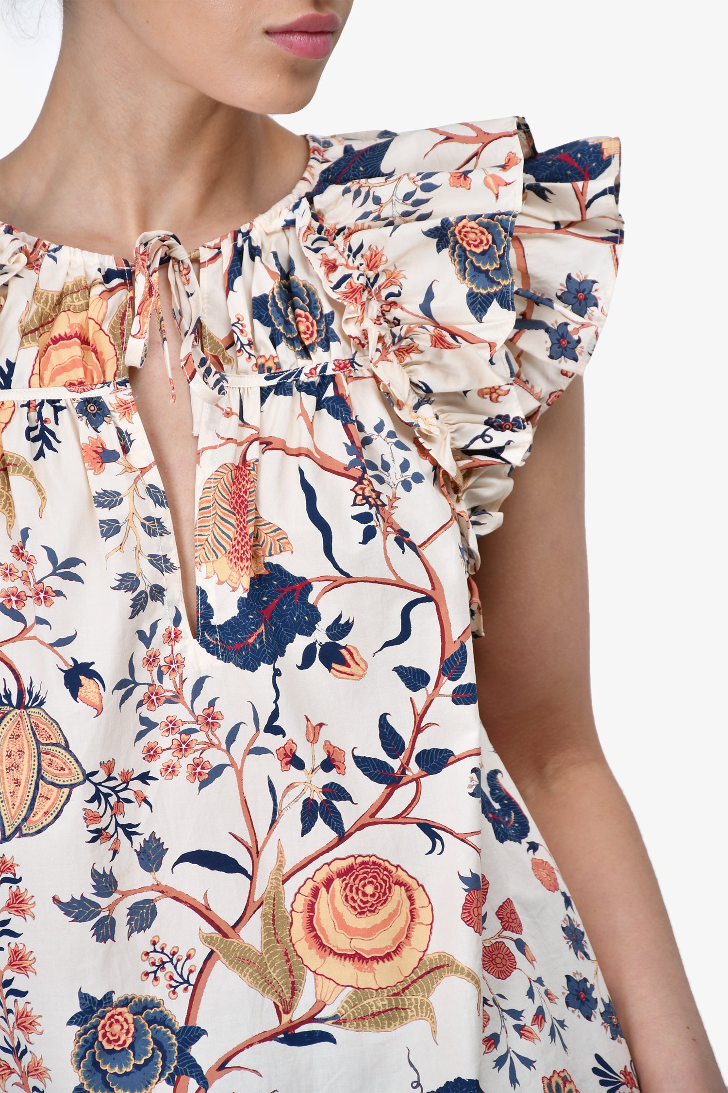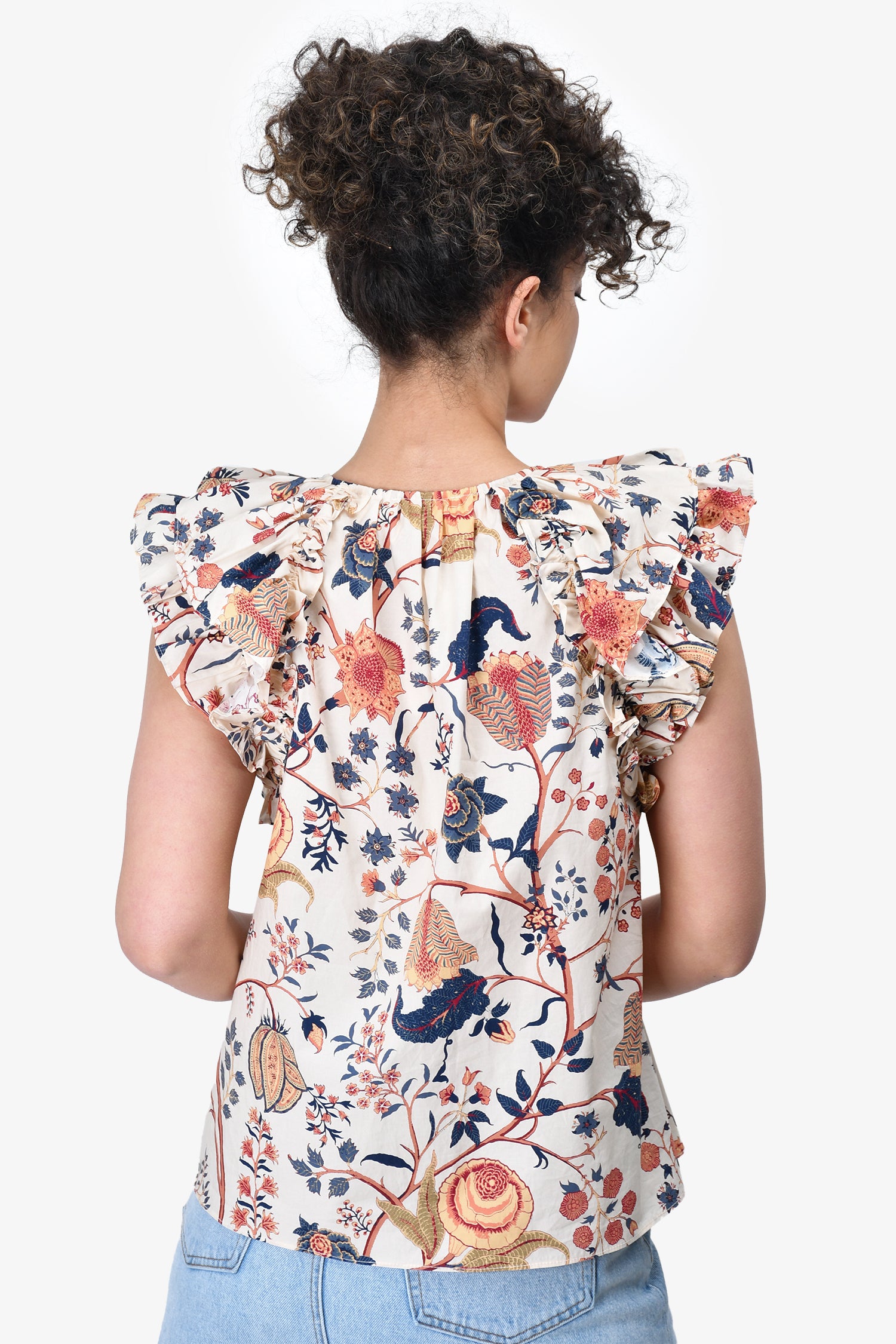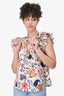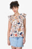 Ulla Johnson Beige Floral Printed Ruffle Detailed Top Size 4