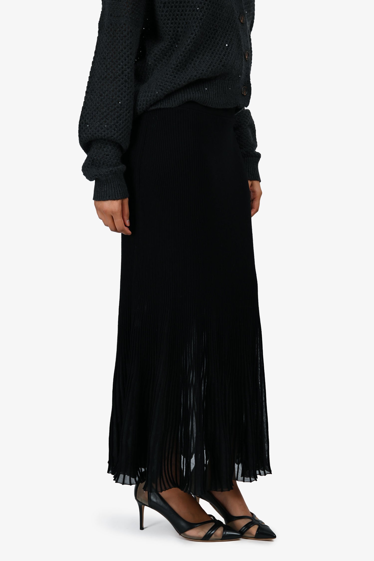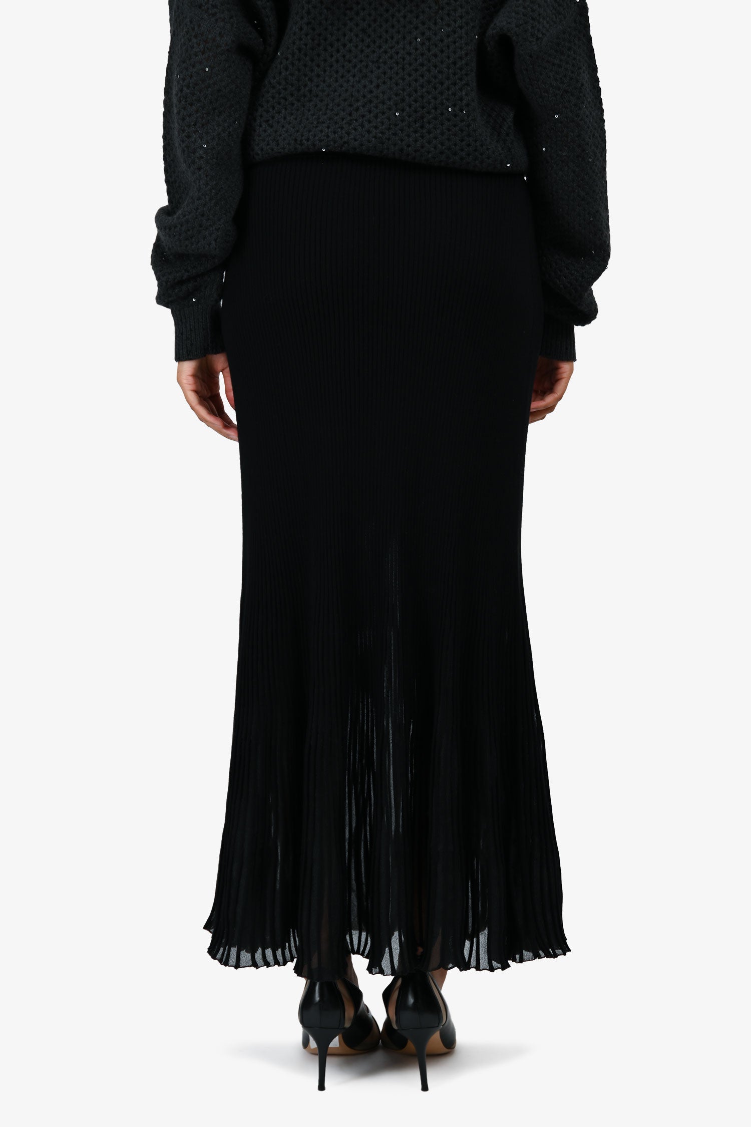 Refresh availabilityUlla Johnson Black Ribbed Flared Midi Skirt. Pull-on. Elasticized waistband. Tonal stitching.
