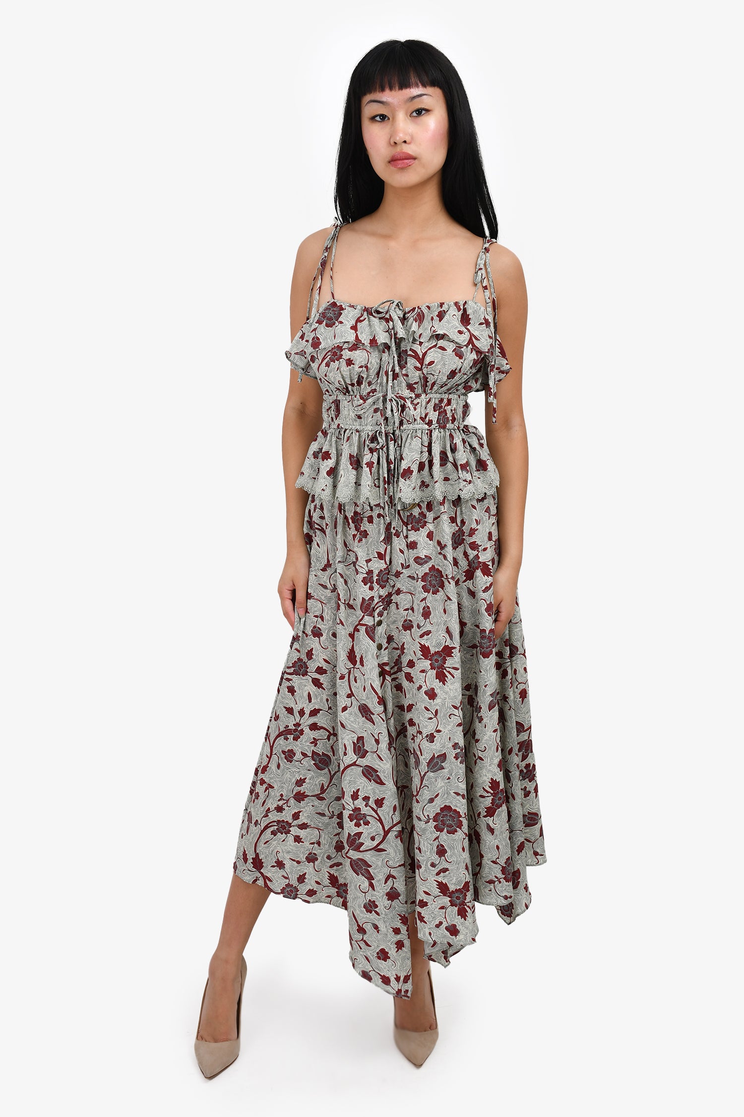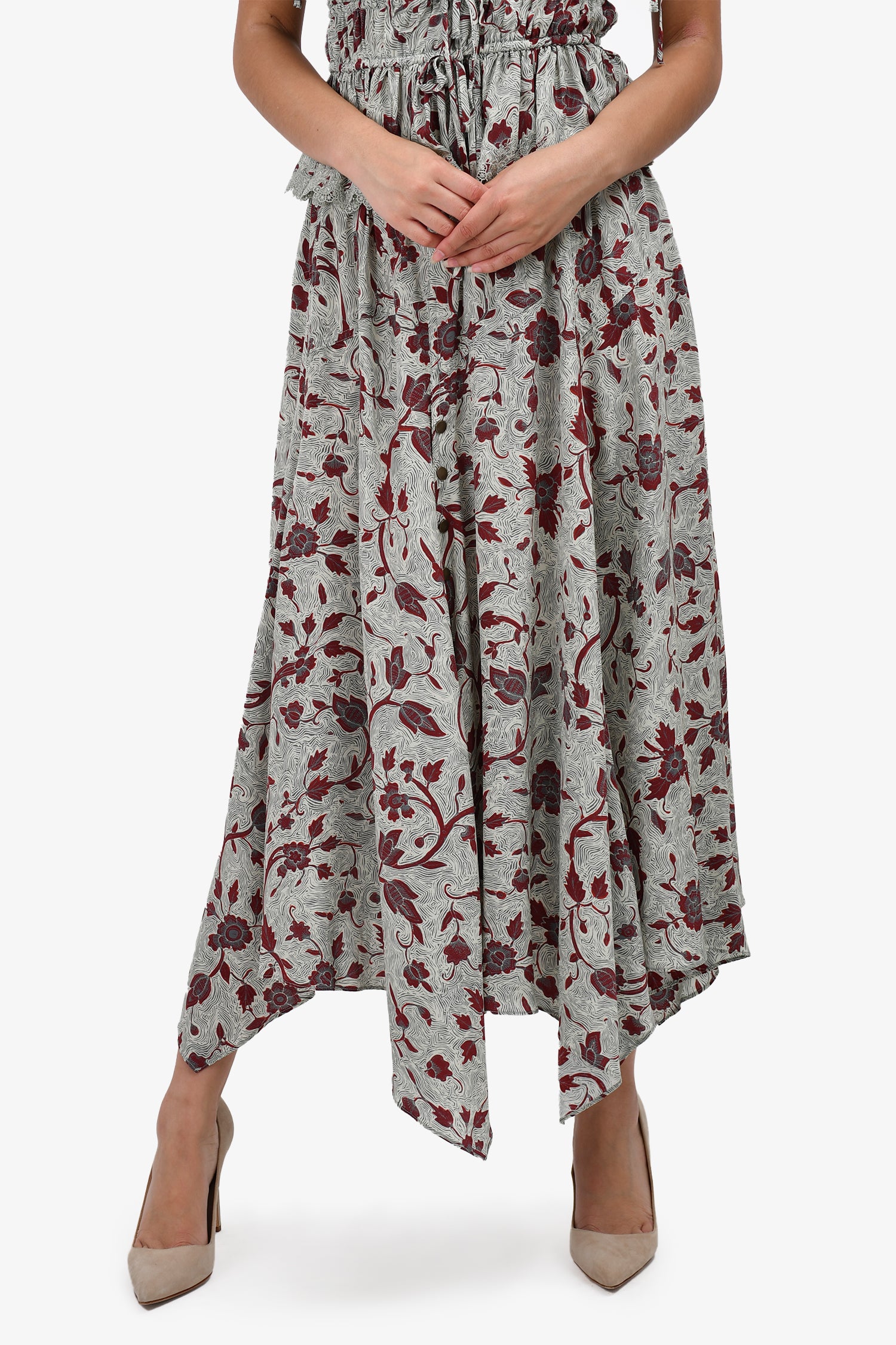 Refresh availabilityUlla Johnson Blue/Burgundy Floral Silk Tank + Midi Skirt with Belt 'Luella' Set. Tank: Tie-up shoulder straps. Tie-up detailing at the front. Skirt: Front waist belt with buckle closure. Snap-button closures on the sides. Unlined.