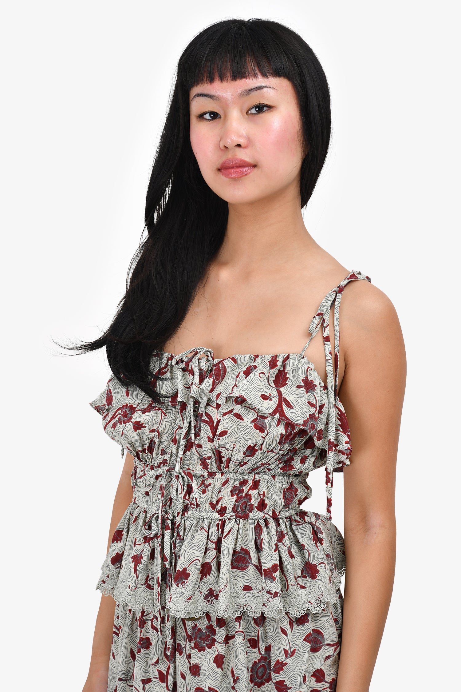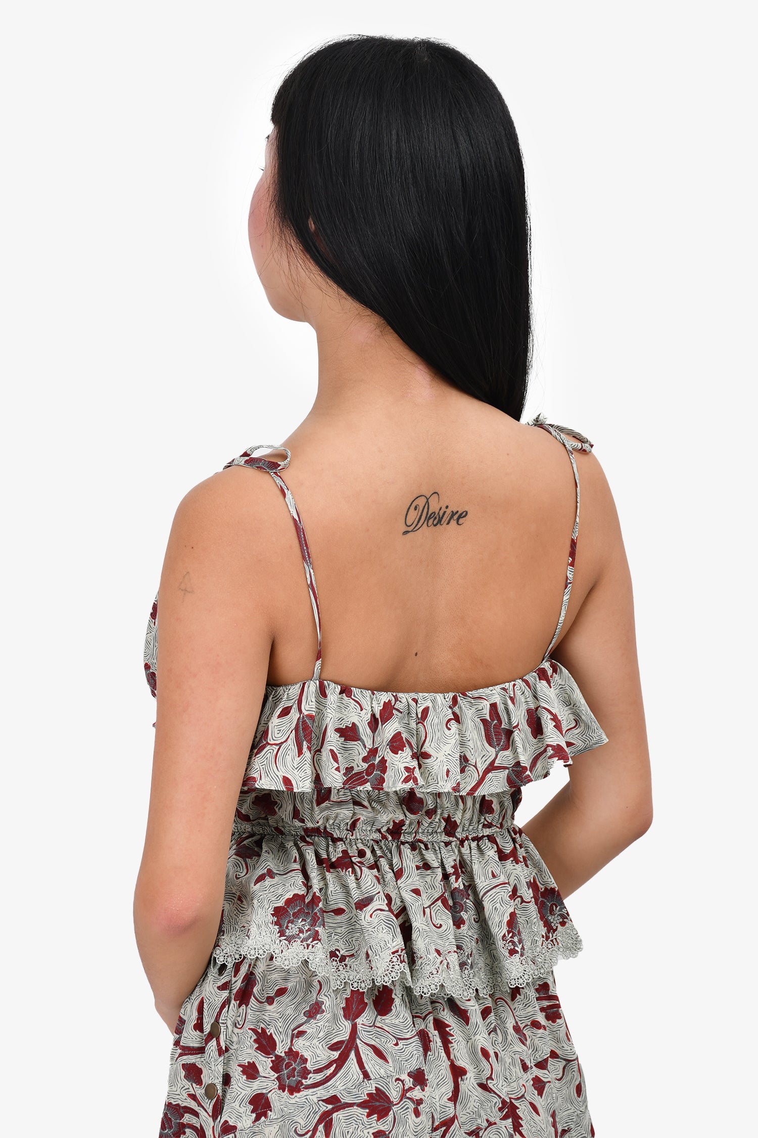 Ulla Johnson Blue/Burgundy Floral Silk Tank + Midi Skirt with Belt 'Luella' Set Size 2