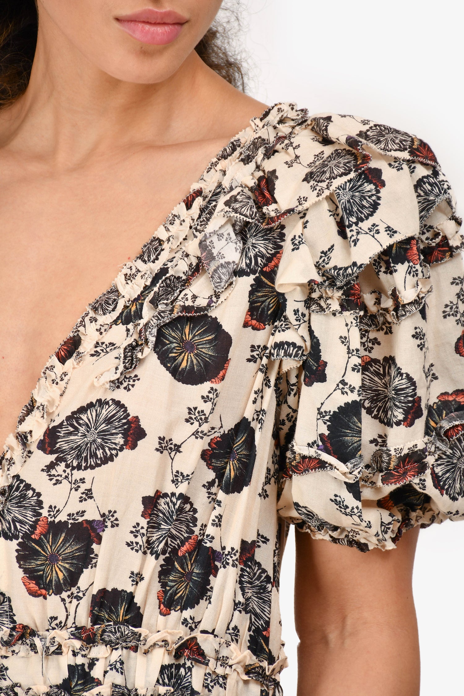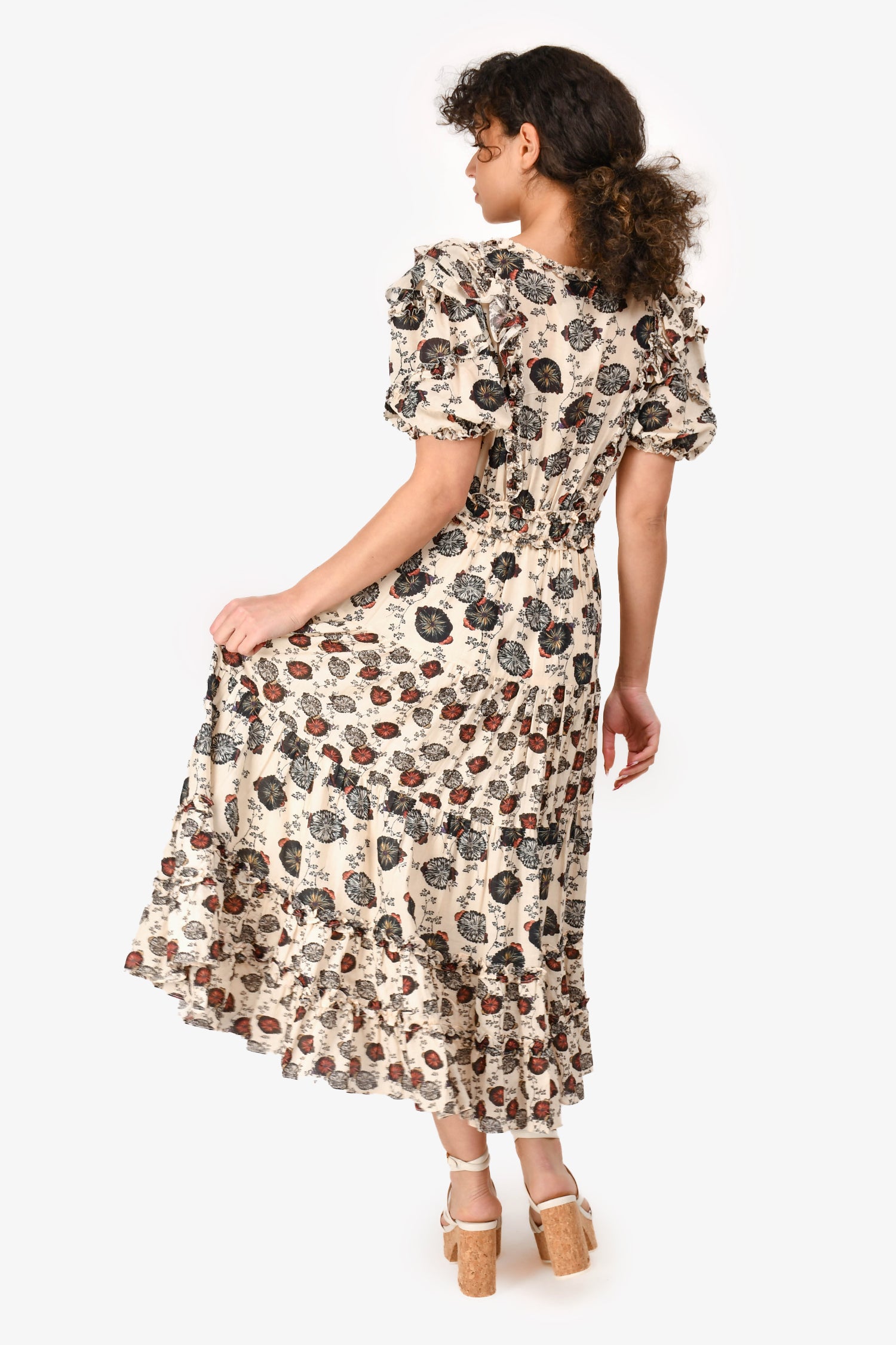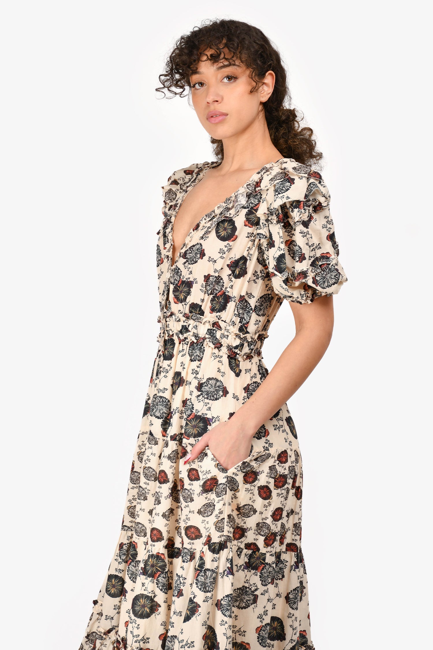 Refresh availabilityUlla Johnson Cream/Black Cotton Floral V-Neck Maxi Dress. Front button-down closure. Lined. Tonal stitching.