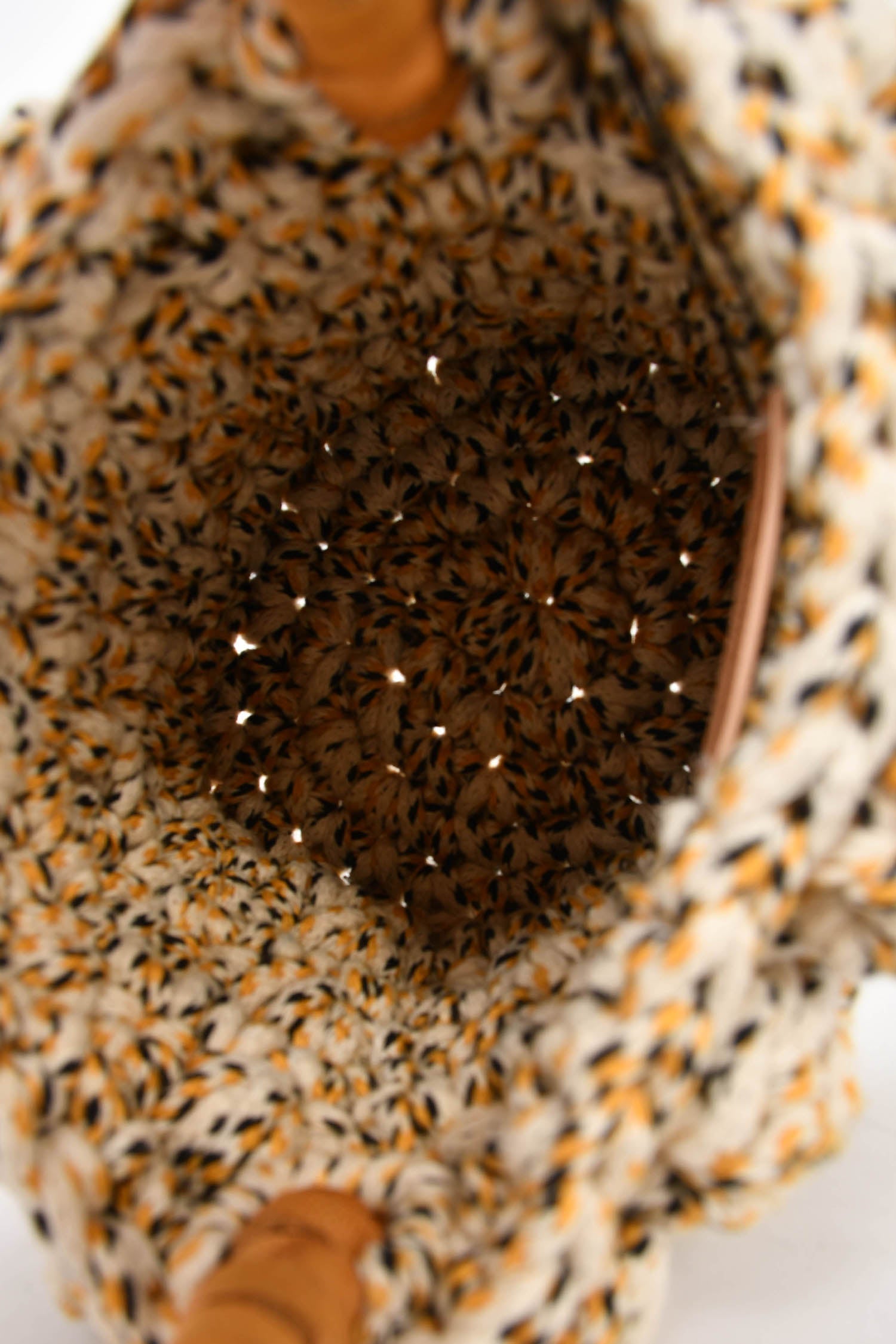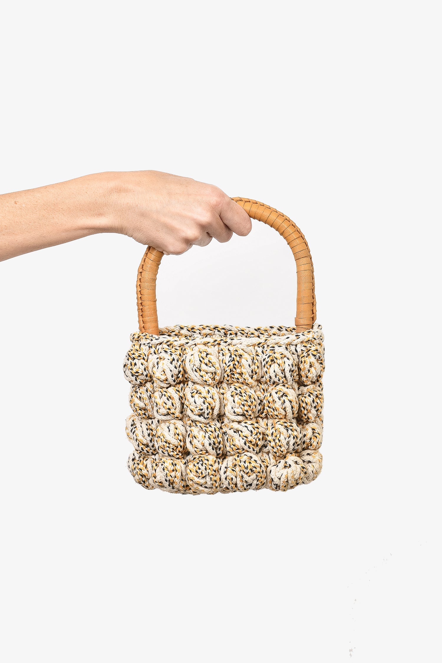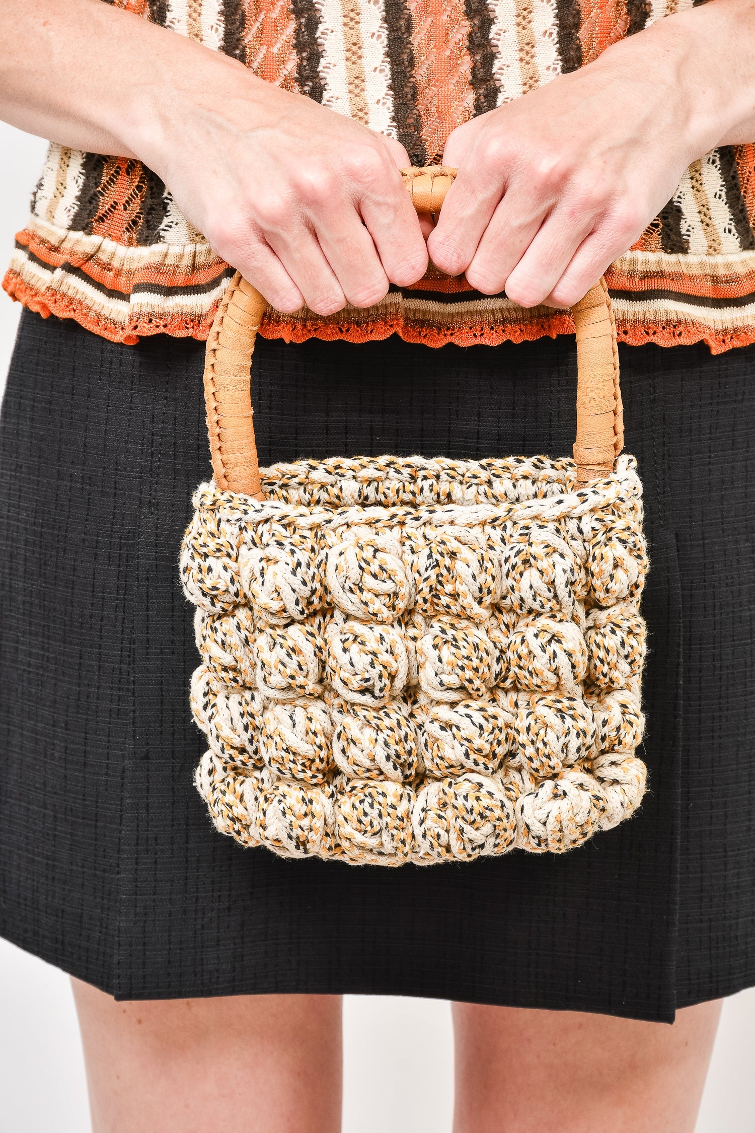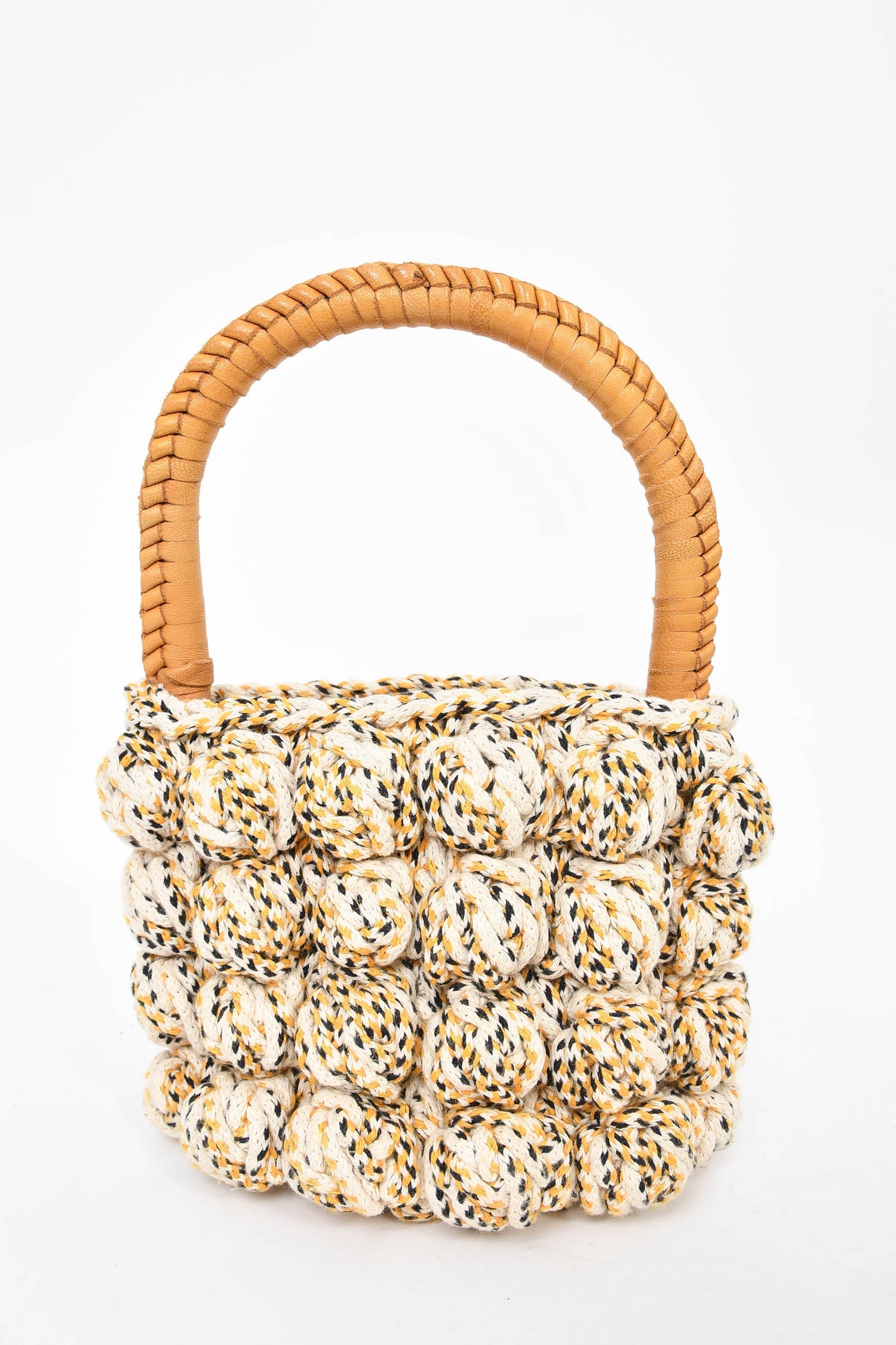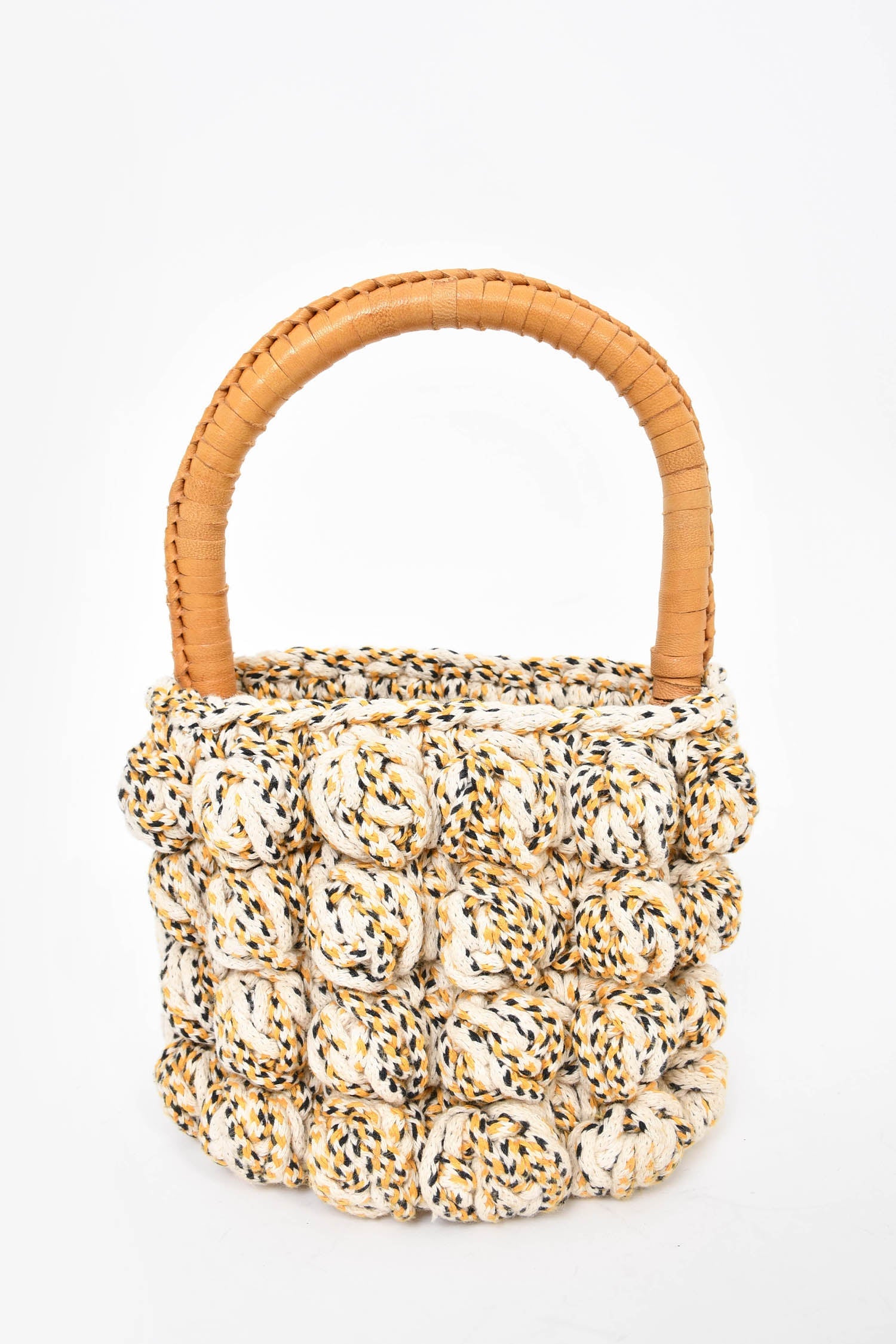 Ulla Johnson Cream/Yellow Knit Leather Top Handle Bucket Bag