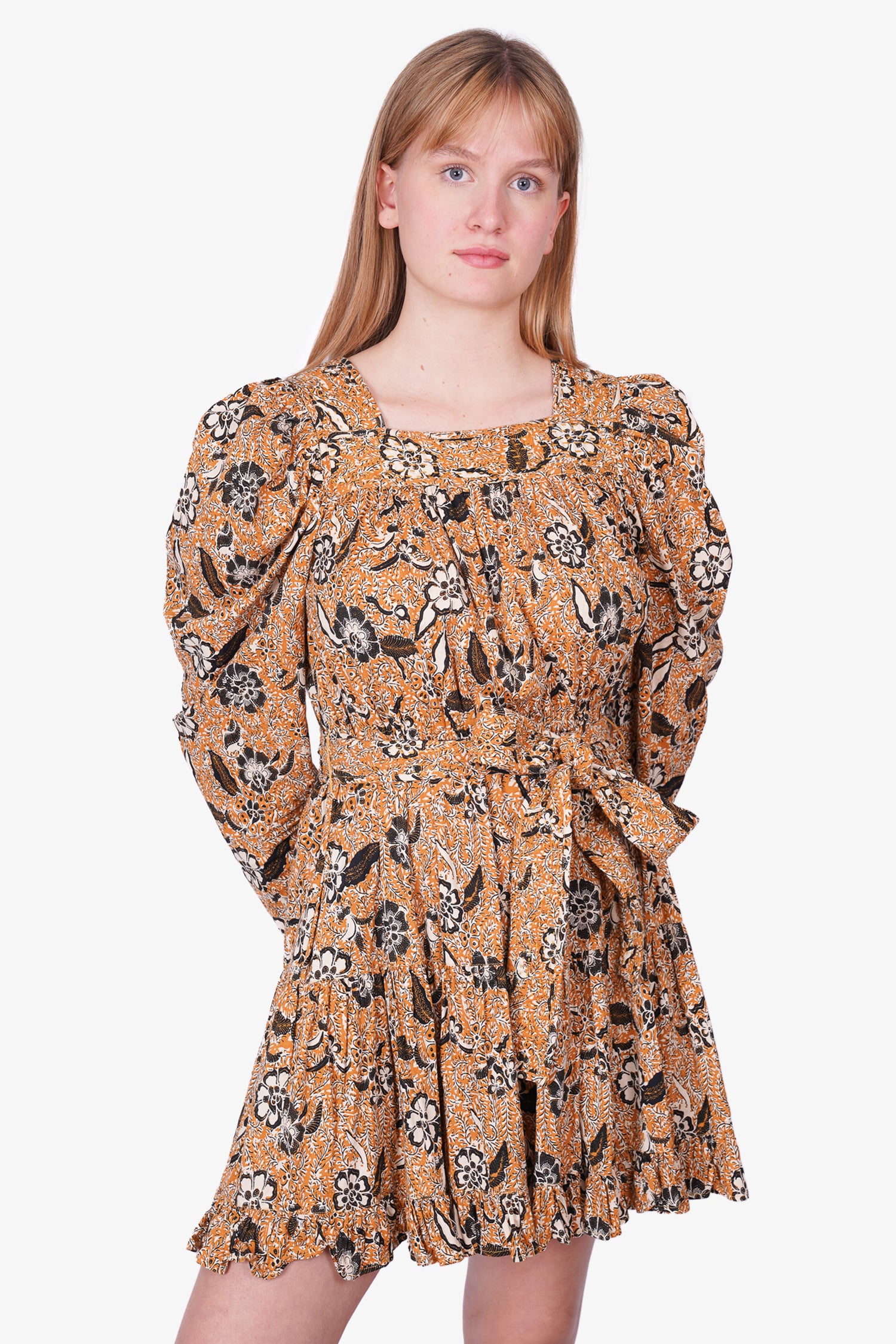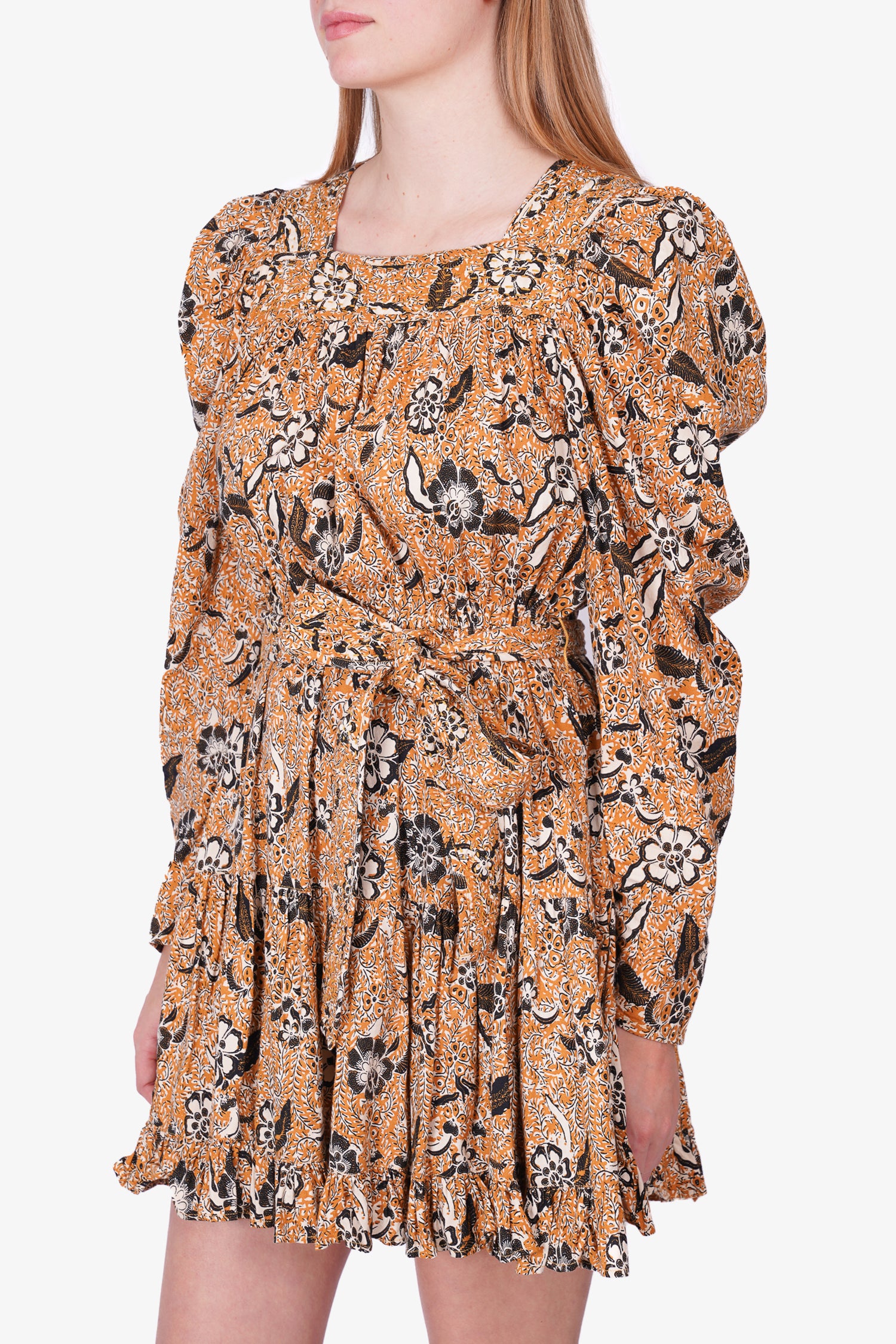 Refresh availabilityUlla Johnson Multicolour Floral Print Belted Dress. Square neckline. Tie waist. Ruffle hem. Tonal stitching.
