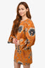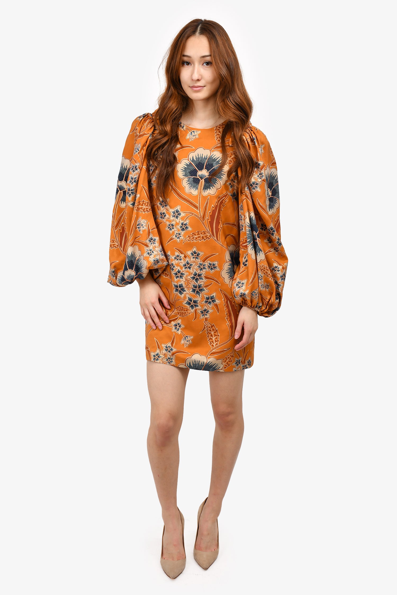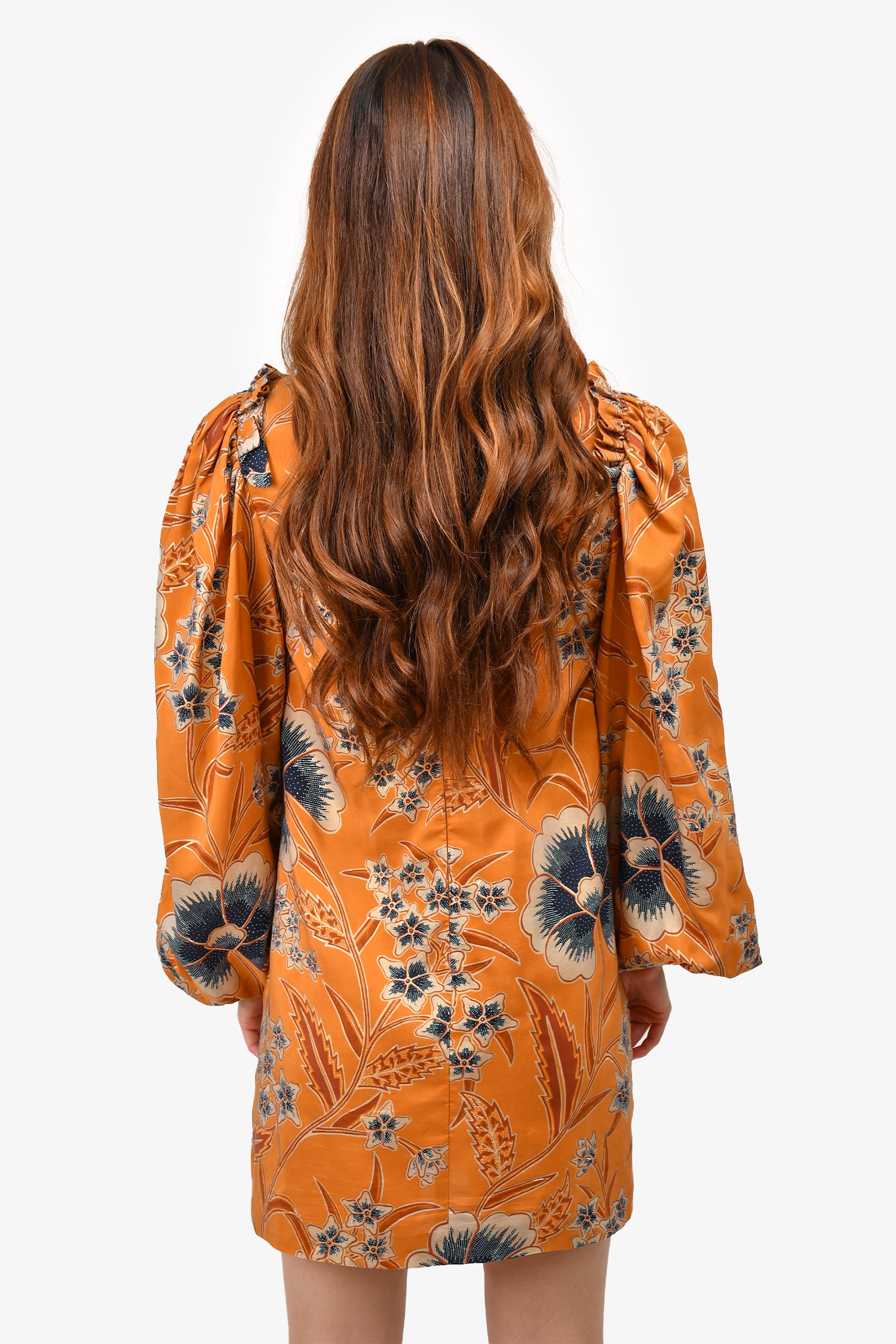 Ulla Johnson Orange/Blue Floral Puff Sleeve Mini Dress Size M