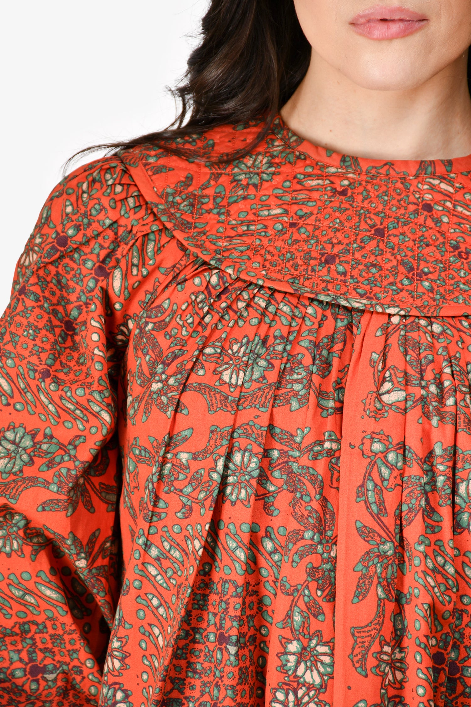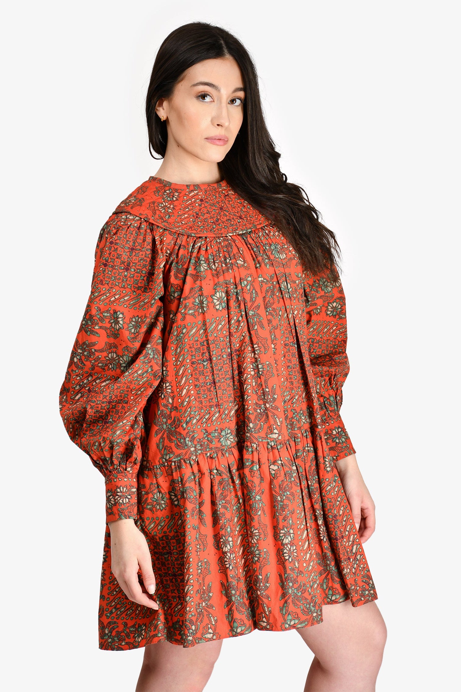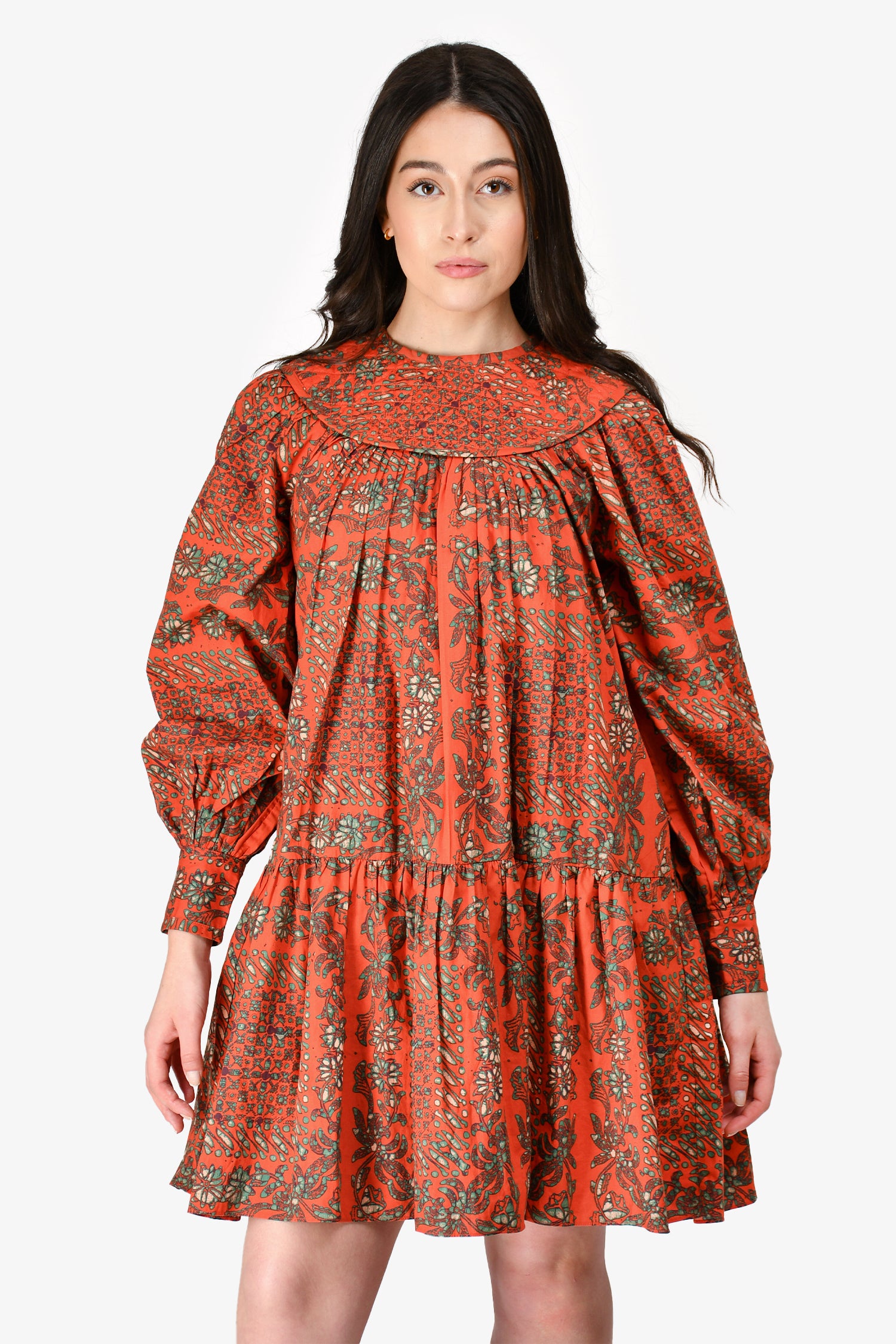 Refresh availabilityUlla Johnson Orange Cotton Printed Long Sleeve Dress. Rear zip closure. Button closure at cuffs. Unlined. Tonal stitching.