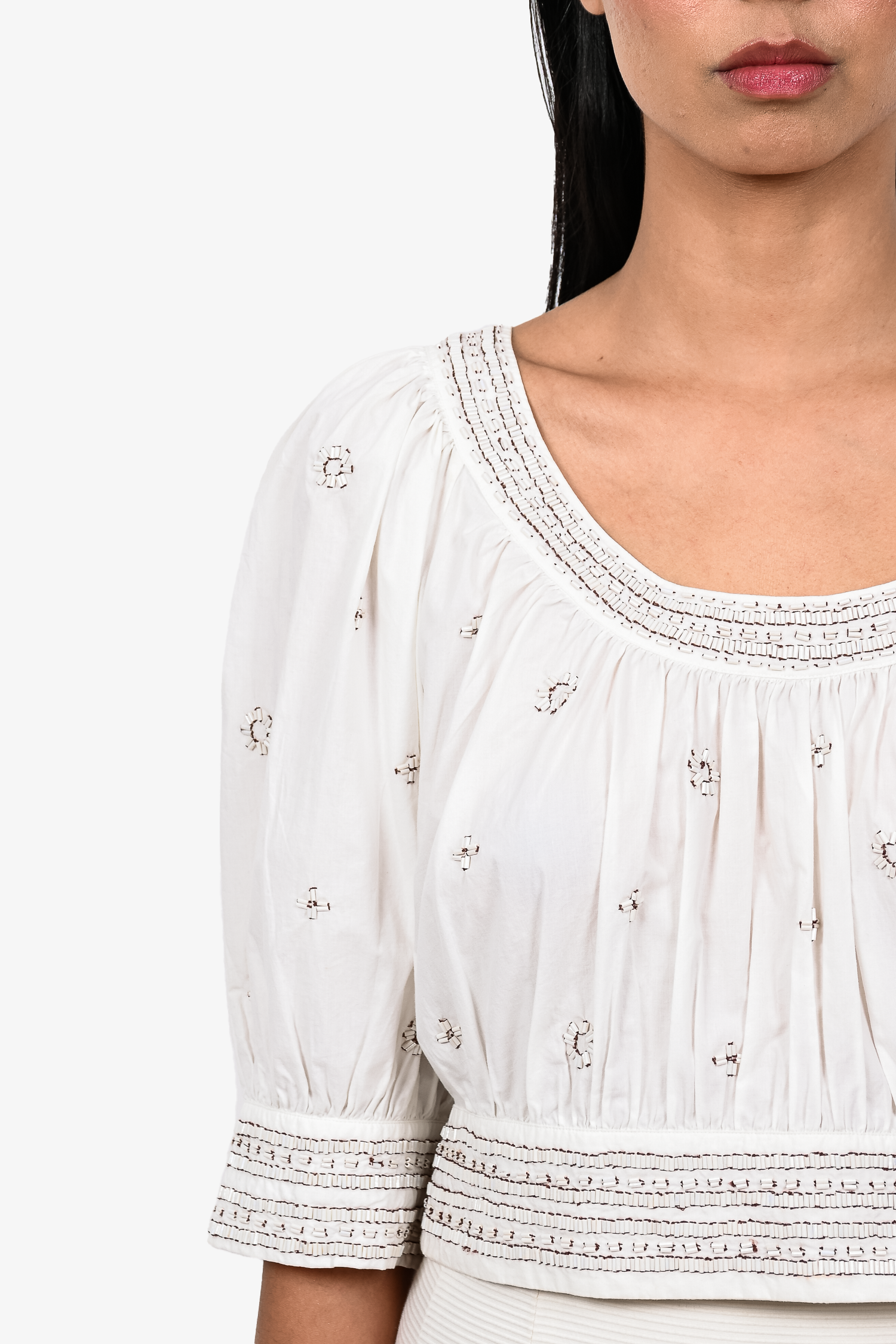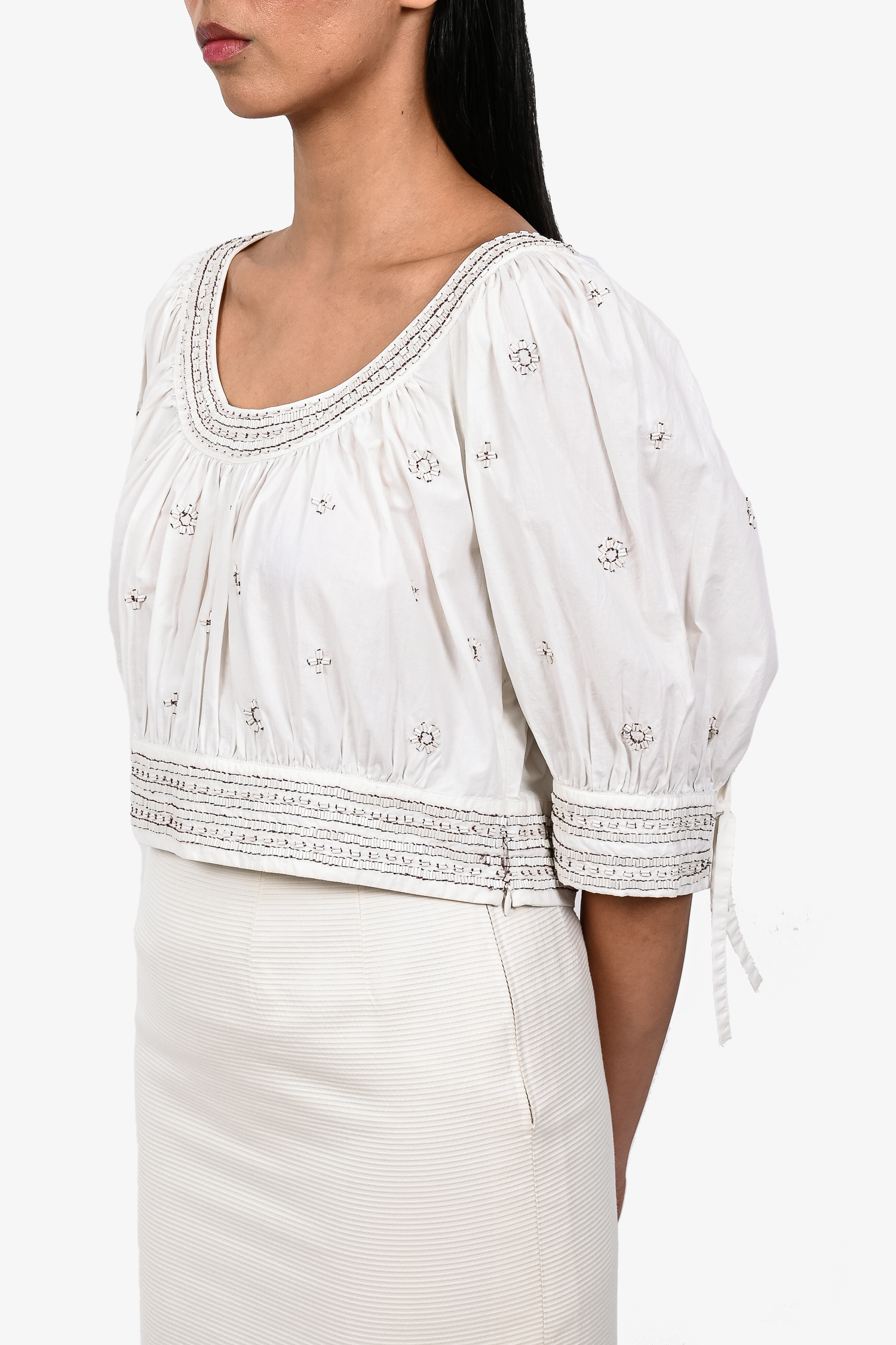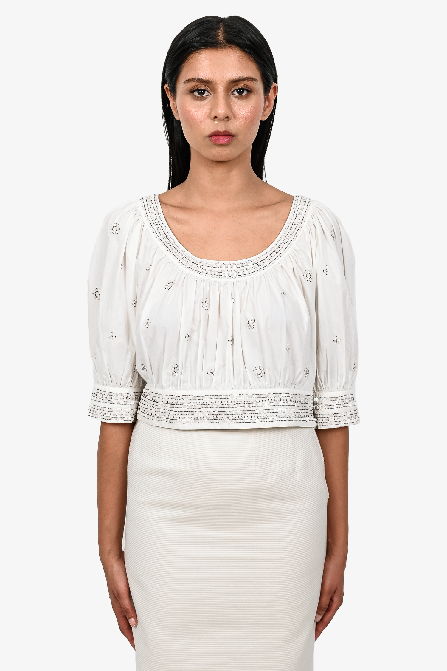 Ulla Johnson White Bead Embellished Crop Top Size 12