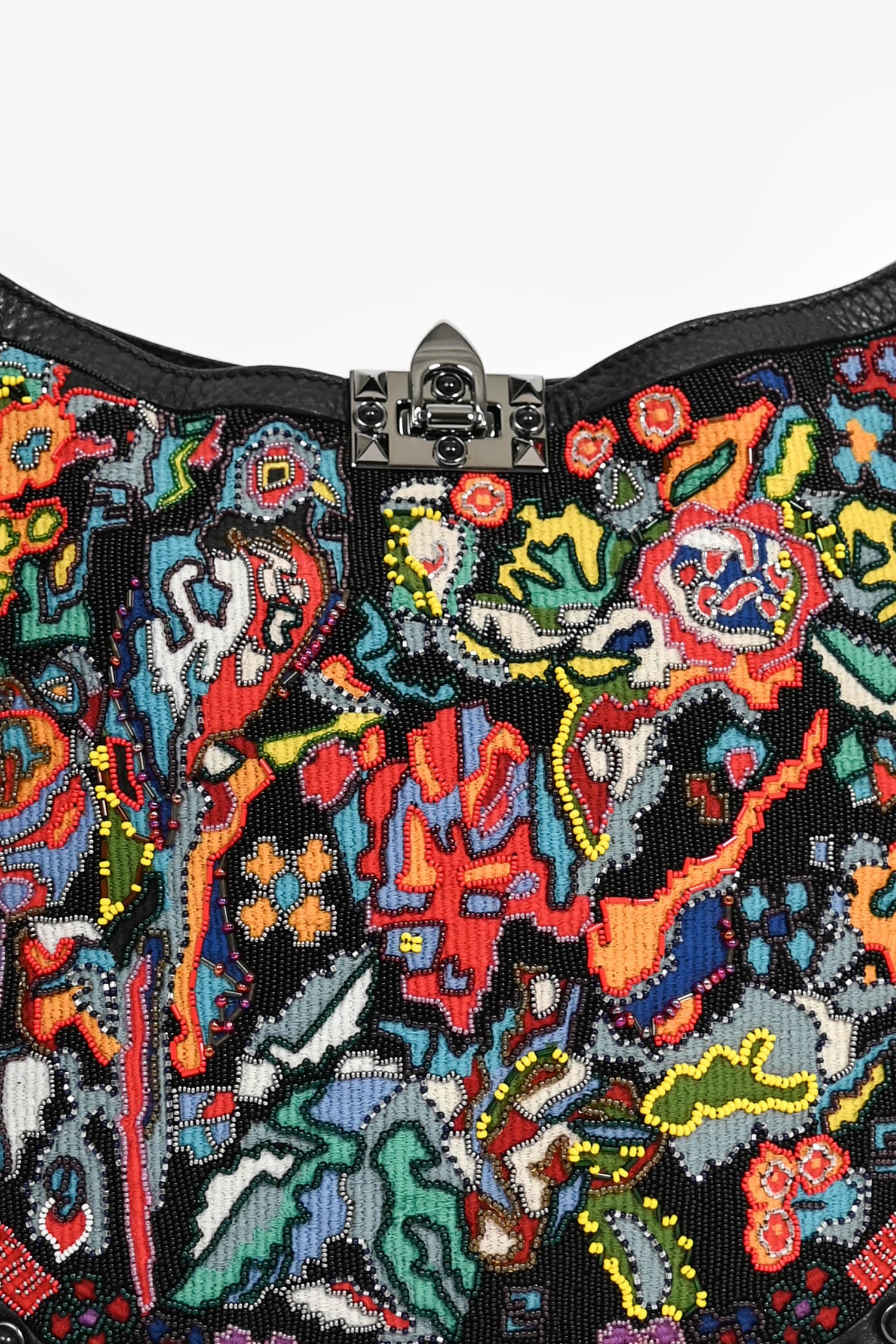 Valentino 2018 Black Leather Multicolour Beaded Guitar Crossbody Bag