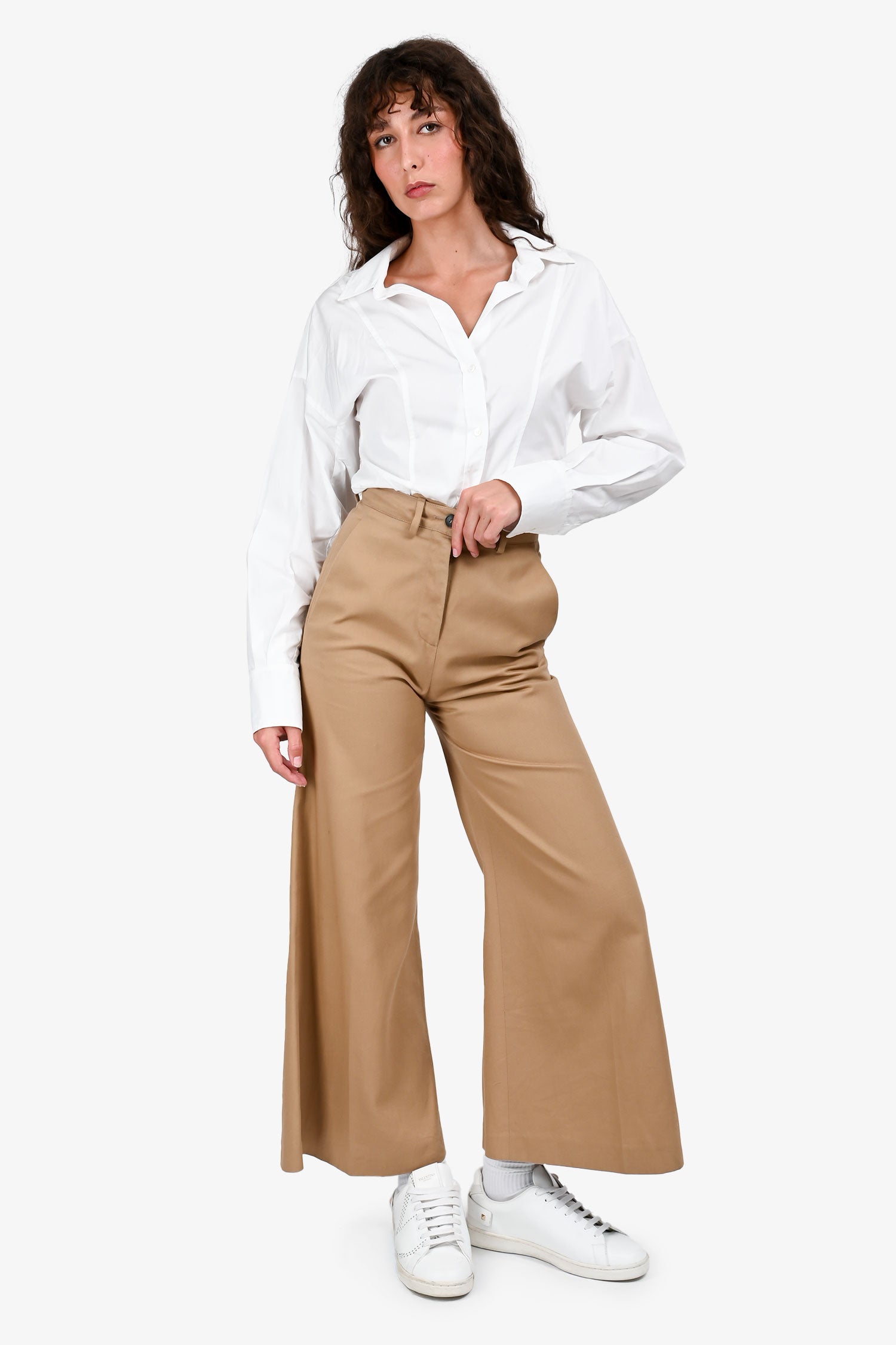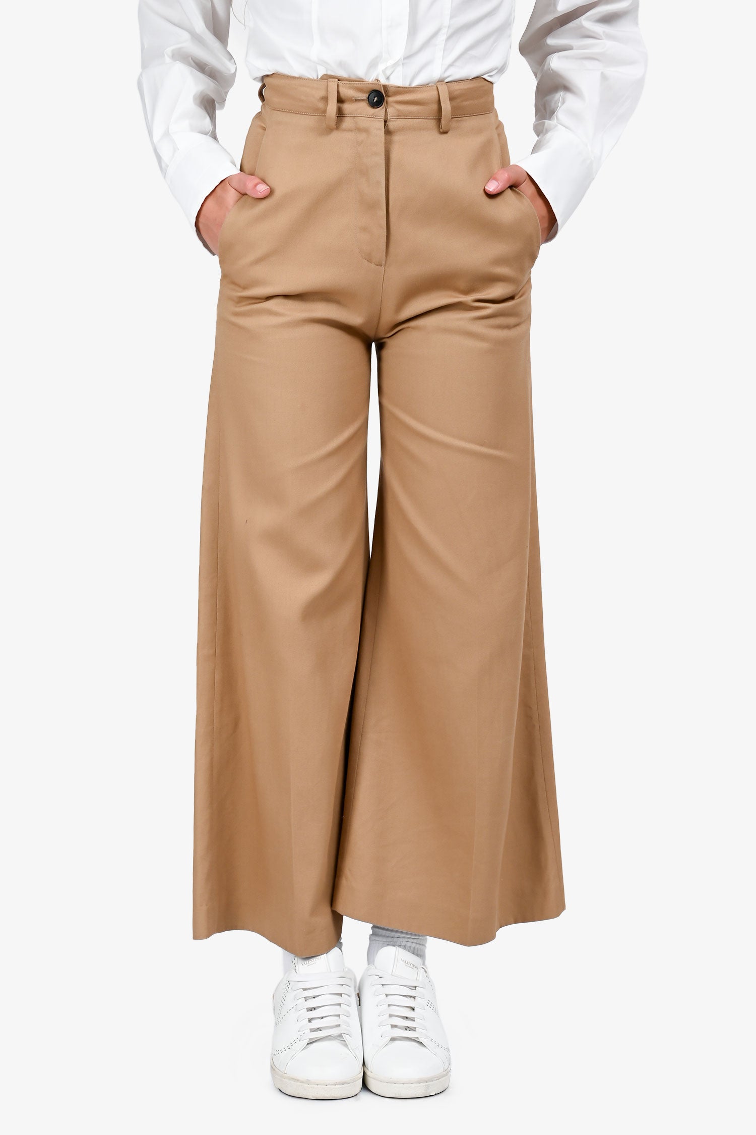 Refresh availabilityValentino Beige Wide Legged Pants. Front zip and hook closure. Waist belt loops. Two side pockets. Tonal stitching.