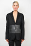 Valentino Black Double Faced Wool Blazer w/ Leather Detail Mens Size 38