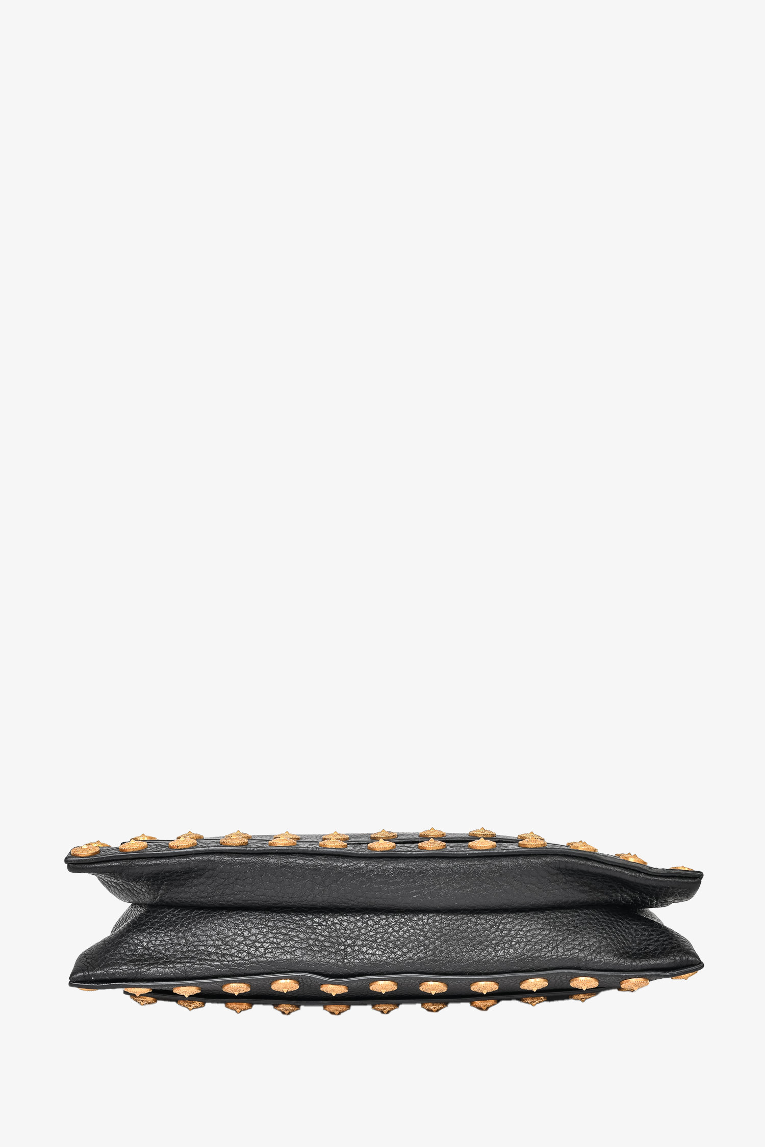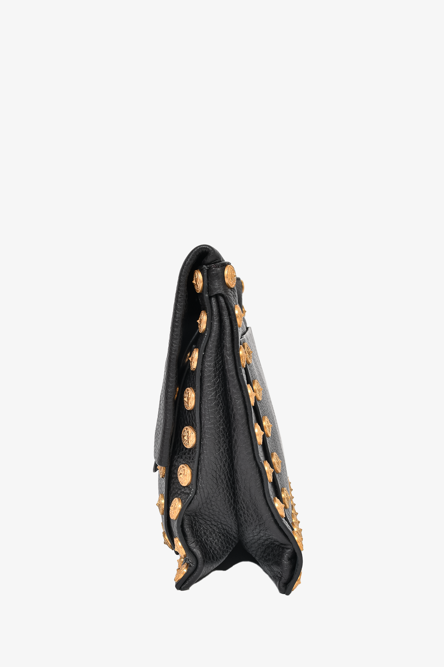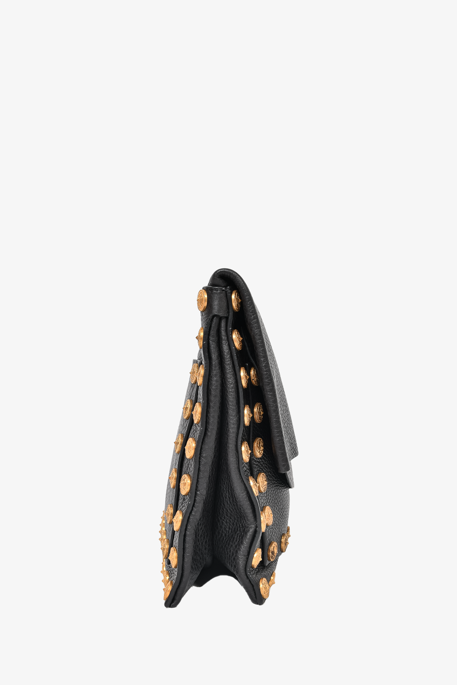 Valentino Black Grained Leather Gold Hardware Embellished Flap Clutch