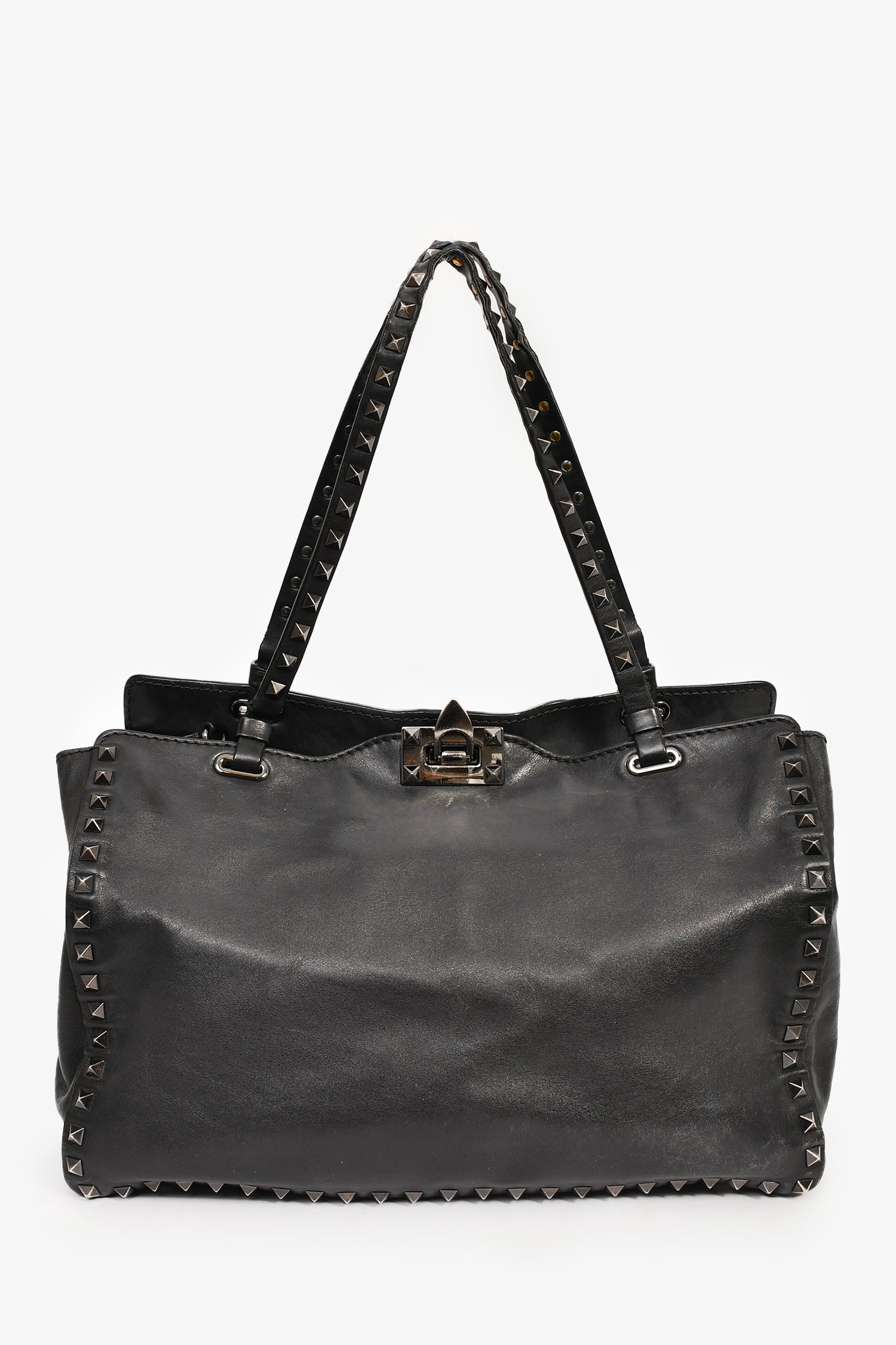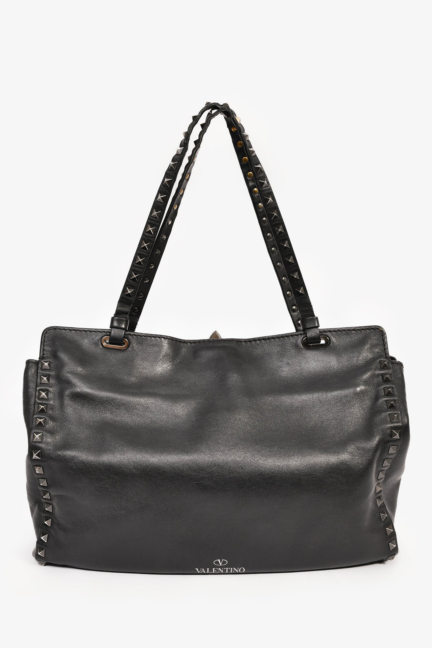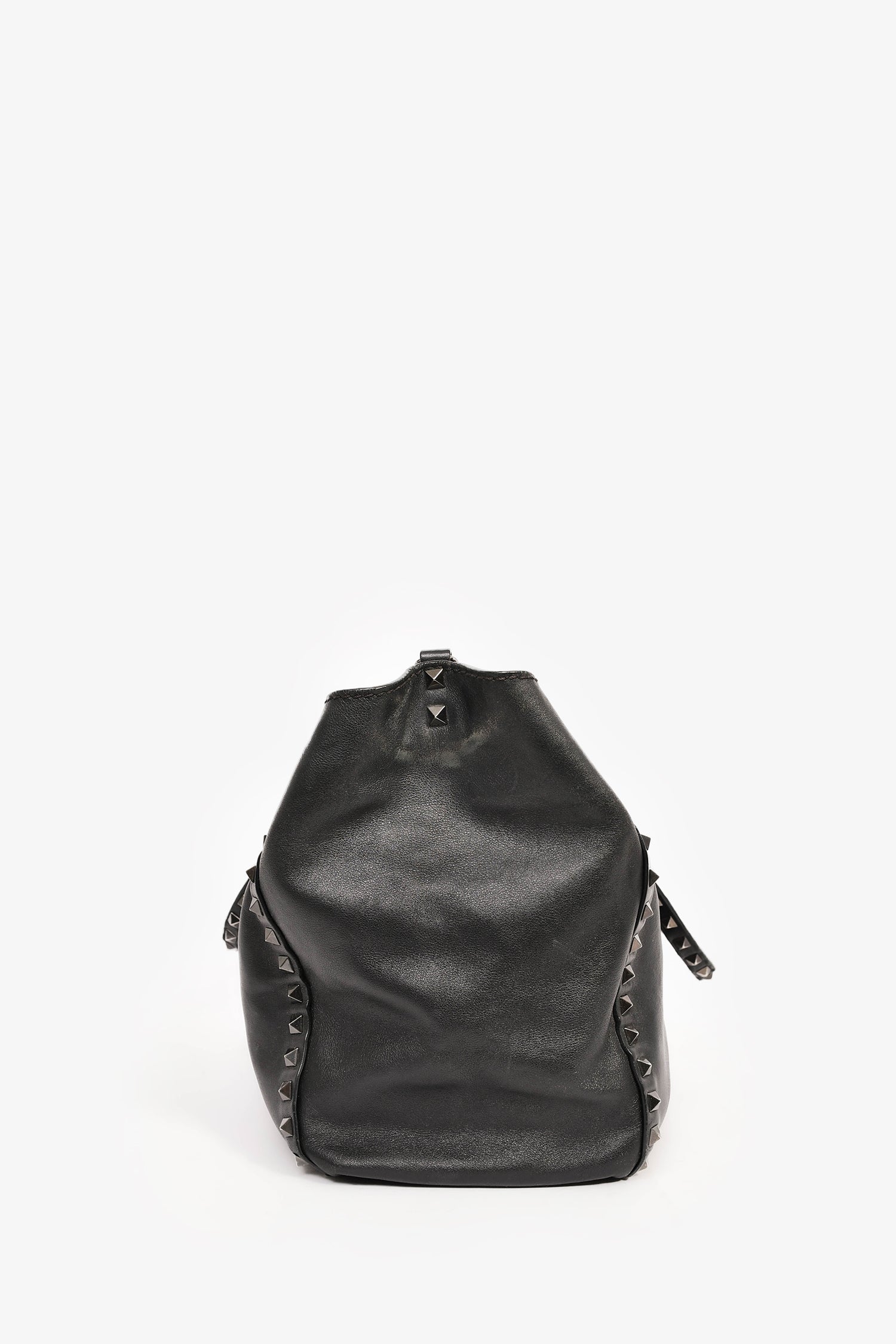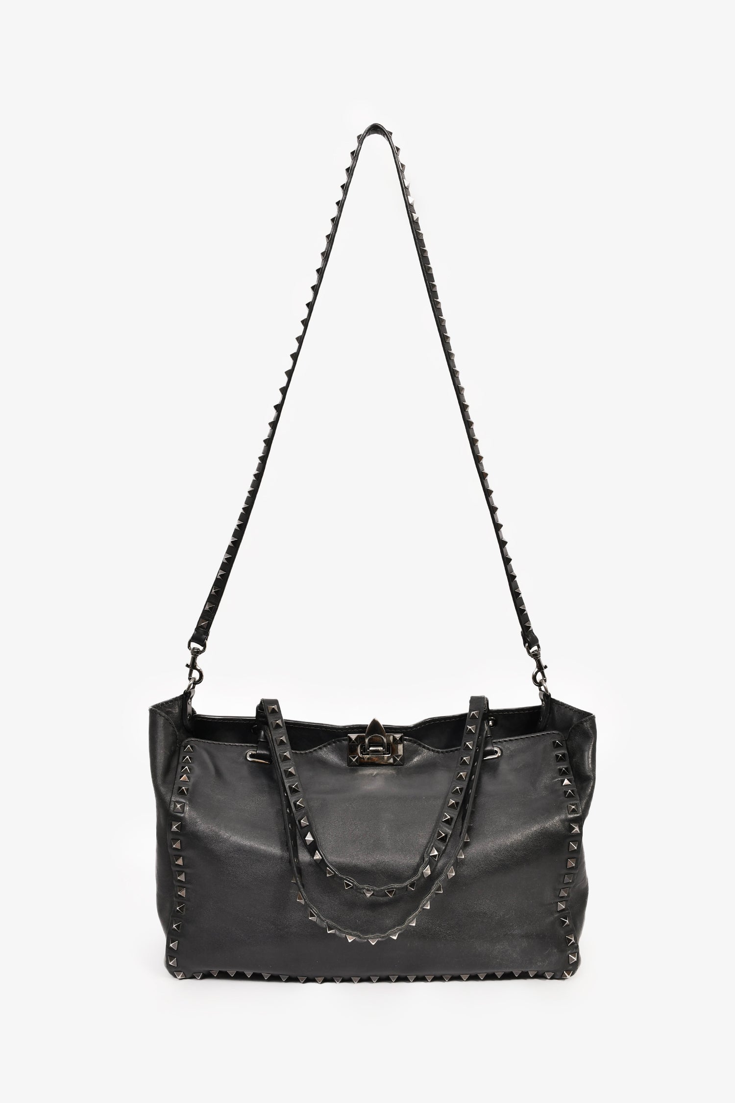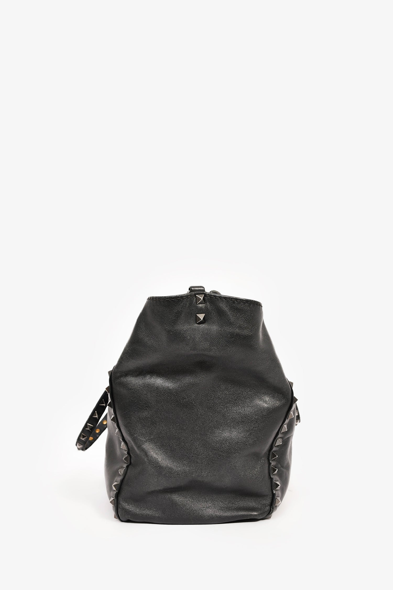 Valentino Black Leather Medium Rockstud 'Trapeze' Tote with Strap