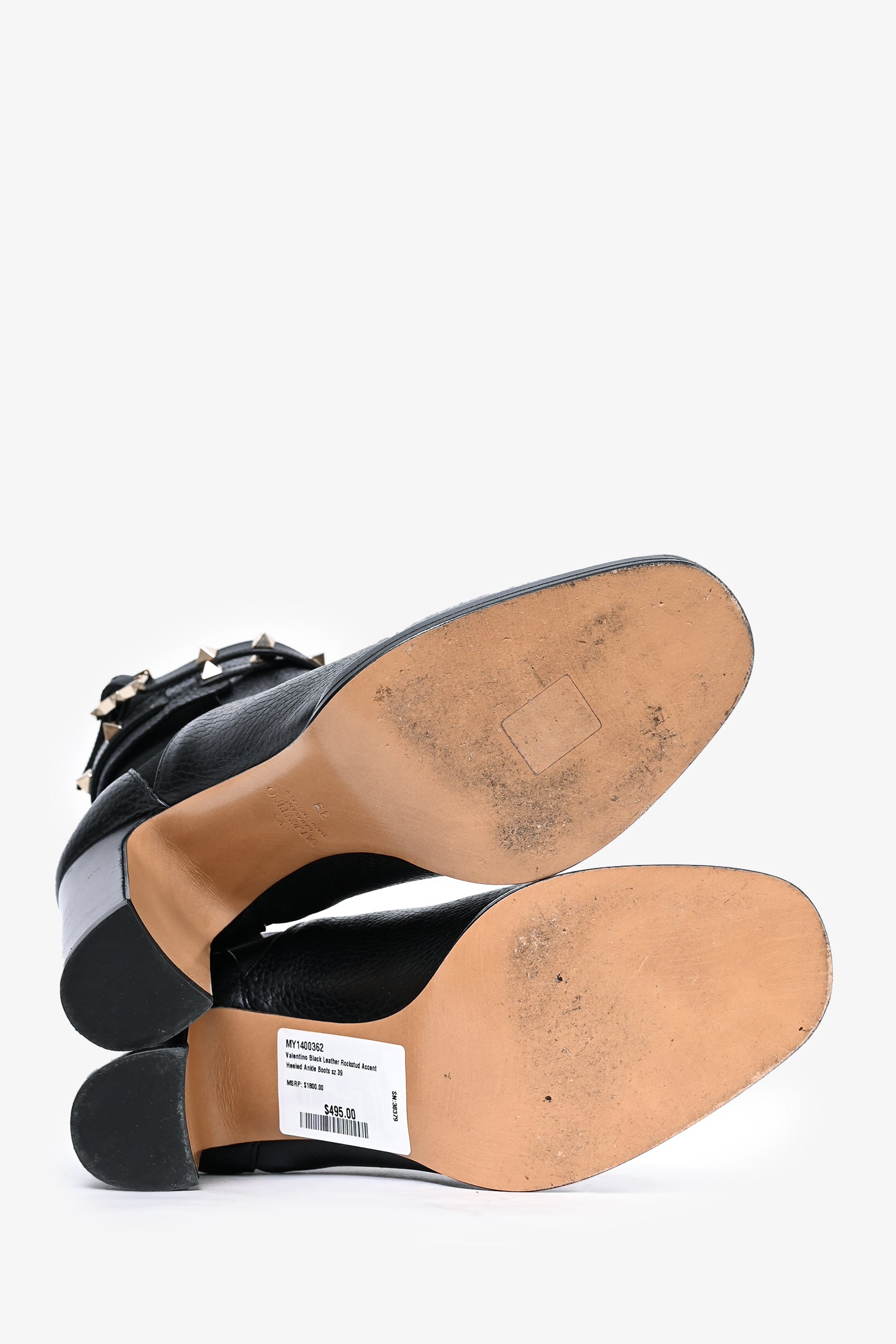 Valentino Black Leather Rockstud Accent Heeled Ankle Boots Size 39