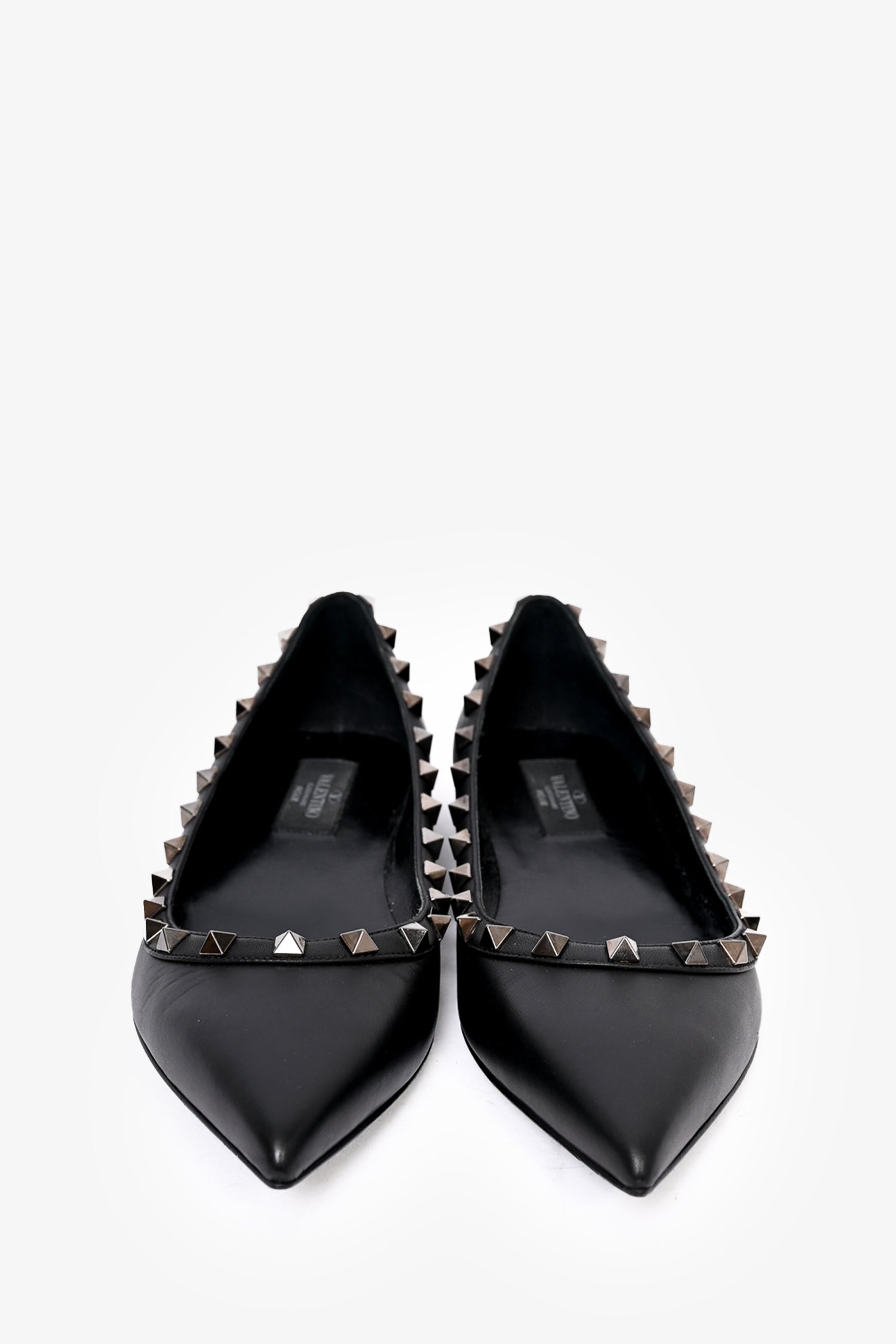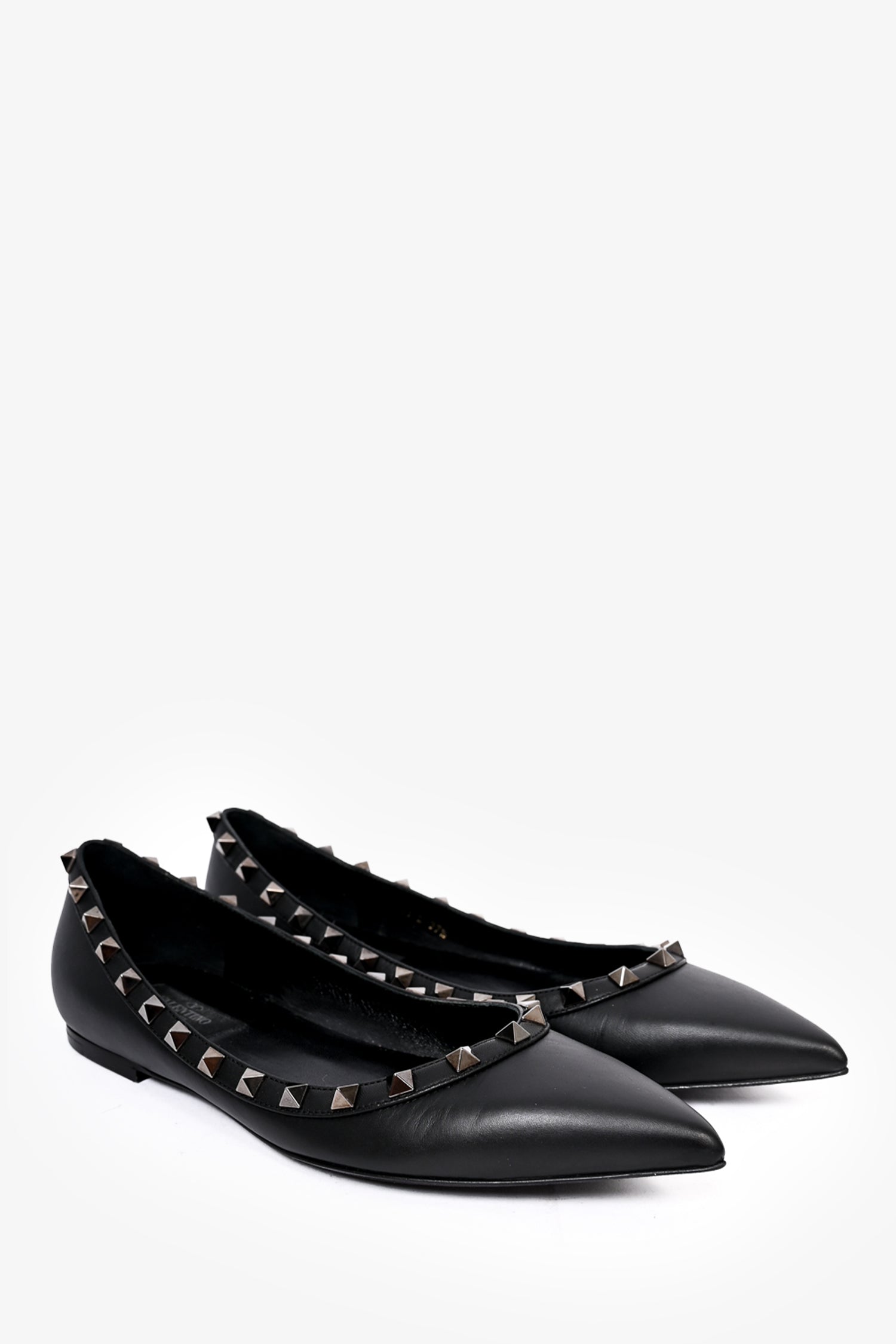 Refresh availabilityValentino Black Leather 'RockStud' Pointed Flats. Slip-on.