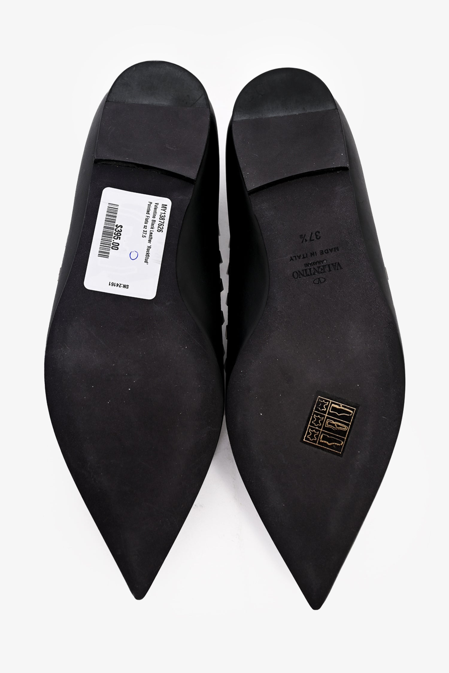 Valentino Black Leather 'RockStud' Pointed Flats Size 37.5