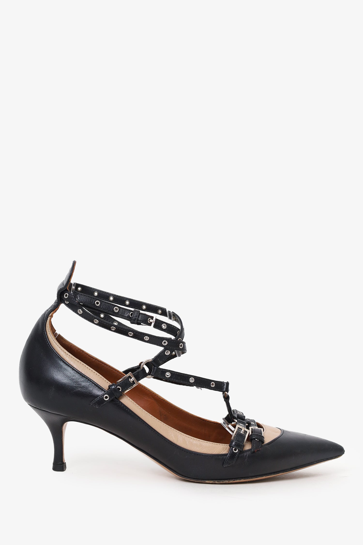 Valentino Black/Nude Leather Strappy Pointed Heels Size 37