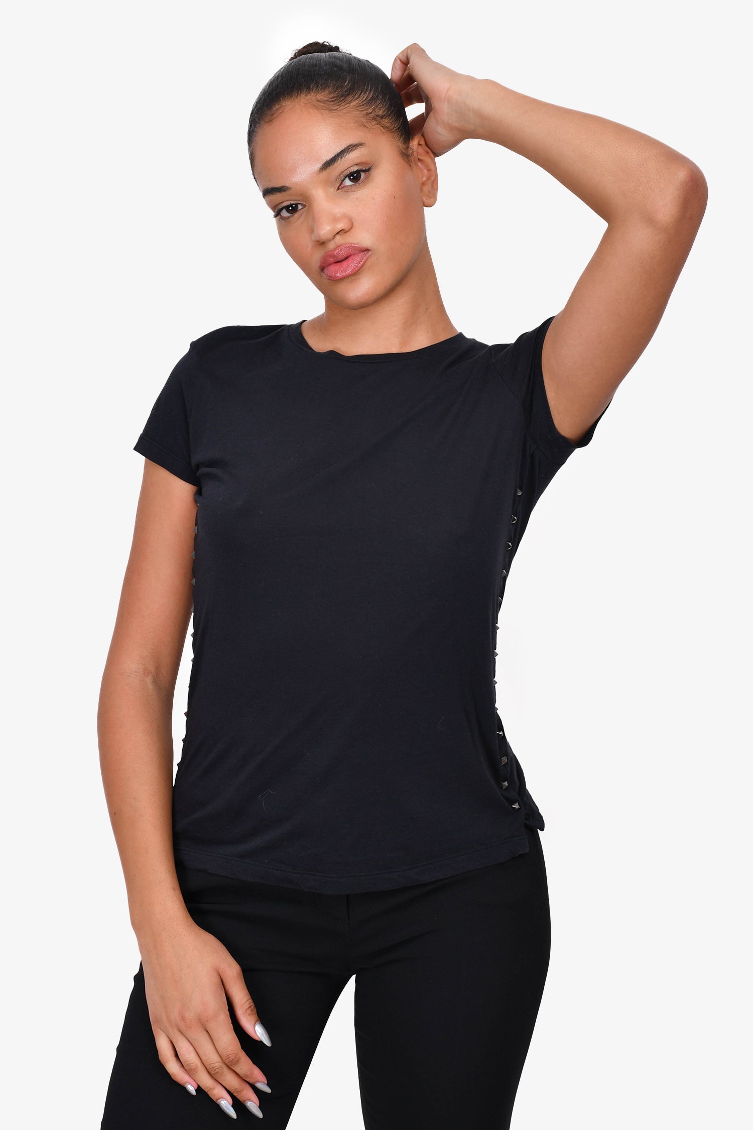 Refresh availabilityValentino Black Stud Embellished T-Shirt. Round neck. Pull-on.