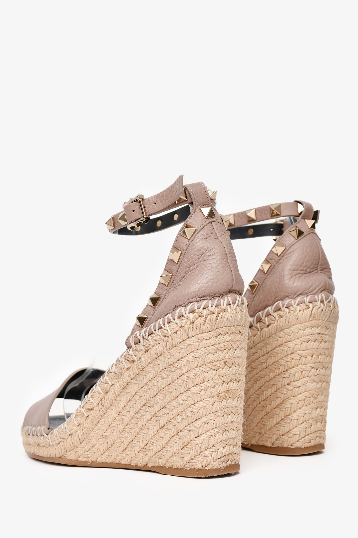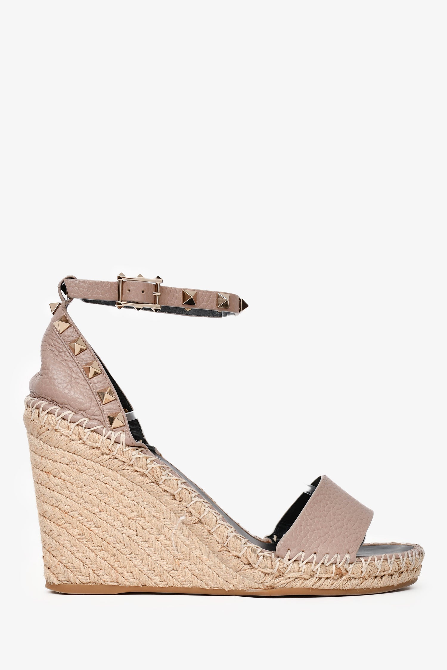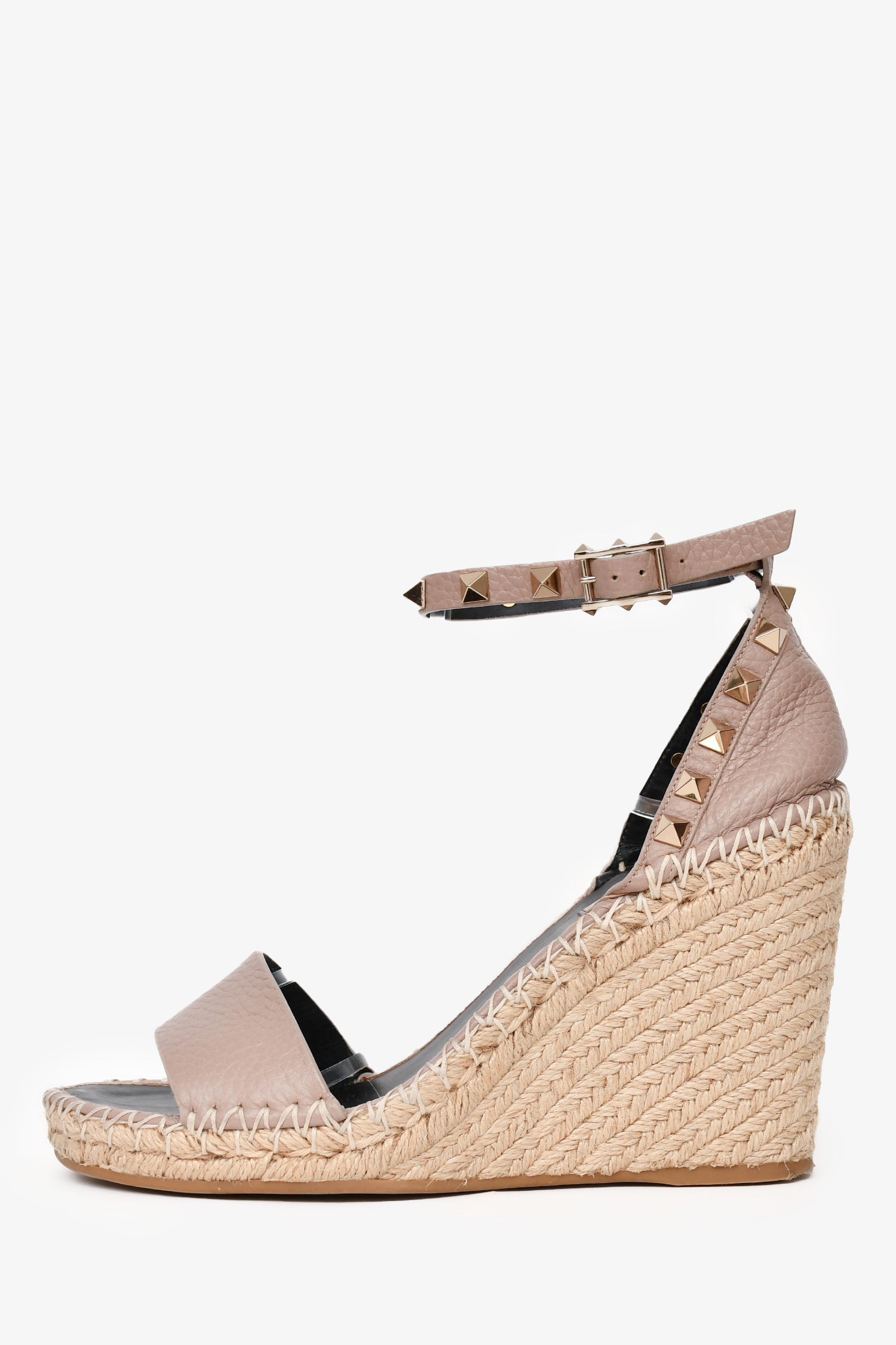 Refresh availabilityValentino Blush Leather Rockstud Sandal Wedges. Open toe. Ankle adjustable strap with buckle closure. Silver-tone studs detailing. Contrast stitching.