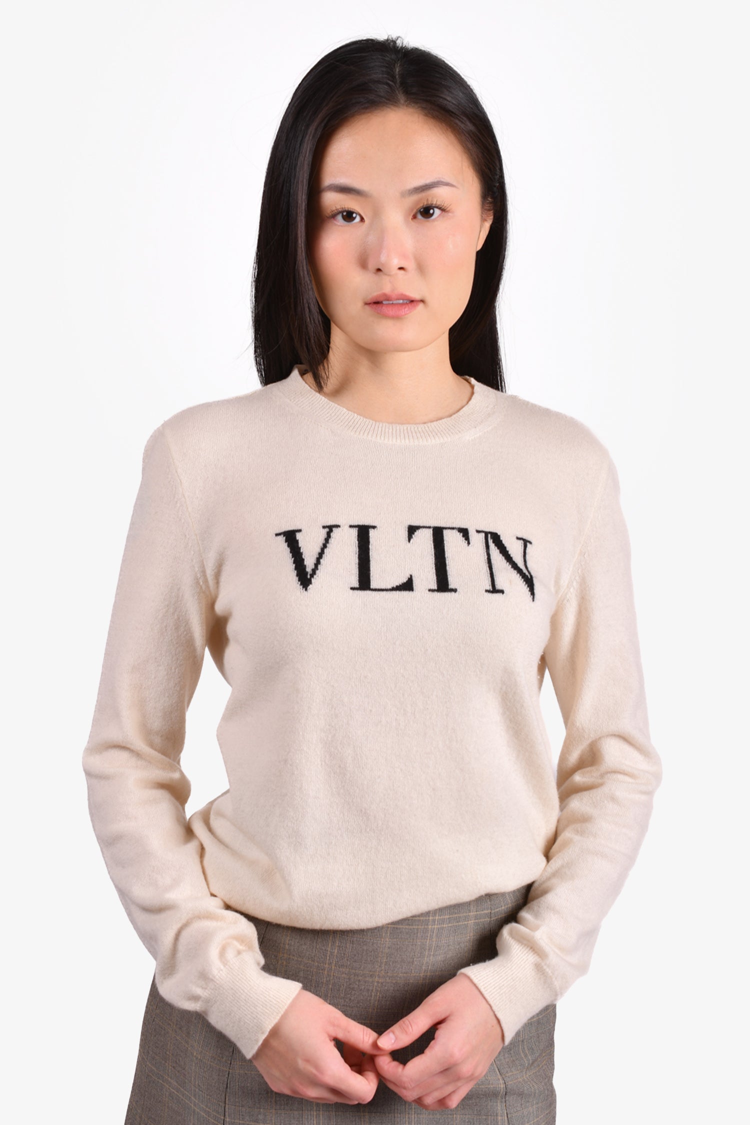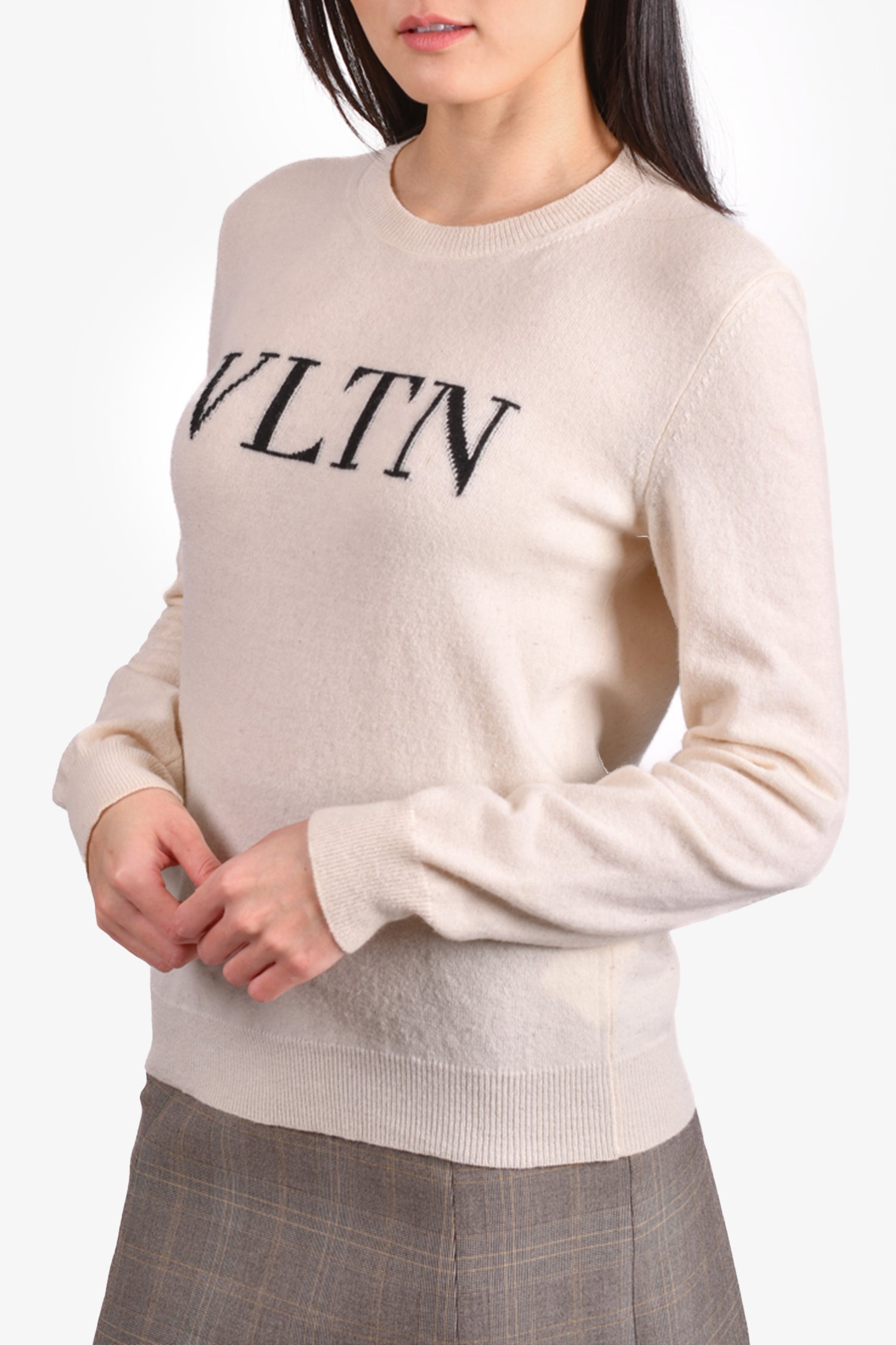 Refresh availabilityValentino Cream Wool Logo Crewneck Sweater. Round neck. Ribbed neck, cuffs and hem. Tonal stitching.