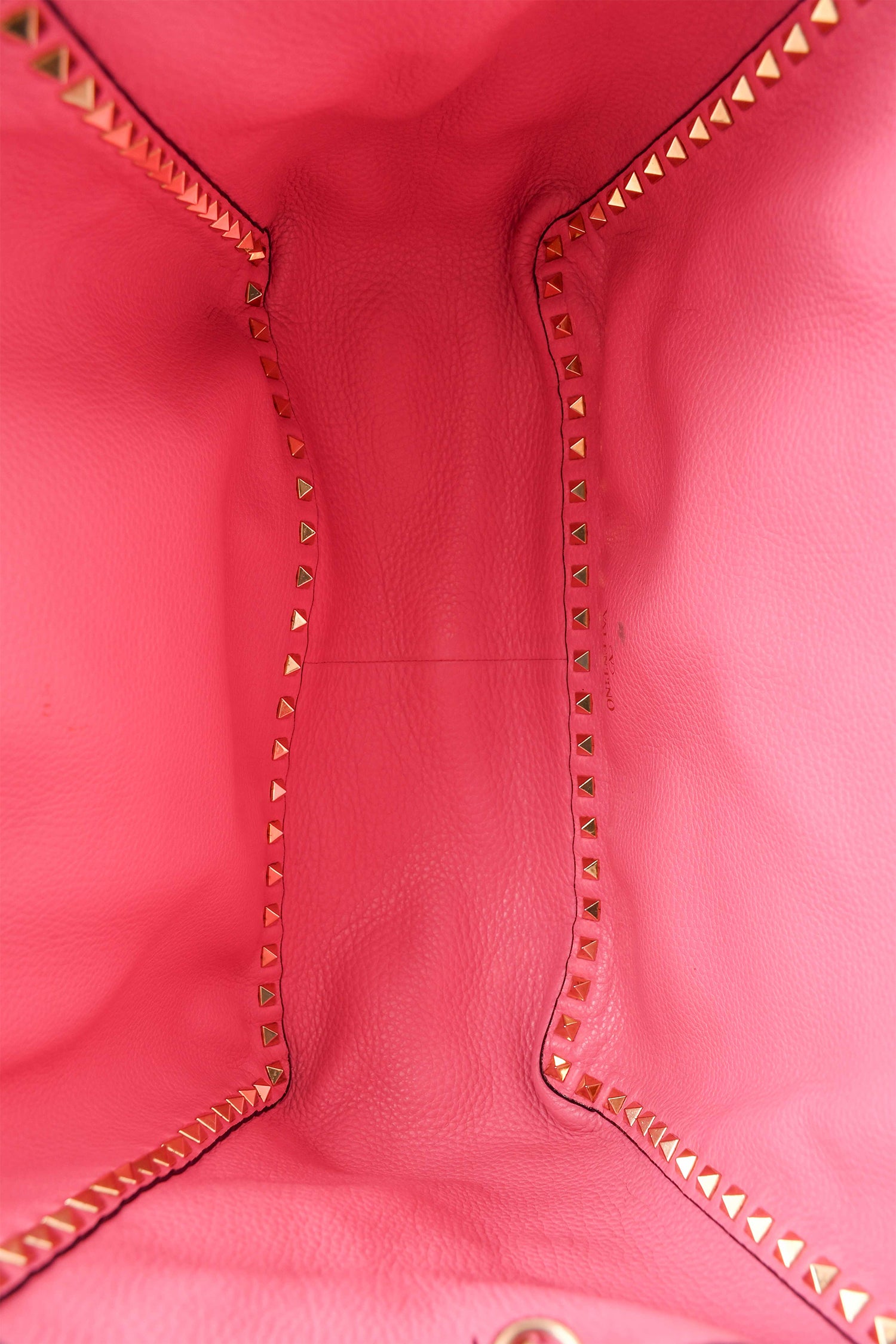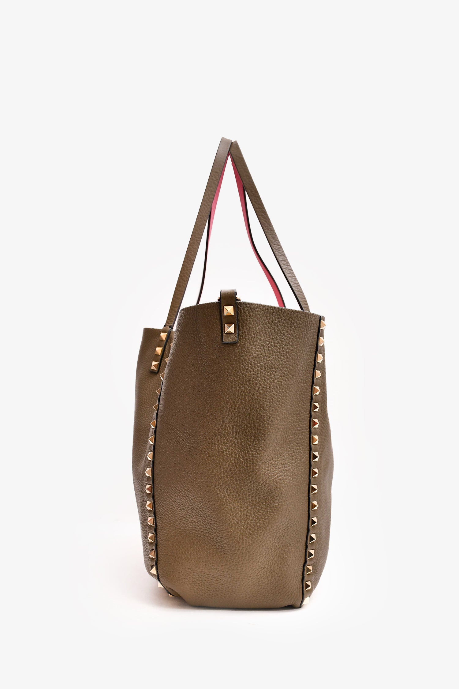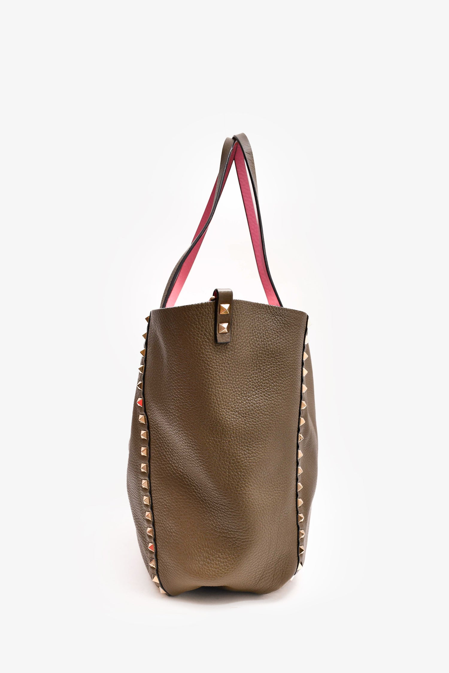 Refresh availabilityValentino Dark Green/Pink Reversible Rockstud Tote with Strap. Dual handles. Open to and interior. Gold-tone hardware.