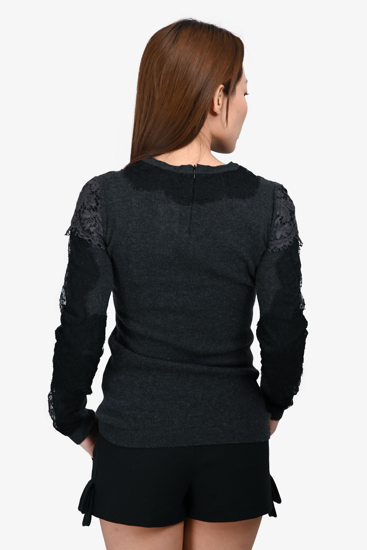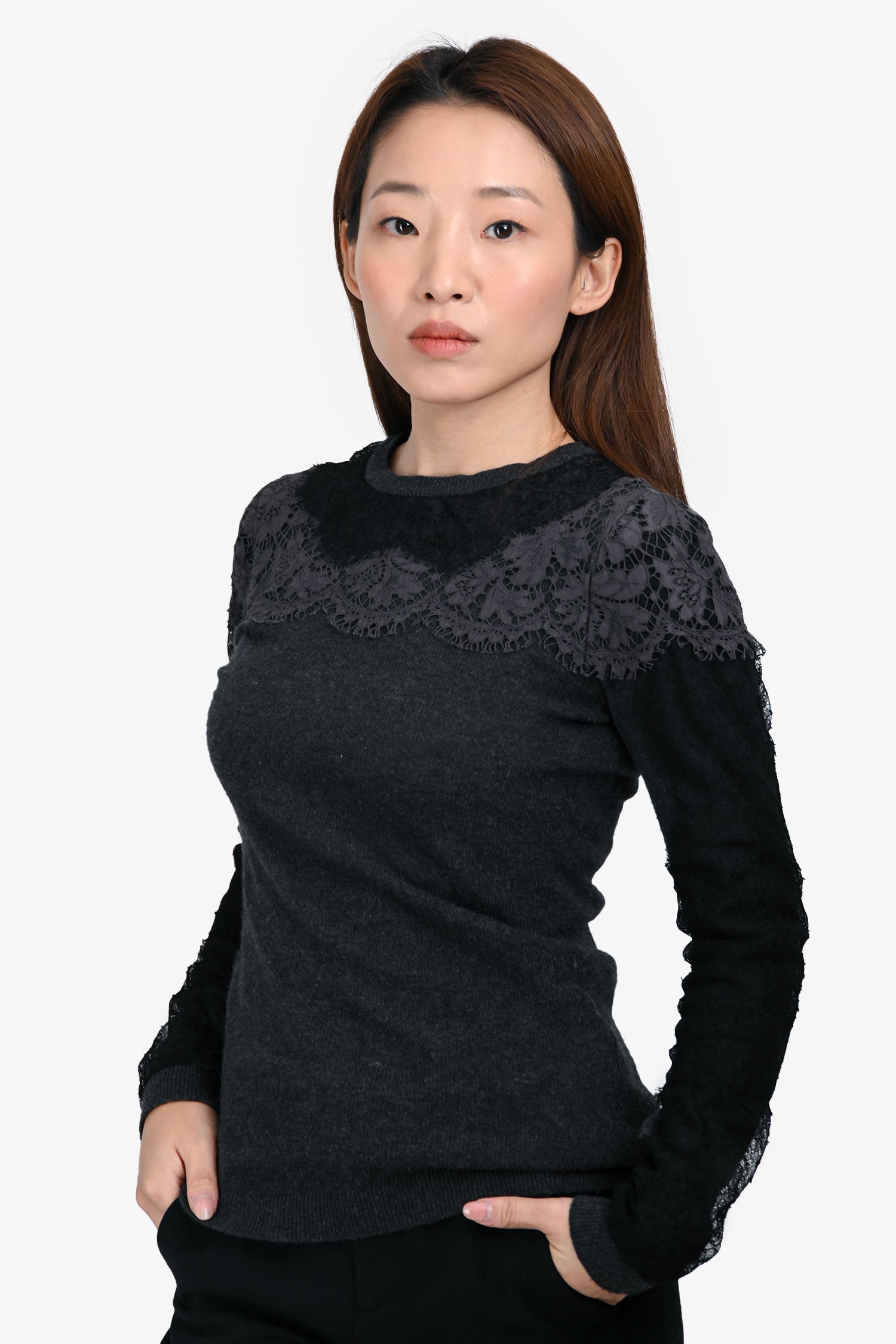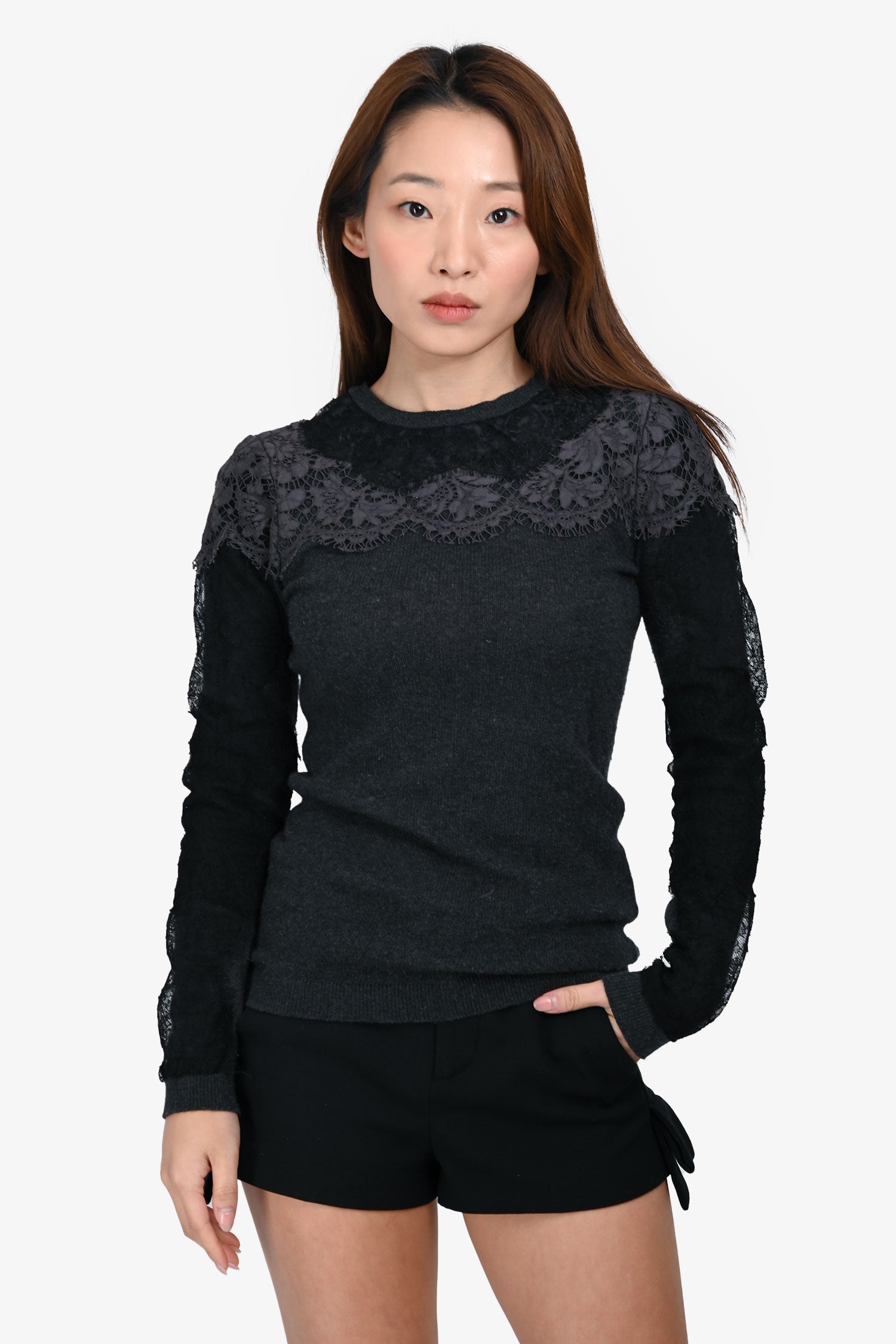 Valentino Dark Grey Cashmere/Wool Lace Detailed Sweater Size XS