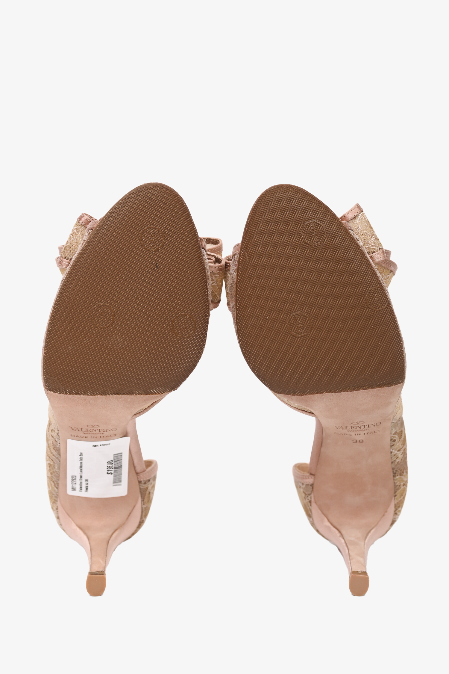 Refresh availabilityValentino Green Lace/Mauve Satin Bow Heels. Slip-on. Peep-toe. Tonal stitching. Topy soles.