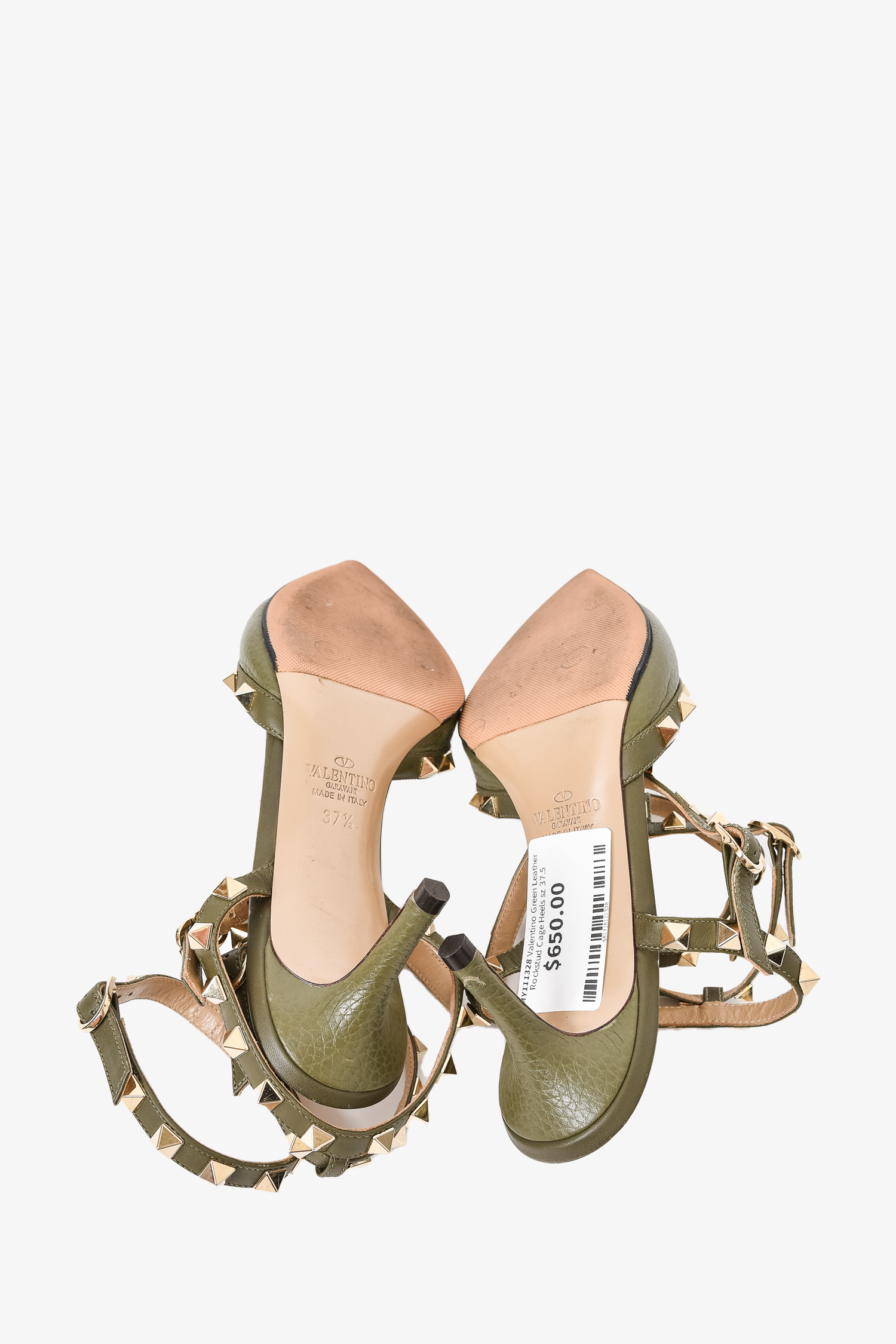 Valentino Green Leather Rockstud Cage Heels Size 37.5