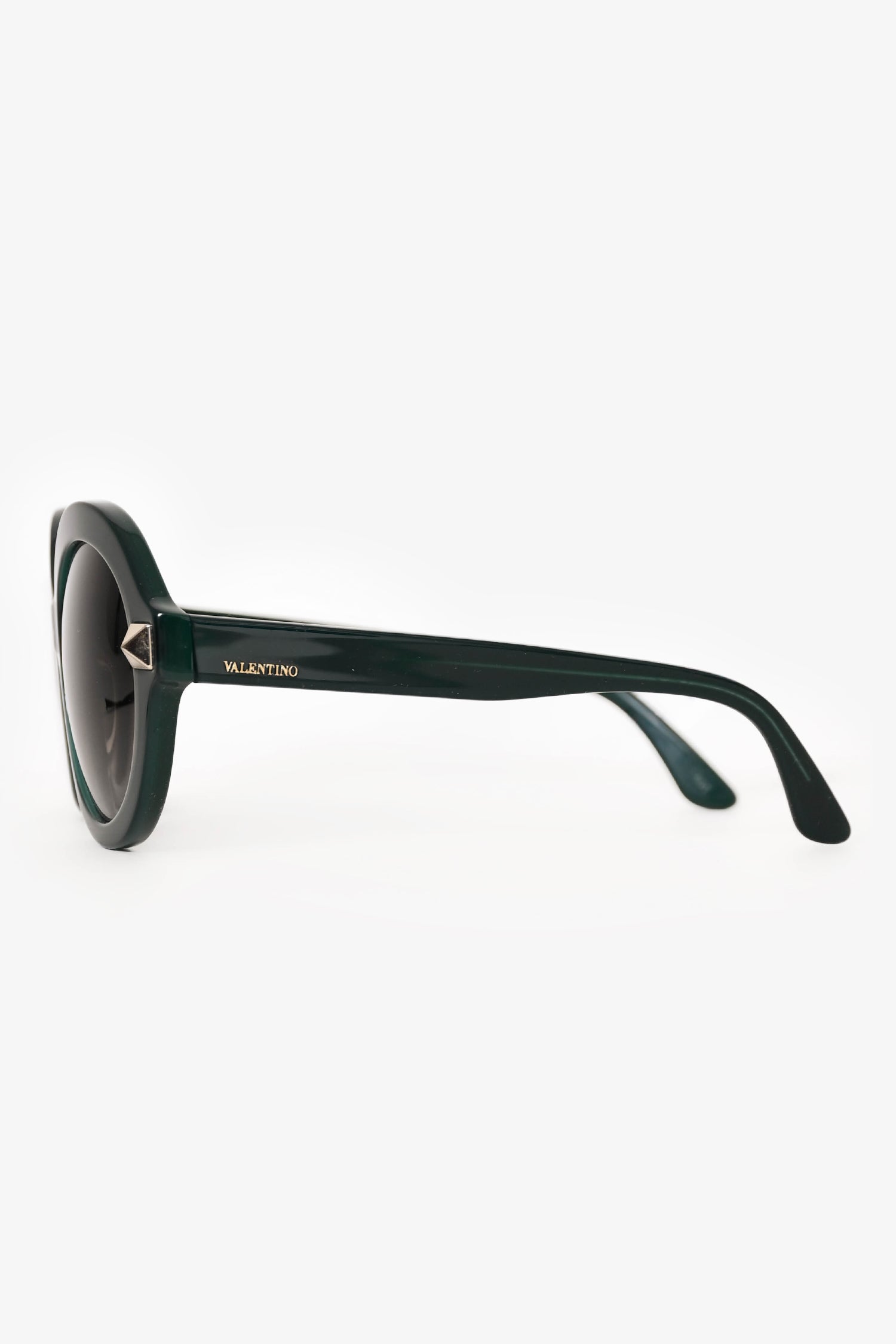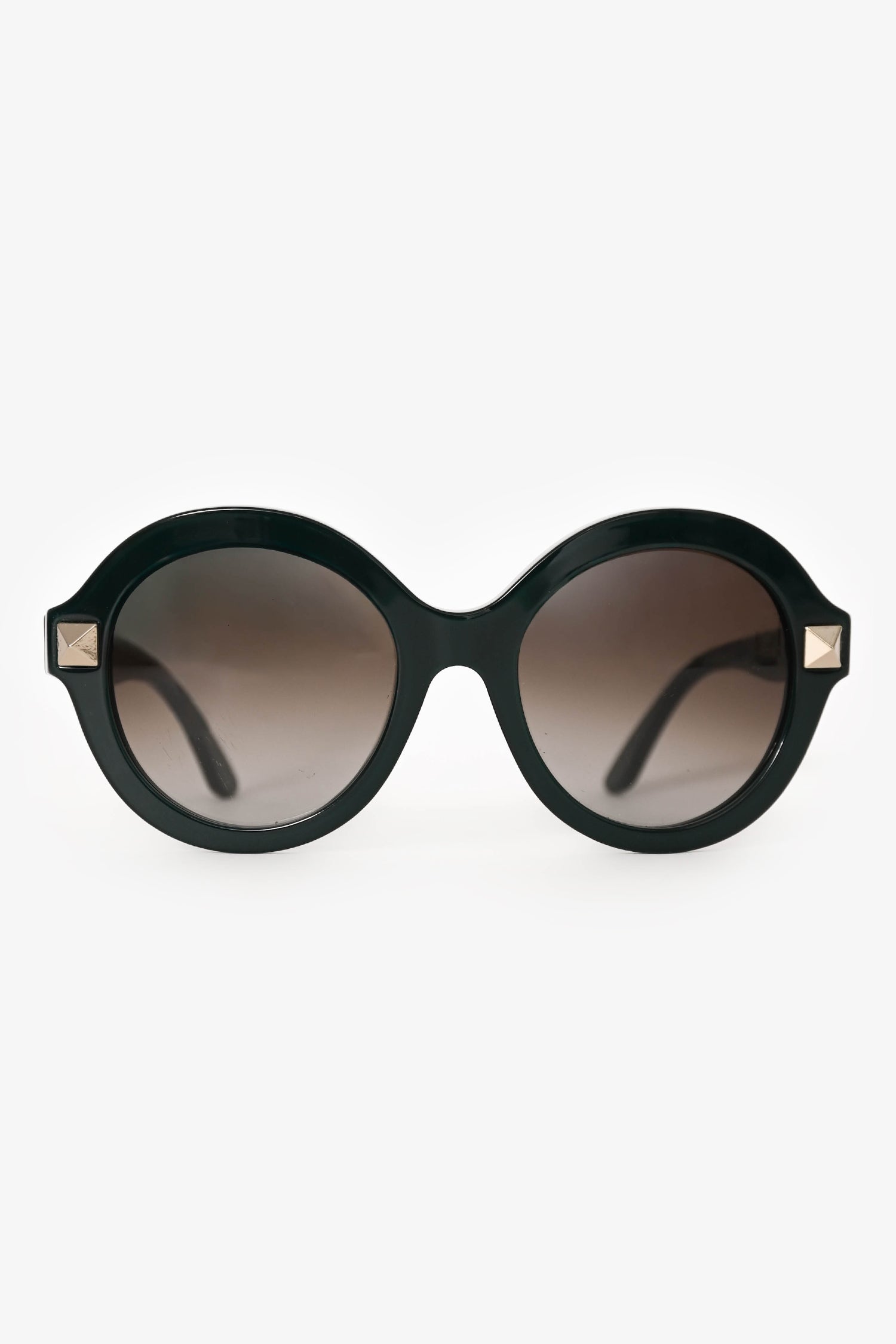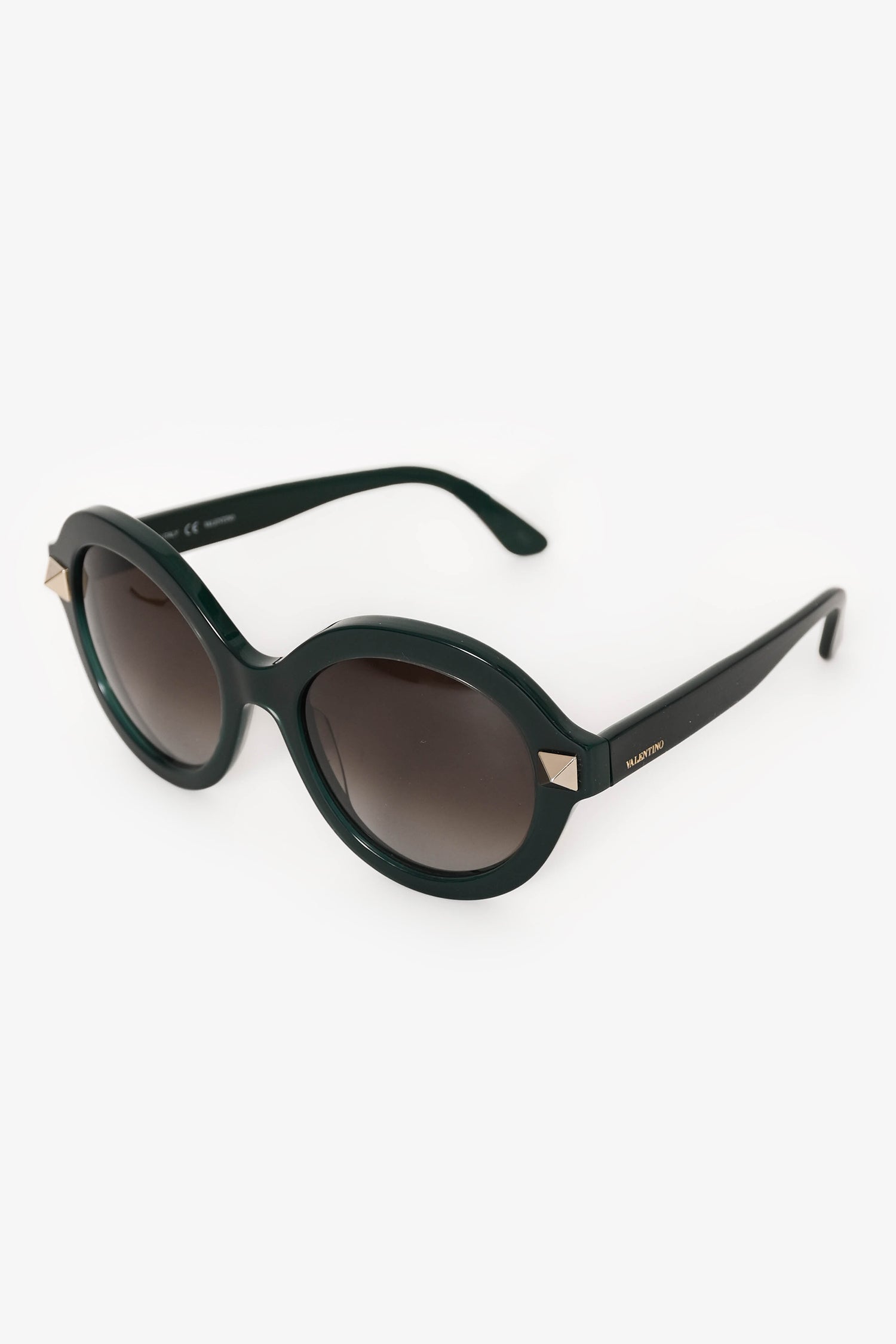 Refresh availabilityValentino Green Oversized Round Sunglasses. Built-in nose pads. Gradient lens. Gold-tone hardware.