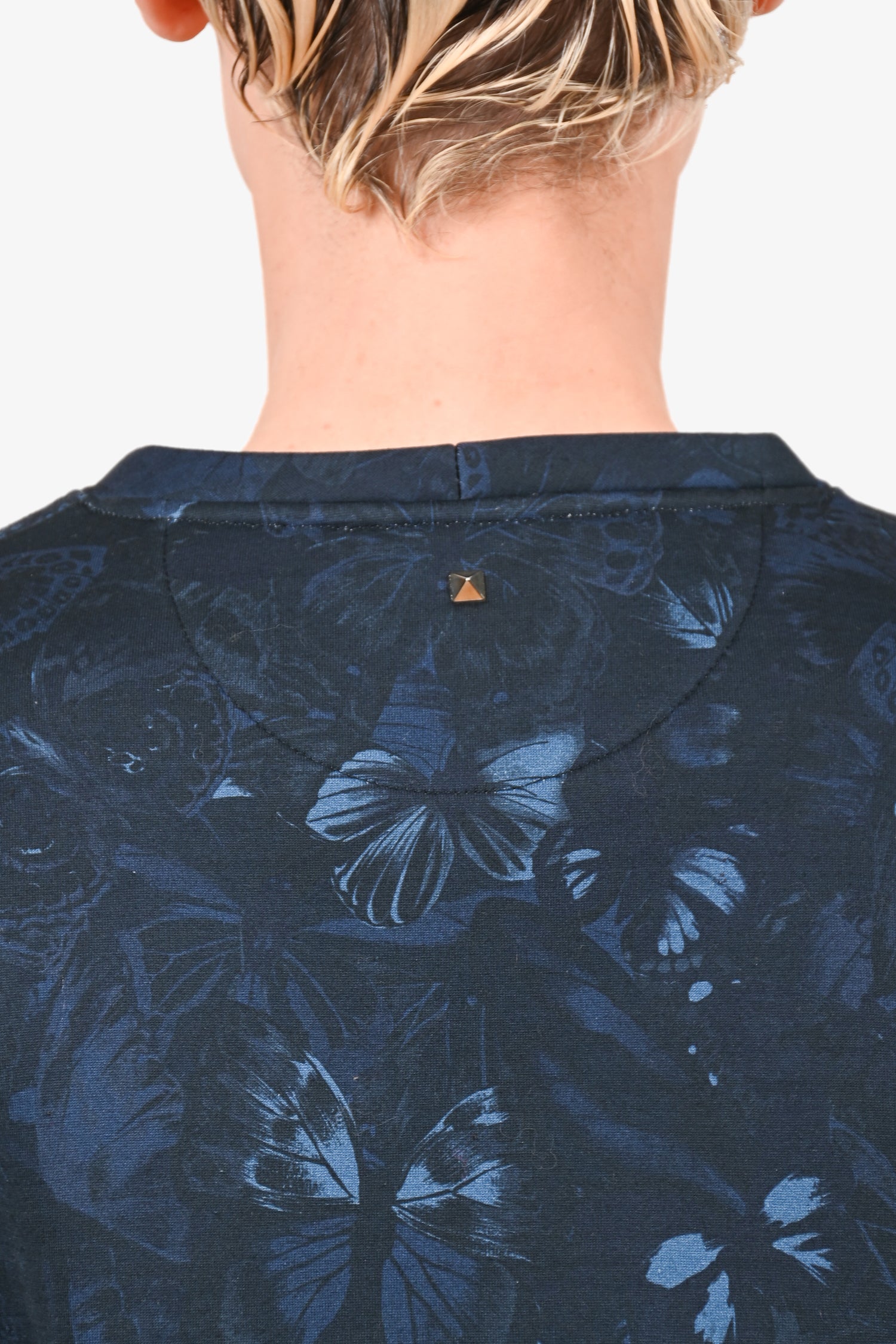 Valentino Navy Cotton Butterfly Graphic Crewneck Sweater Size M