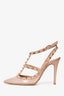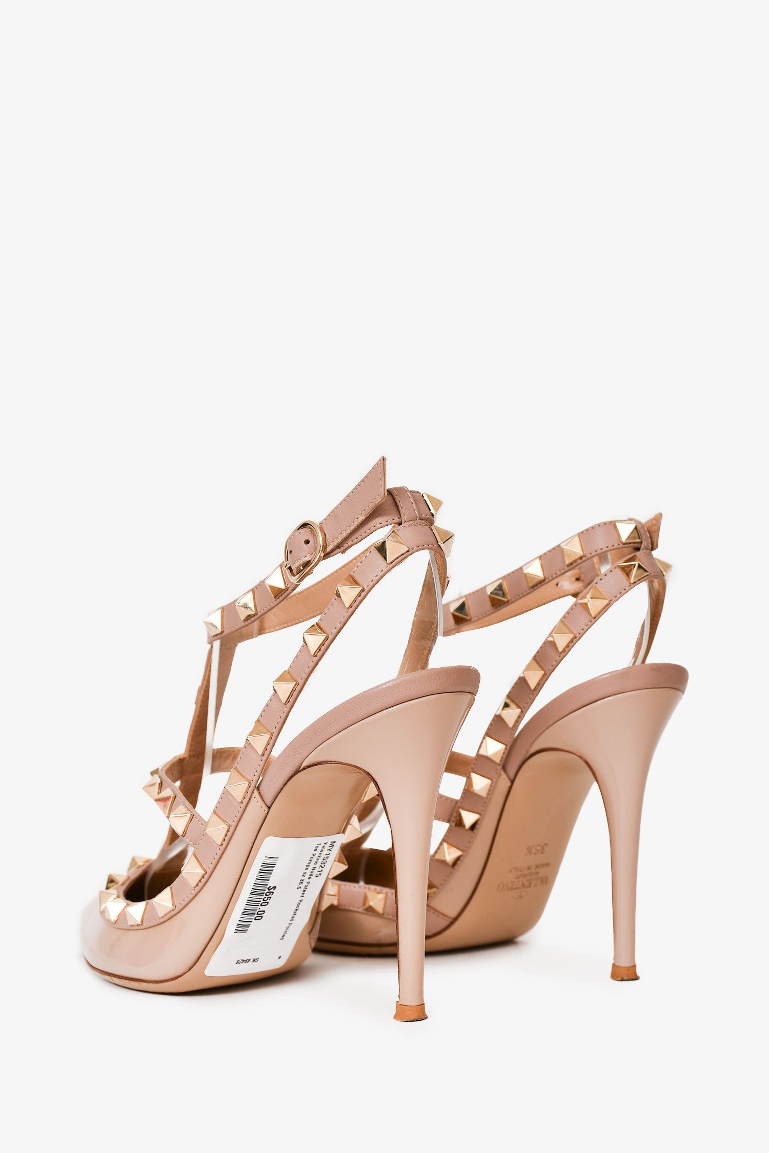 Refresh availabilityValentino Nude Patent Rockstud Pointed Toe Pumps. Slip-on. Ankle strap with buckle closure. Gold-toned hardware. Tonal stitching.