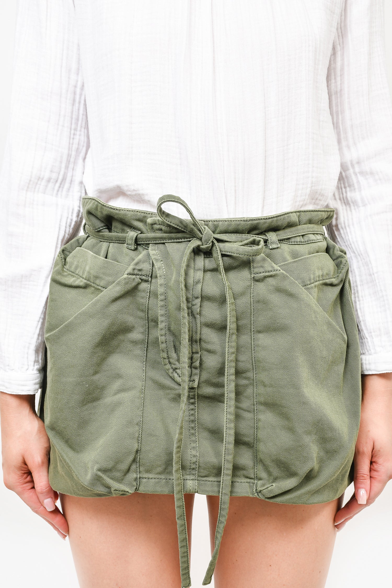 Refresh availabilityValentino Olive Green Cargo Skirt. Zip fly with button closure. Tie-belt at waist. Slip pockets at front and rear. Tonal stitching.