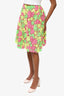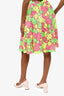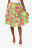 Valentino Pink/Green/Yellow Silk Flower Lace Midi Skirt Size 2