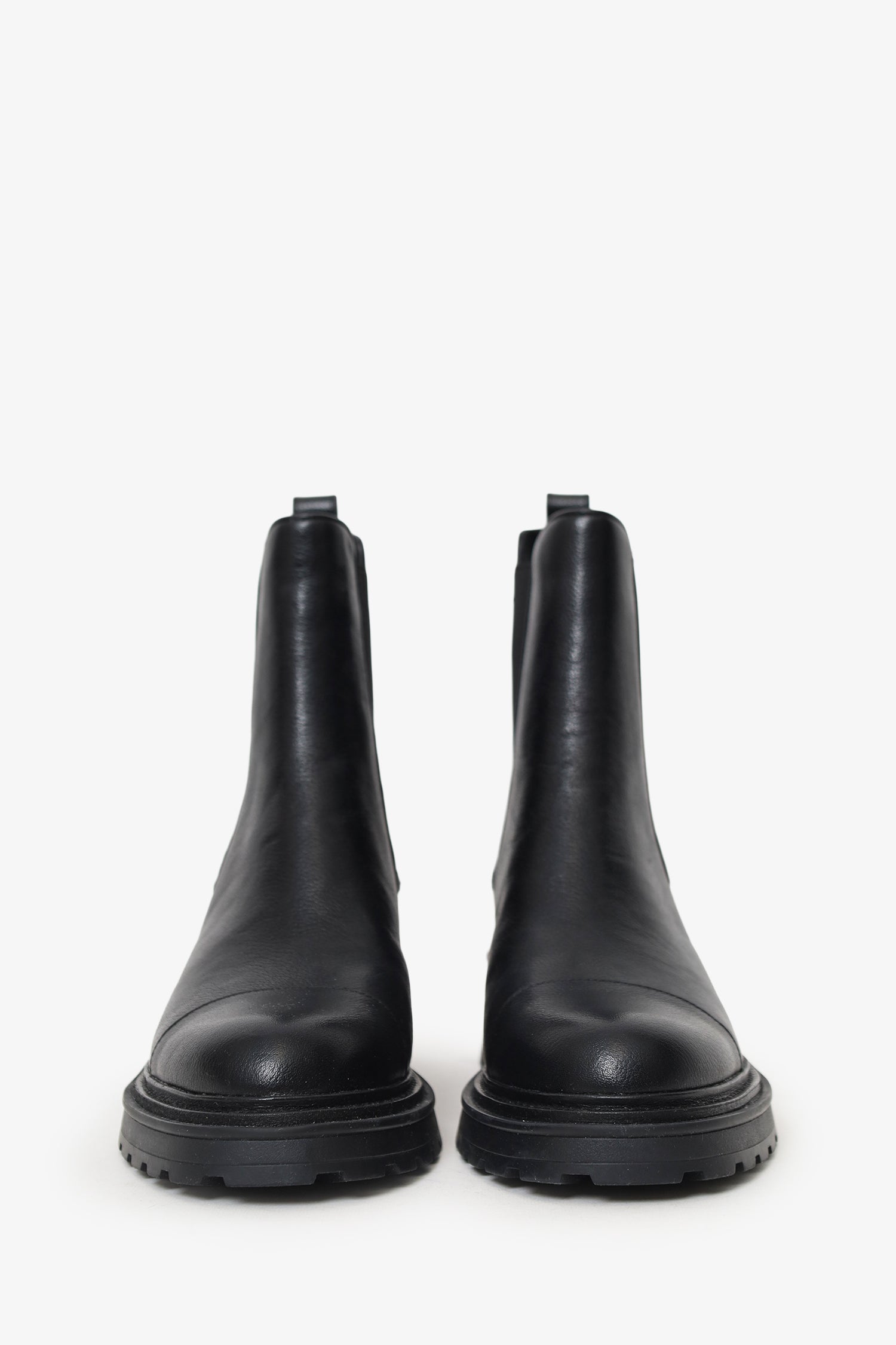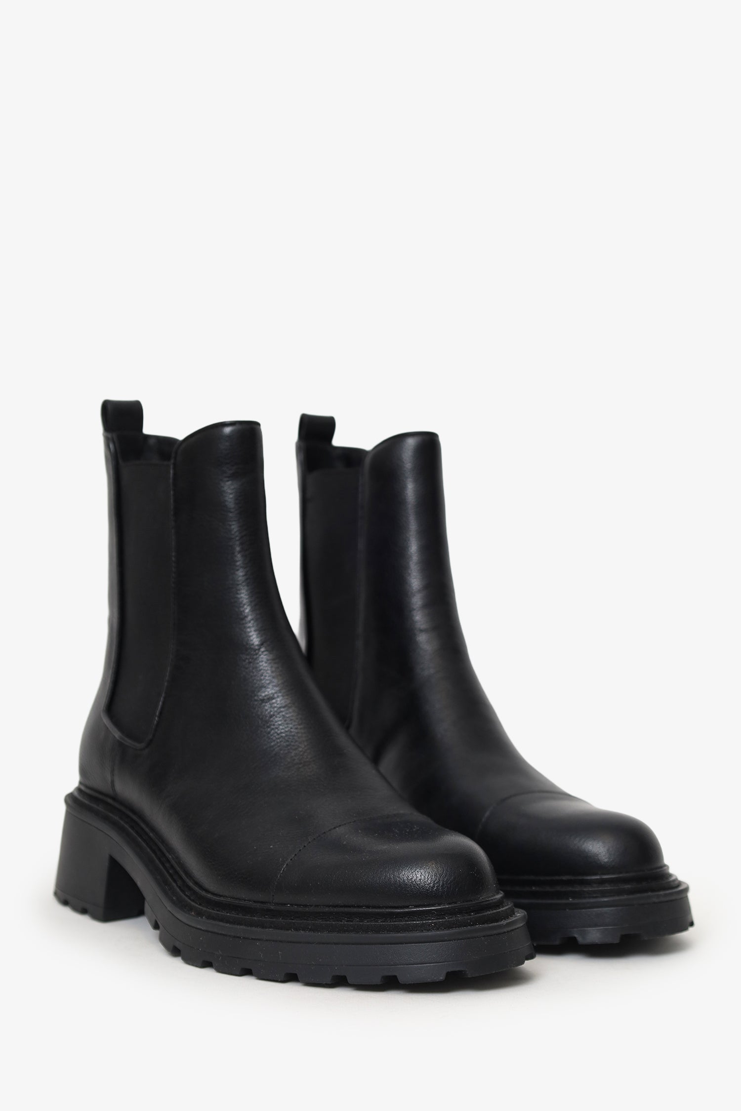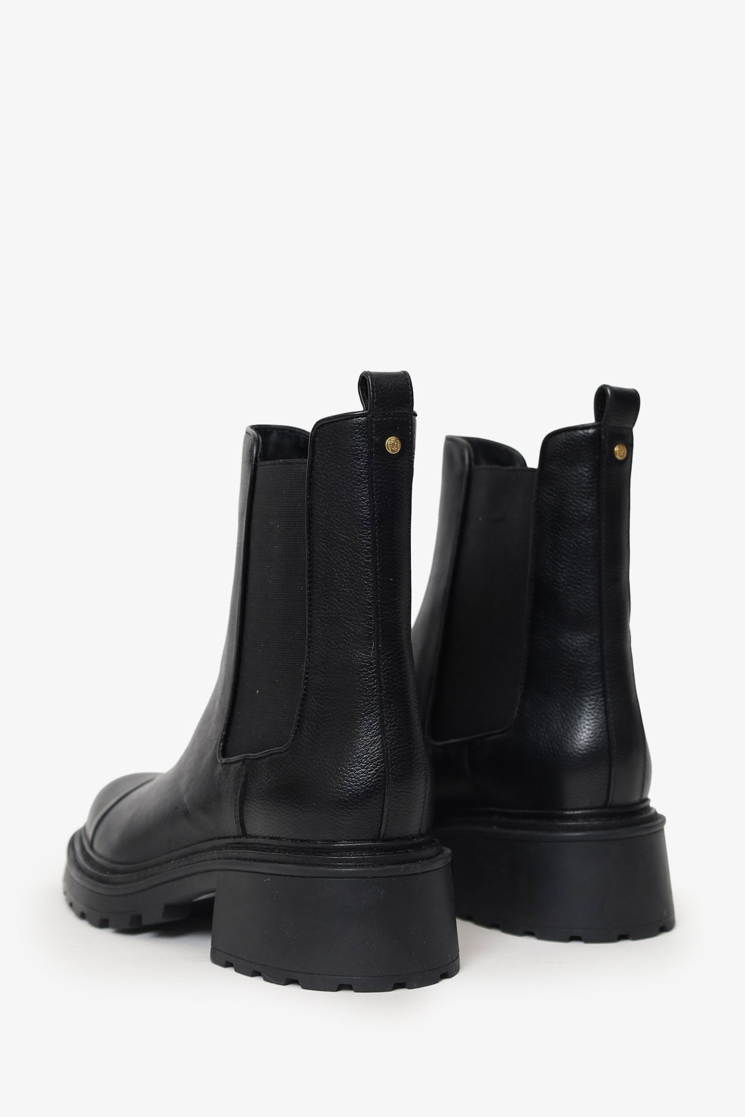 Refresh availabilityVeronica Beard Black Leather Chunky Boots. Pull-on. Round toe. Rear pull tab. Gold-tone hardware. Tonal stitching.