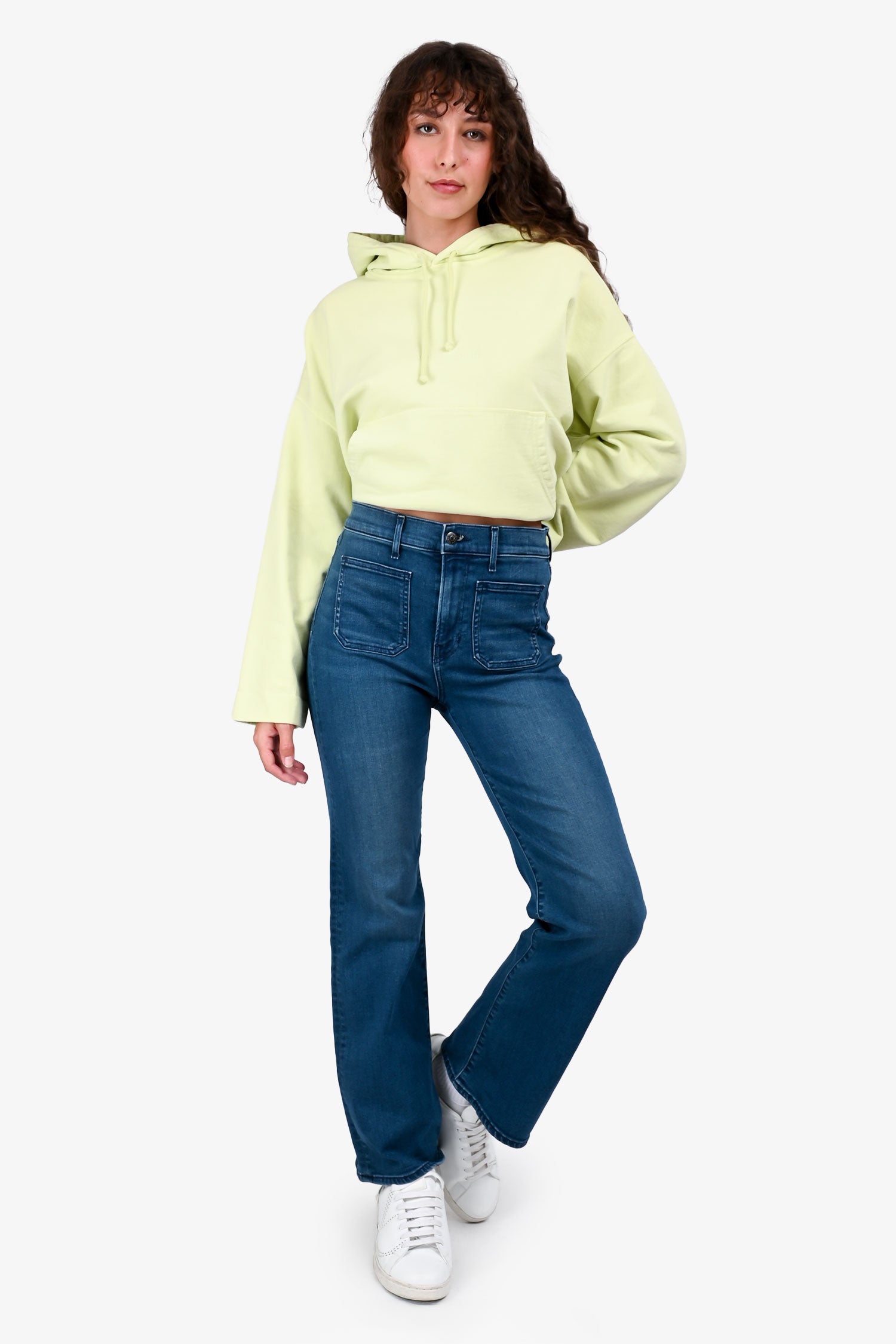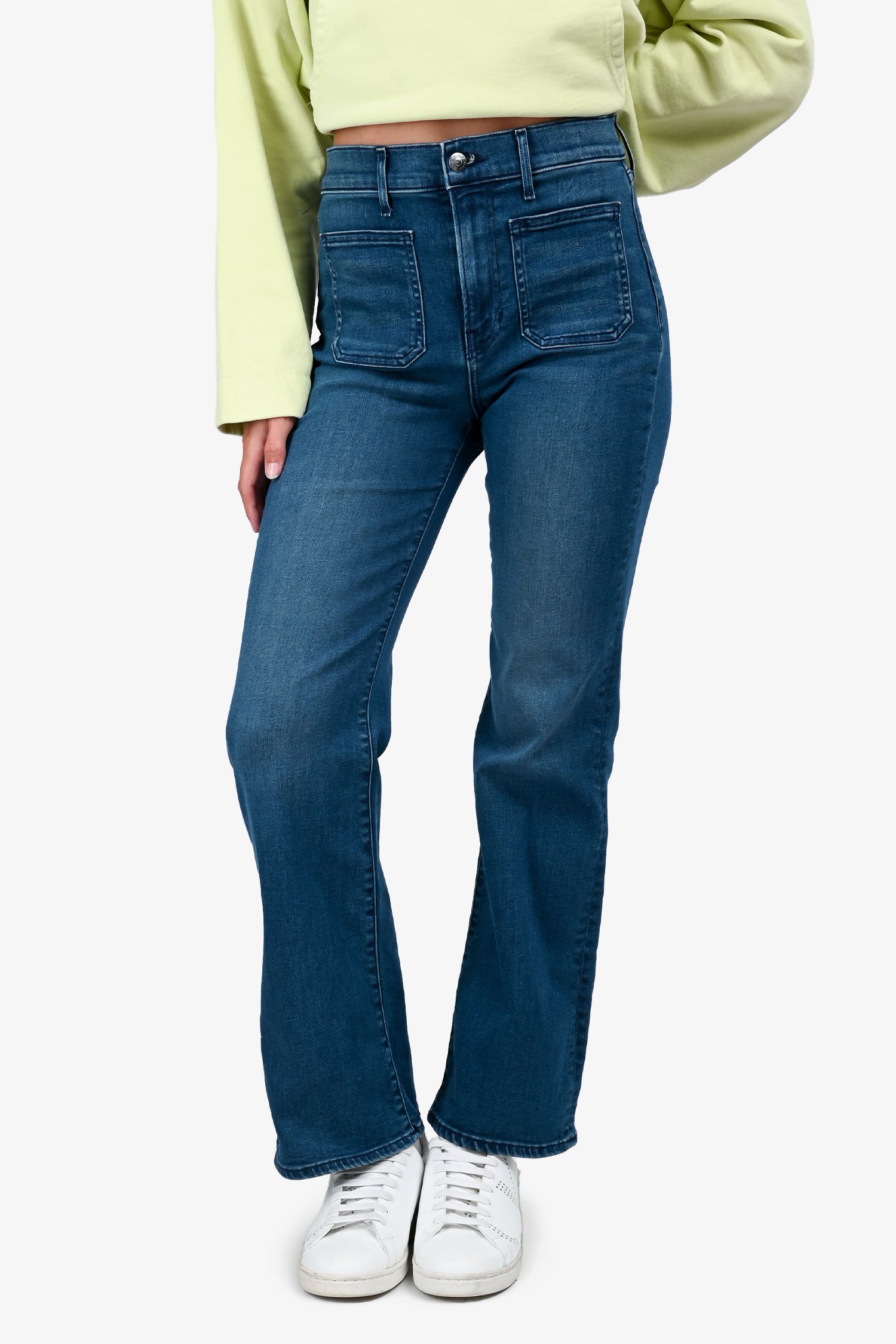 Refresh availabilityVeronica Beard Blue Front Pocket Wide Leg Denim Jeans. Front and back patch pockets. Zip fly with button closure. Belt loops. Tonal stitching.