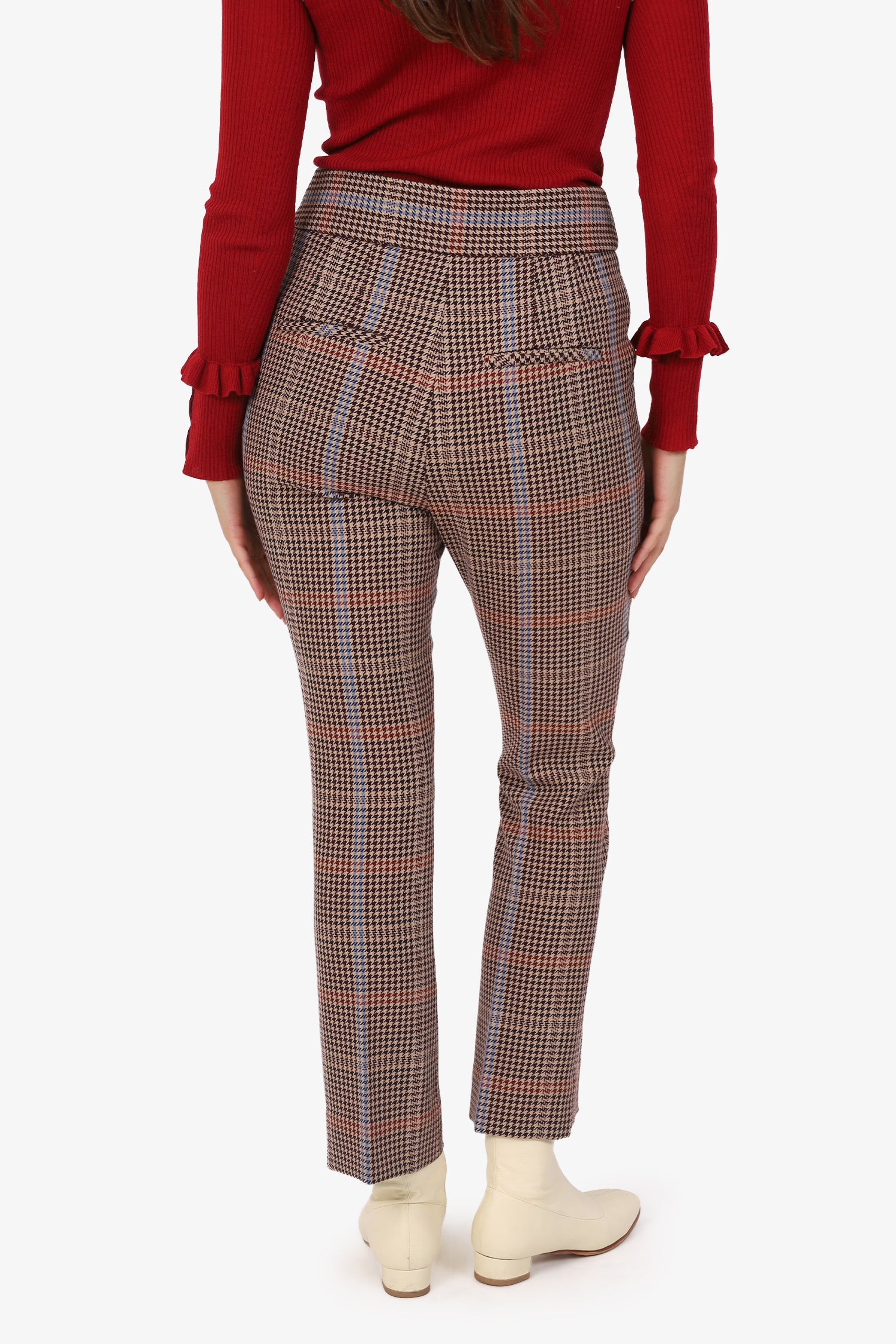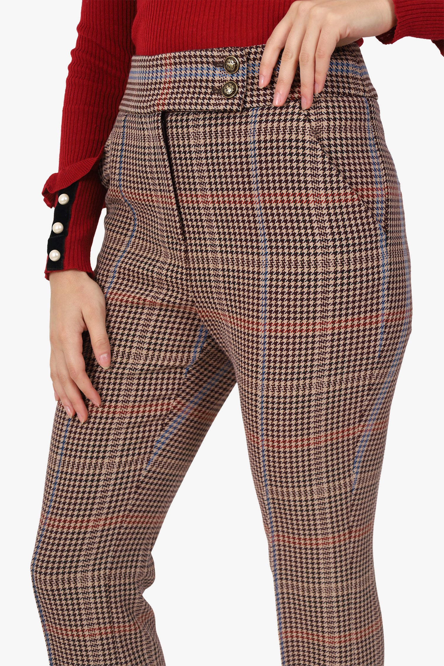 Refresh availabilityVeronica Beard Brown Check Pants. Slip-on. Front zip with button-up closure. 4 exterior slip pockets; 2 side, and 2 rear. Gold-tone hardware. Tonal stitching.