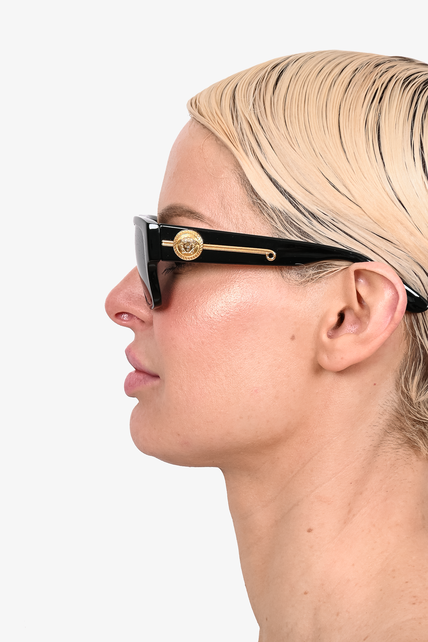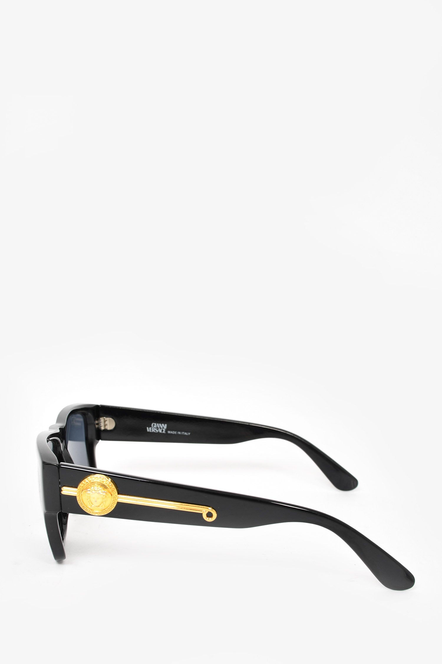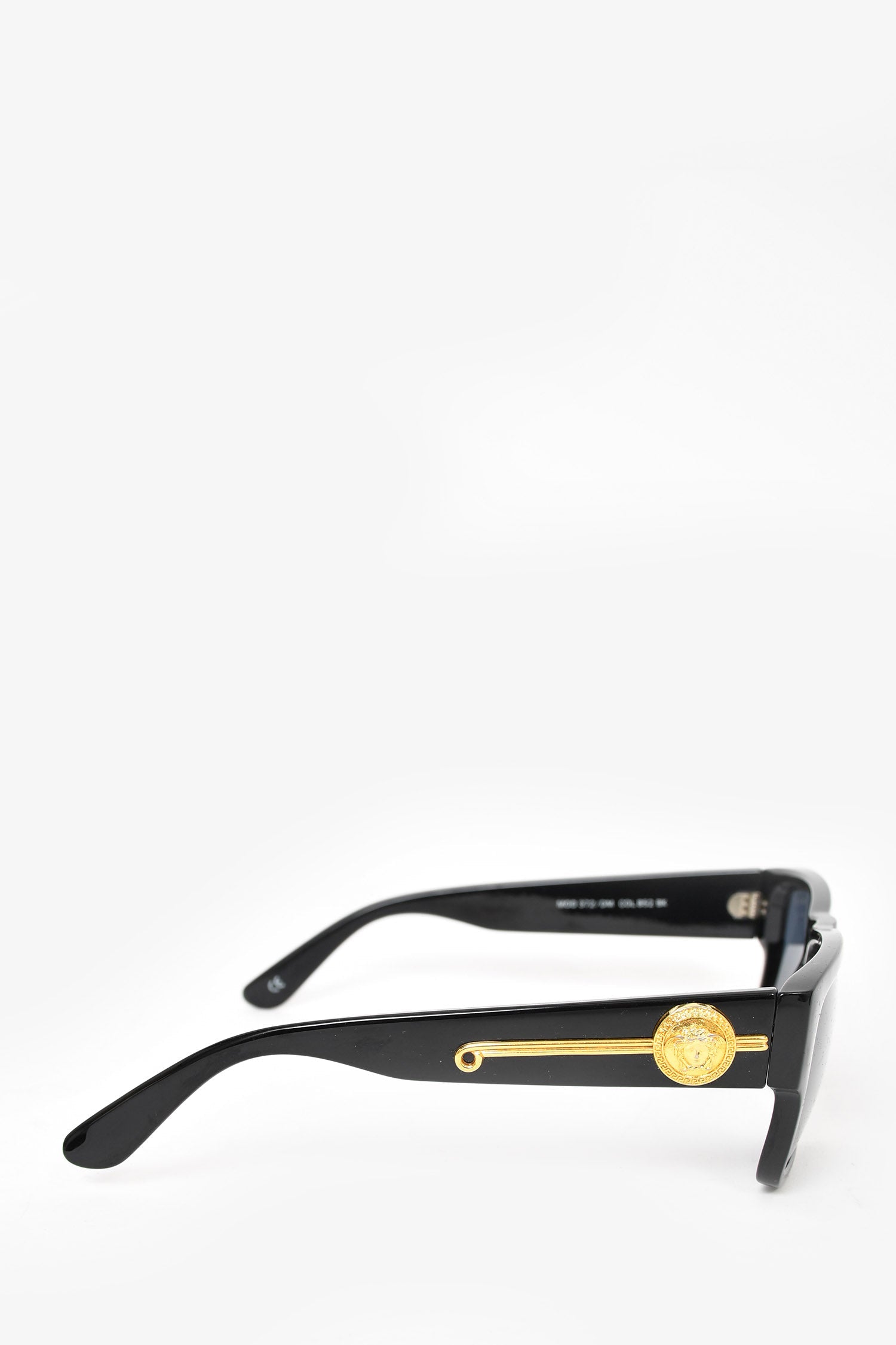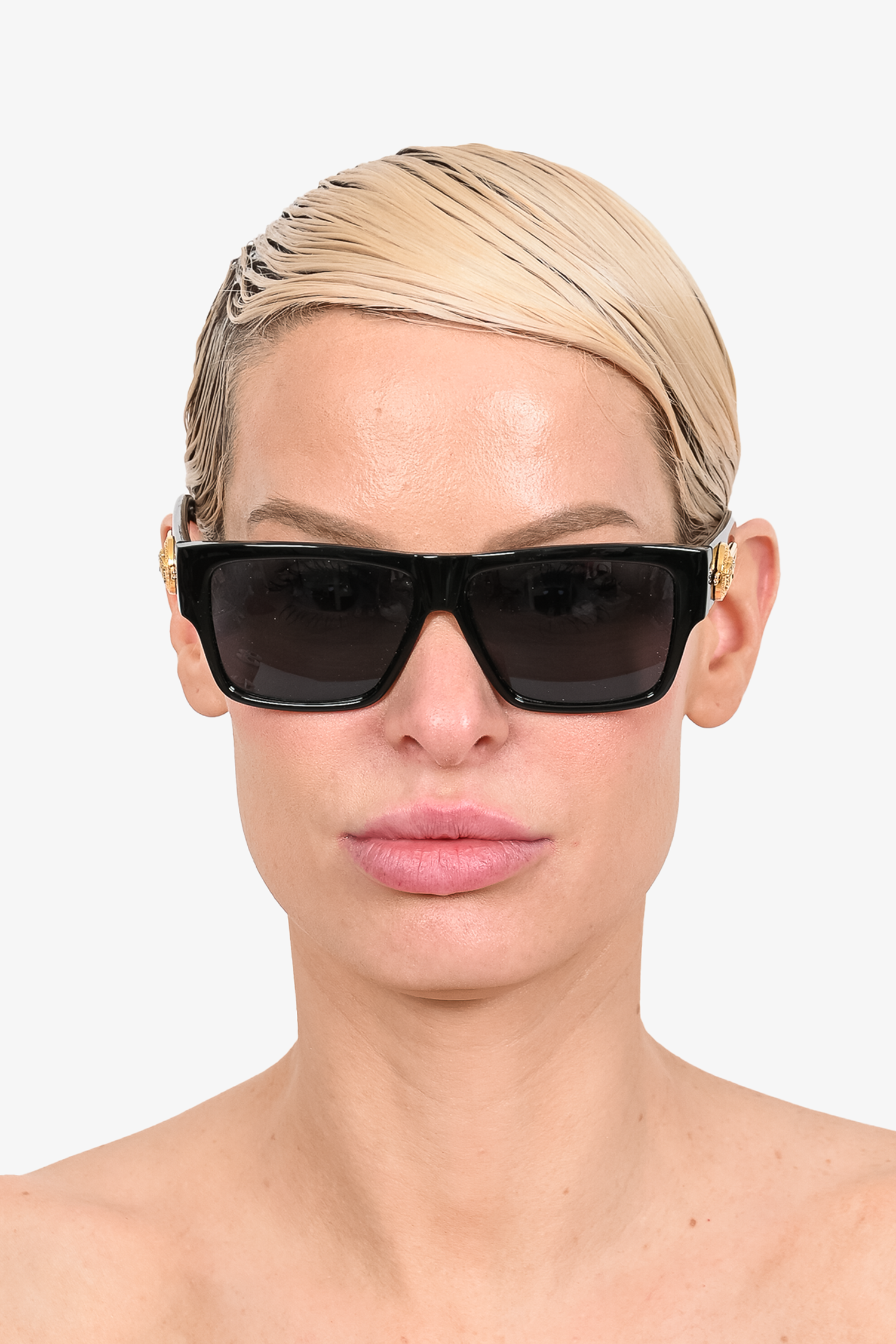 Versace Black Acrylic Square Frame Sunglasses w/ Gold Medusa