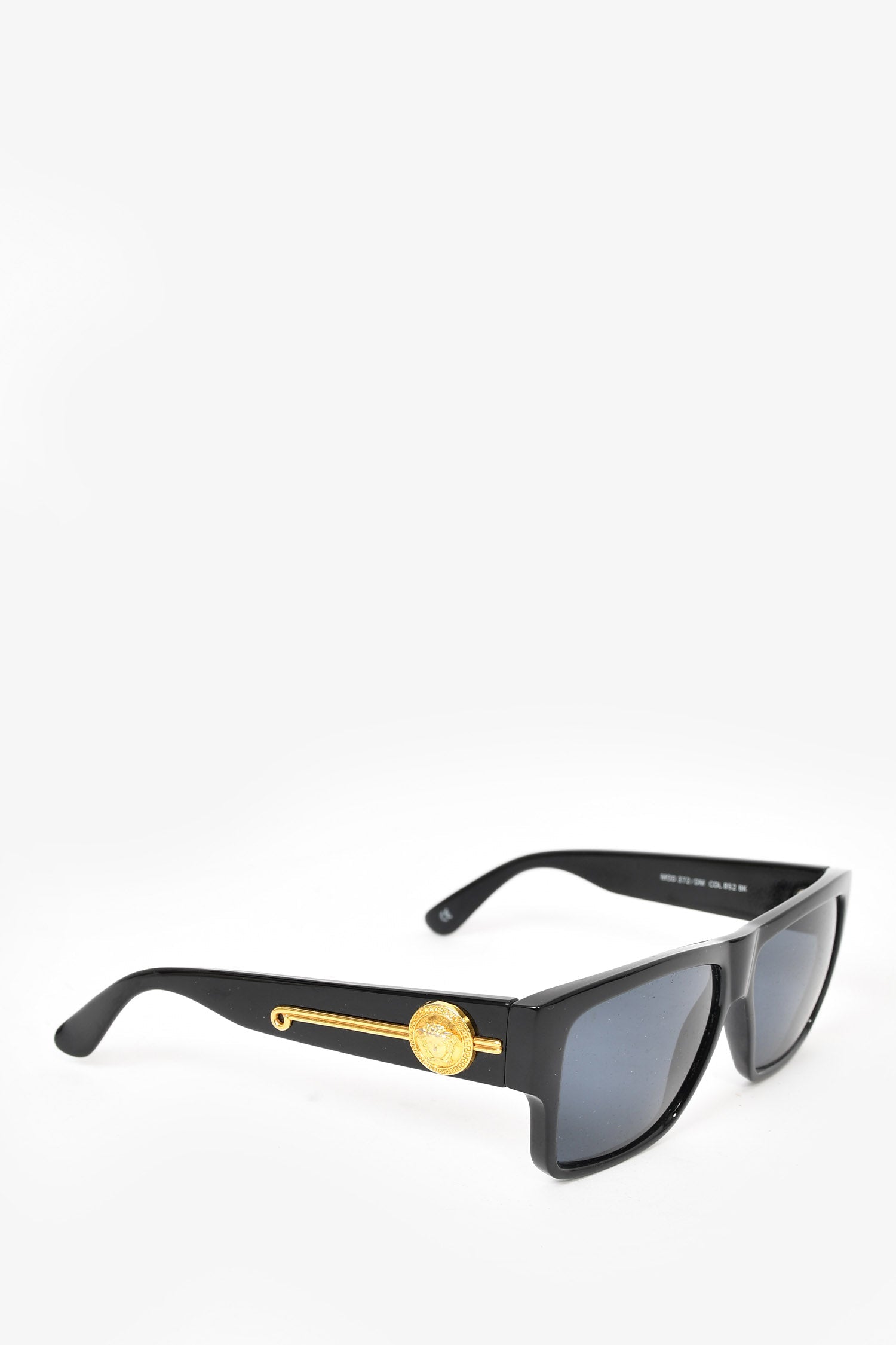 Refresh availabilityVersace Black Acrylic Square Frame Sunglasses with Gold Medusa. Built-in nose pads.