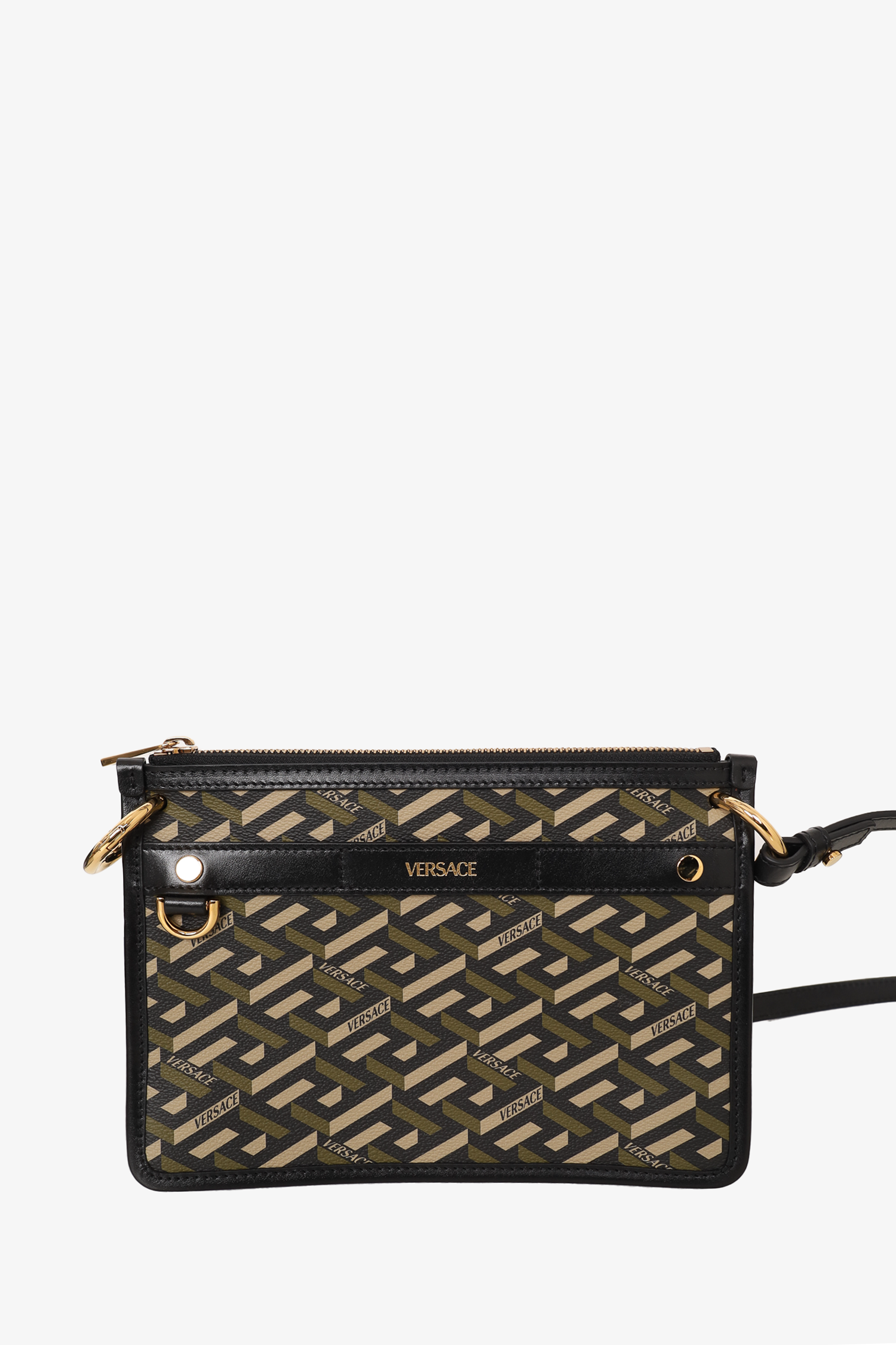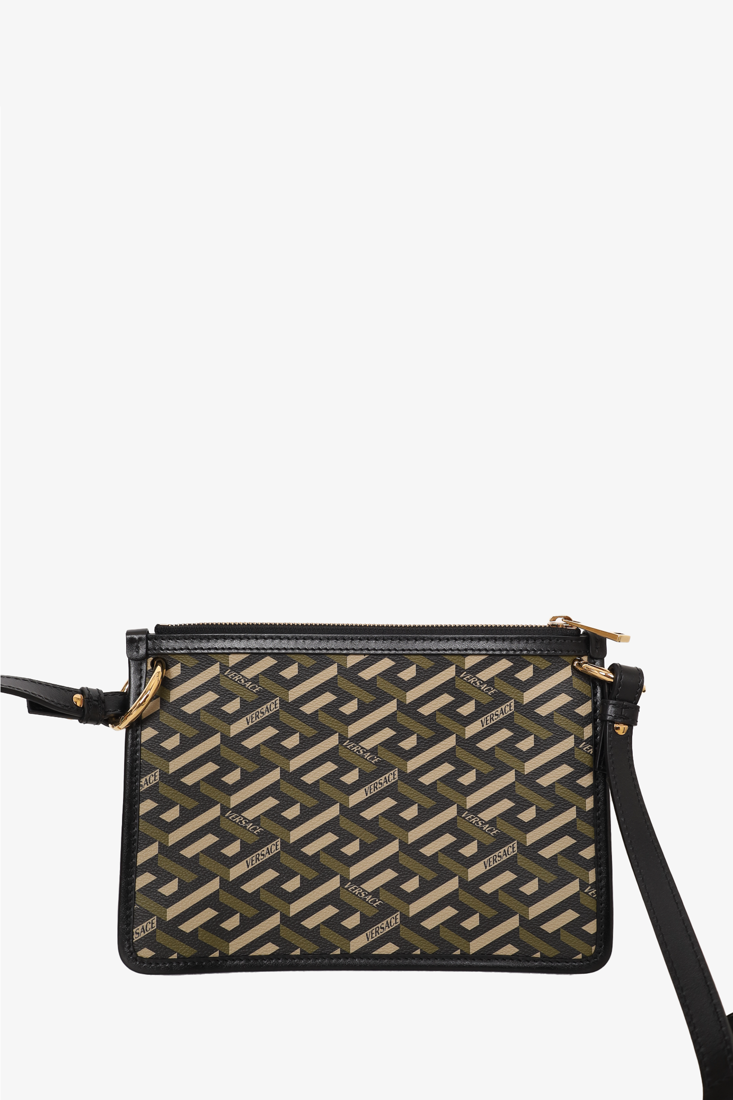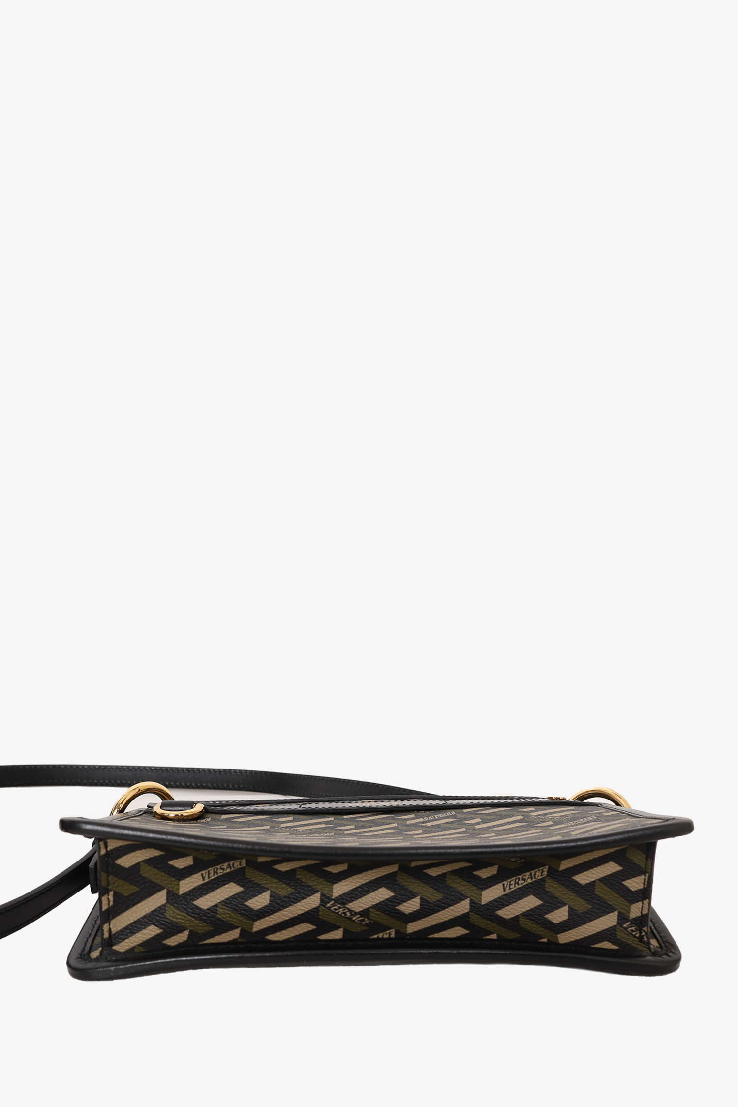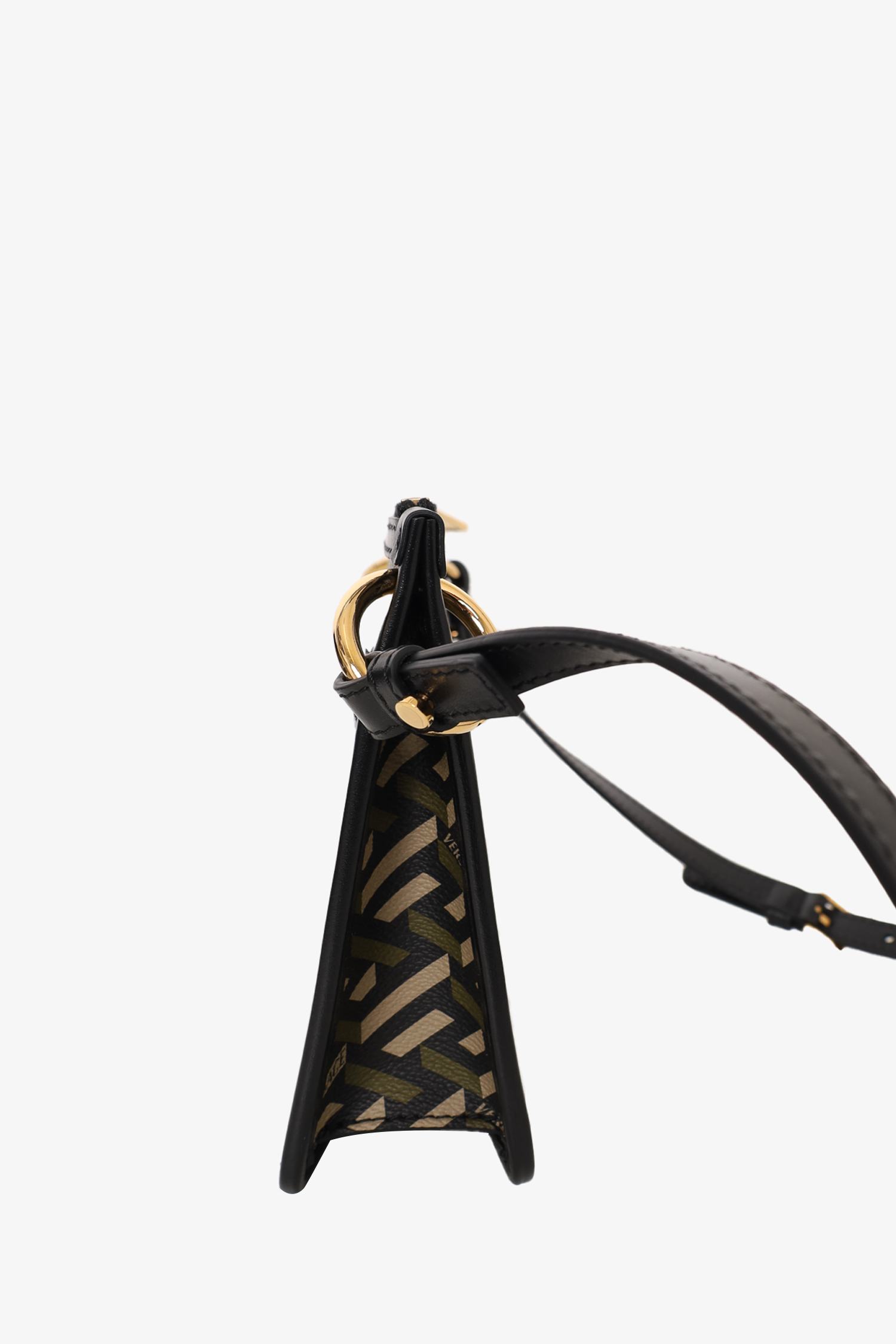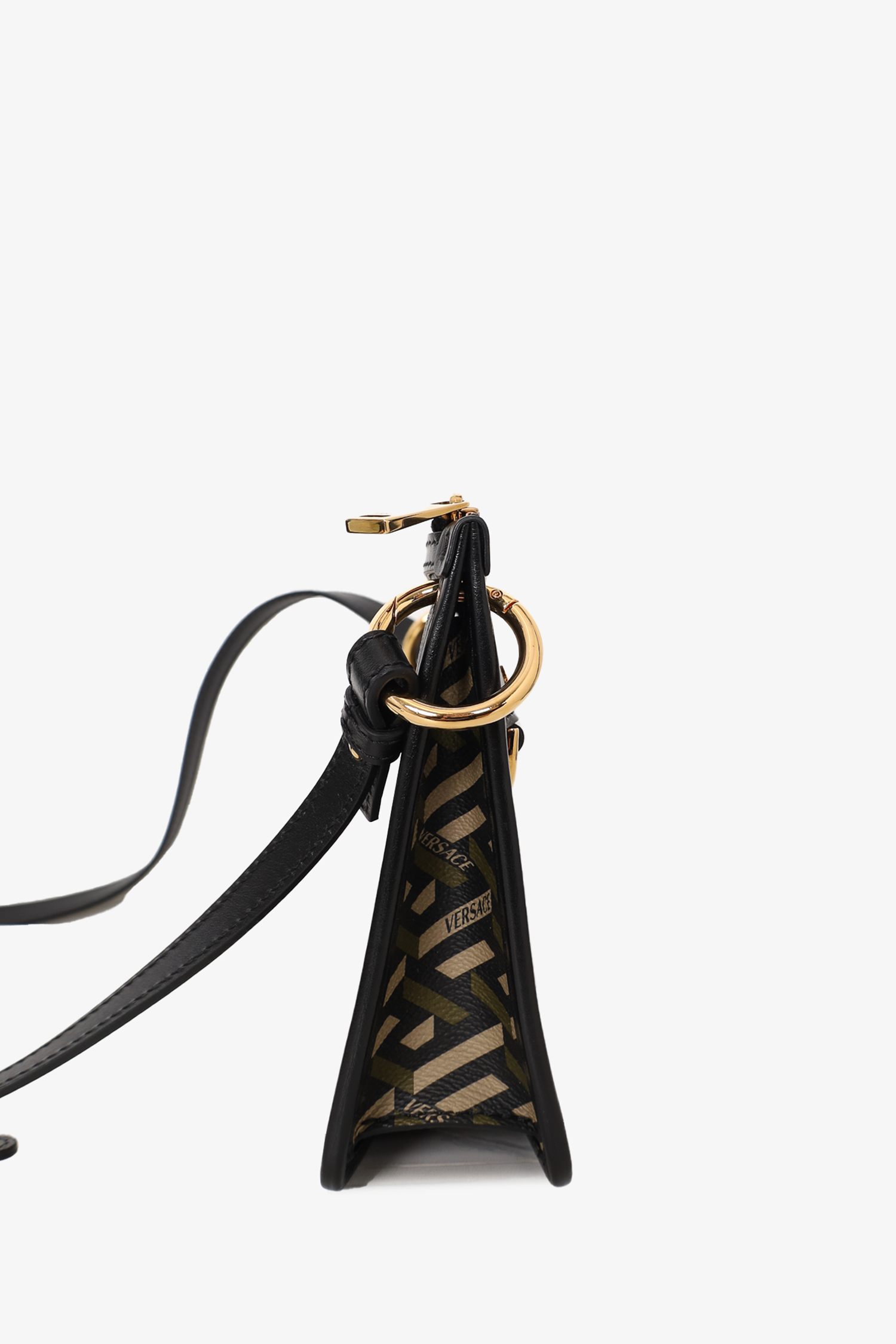 Versace Black Canvas & Leather La Greca Small Shoulder Bag