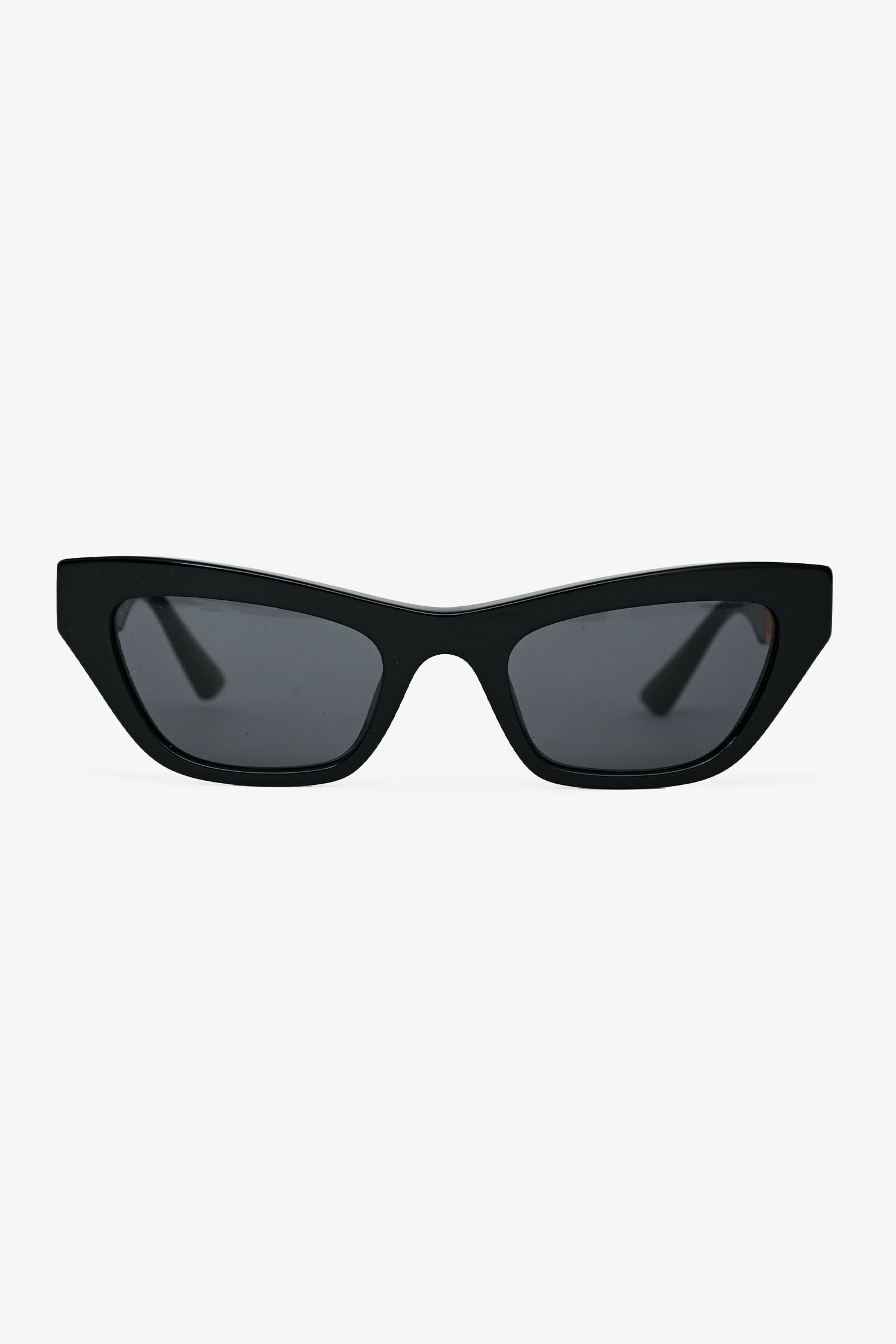 Refresh availabilityVersace Black Cat Eye Sunglasses. Tinted lenses. Built-in frame nose pads. Gold-tone hardware.