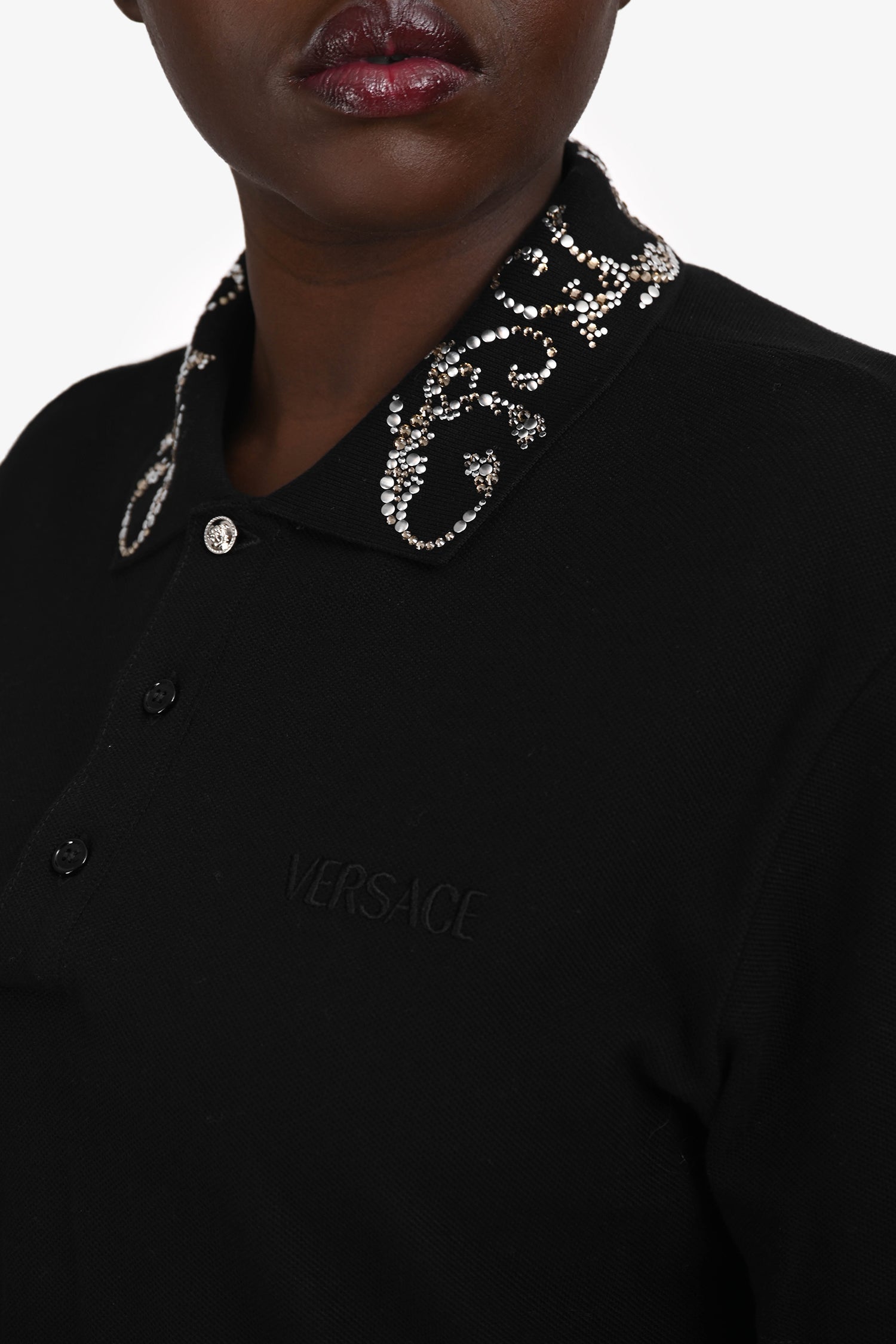 Versace Black Cotton Crystal Polo T-Shirt Size M Mens