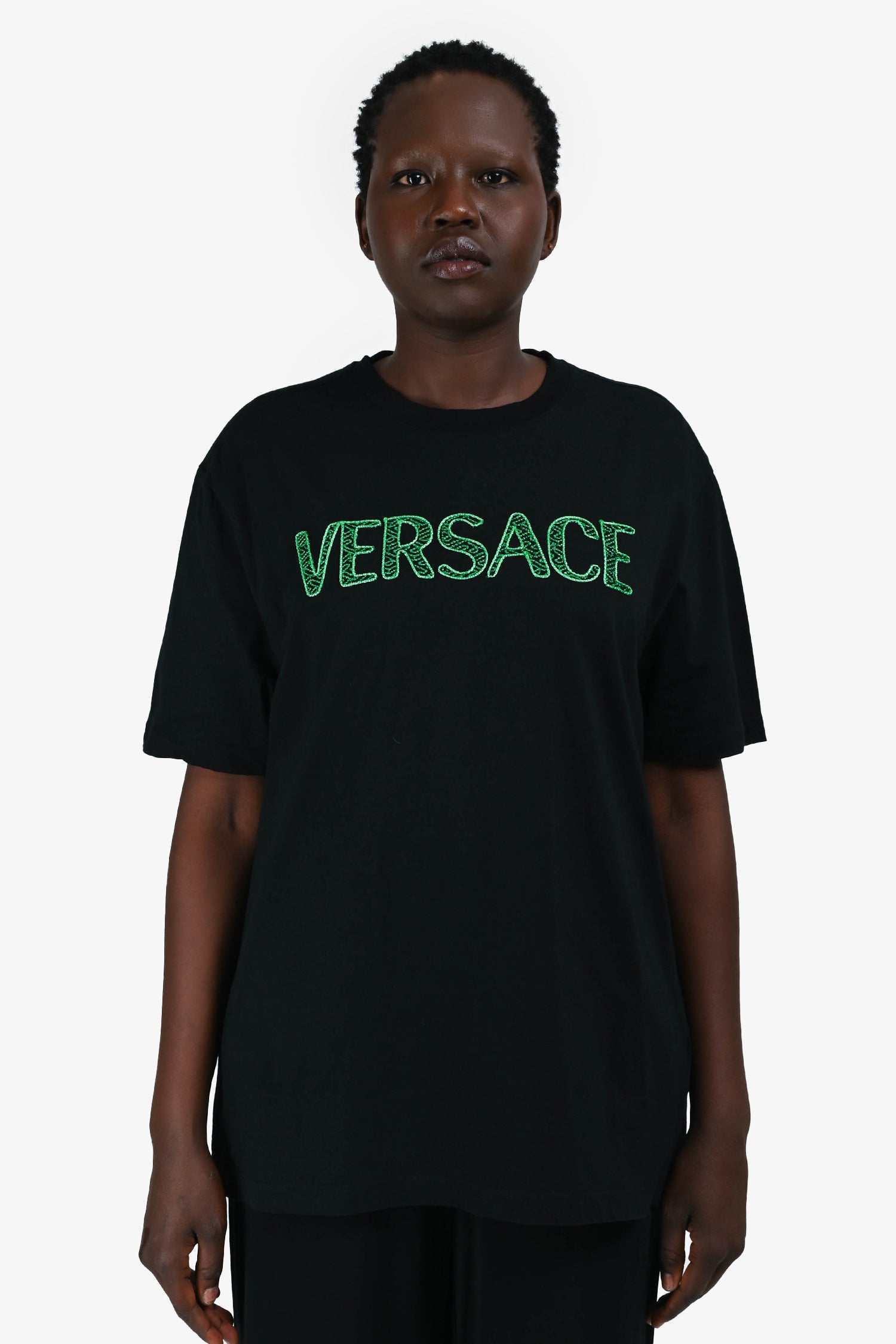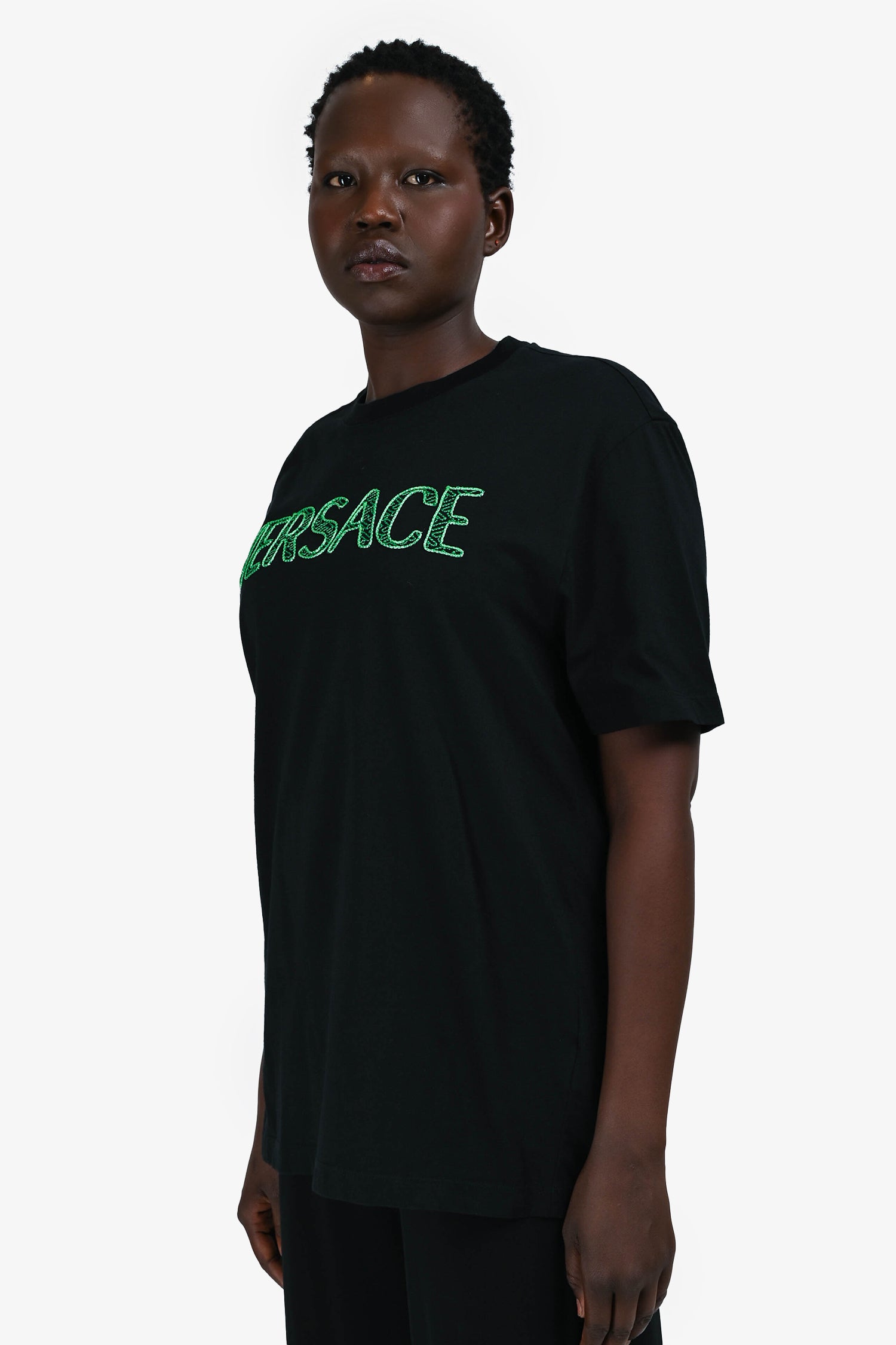 Versace Black Cotton Green Embroidered Logo T-Shirt Size XL Mens
