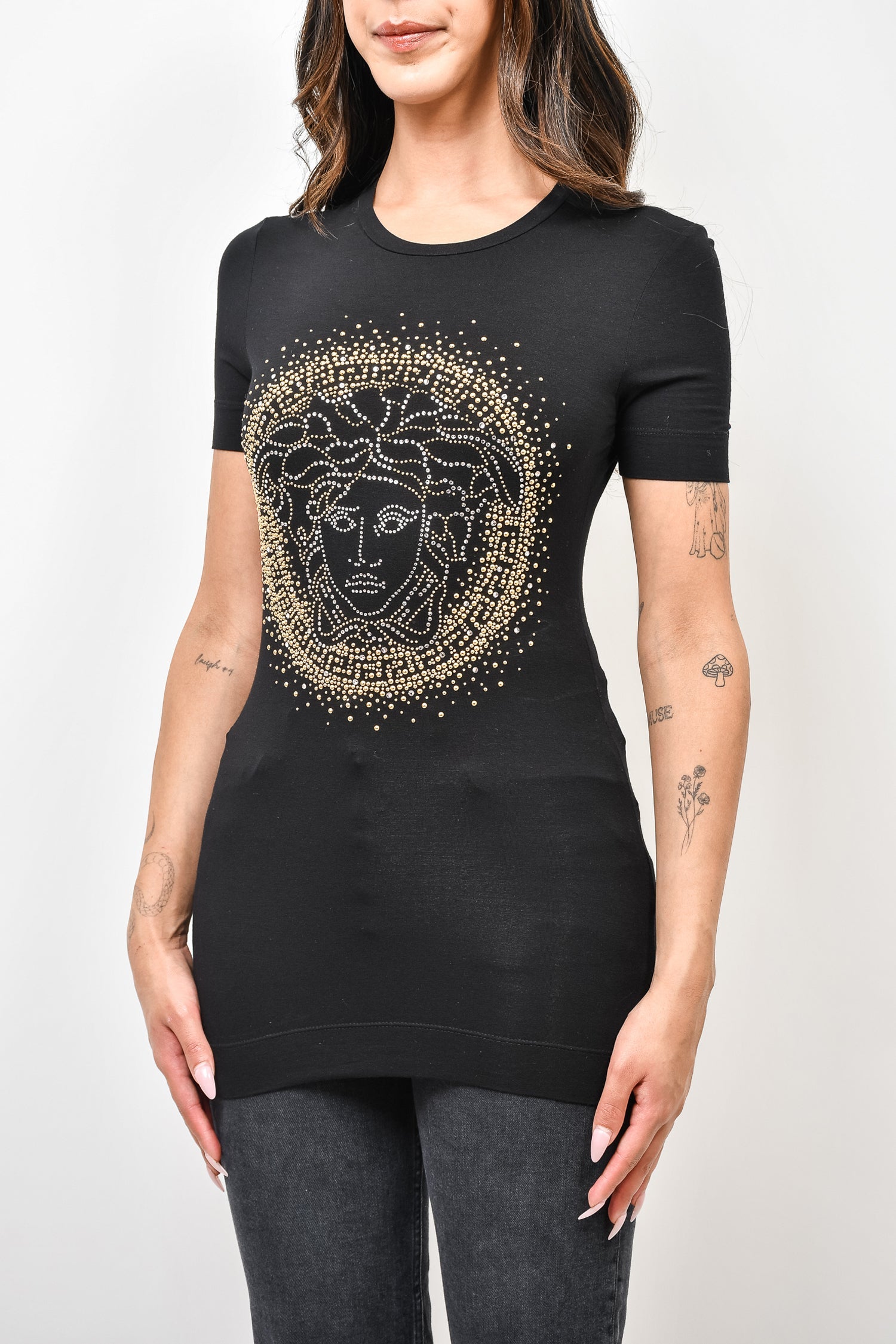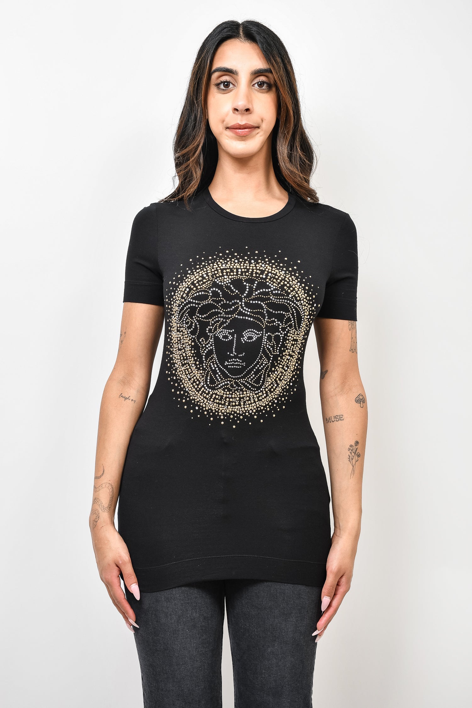 Versace Black Cotton Medusa Head Embellished T-Shirt Size 36