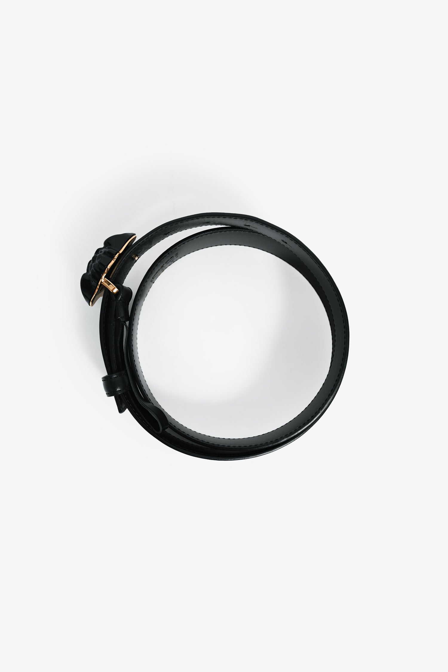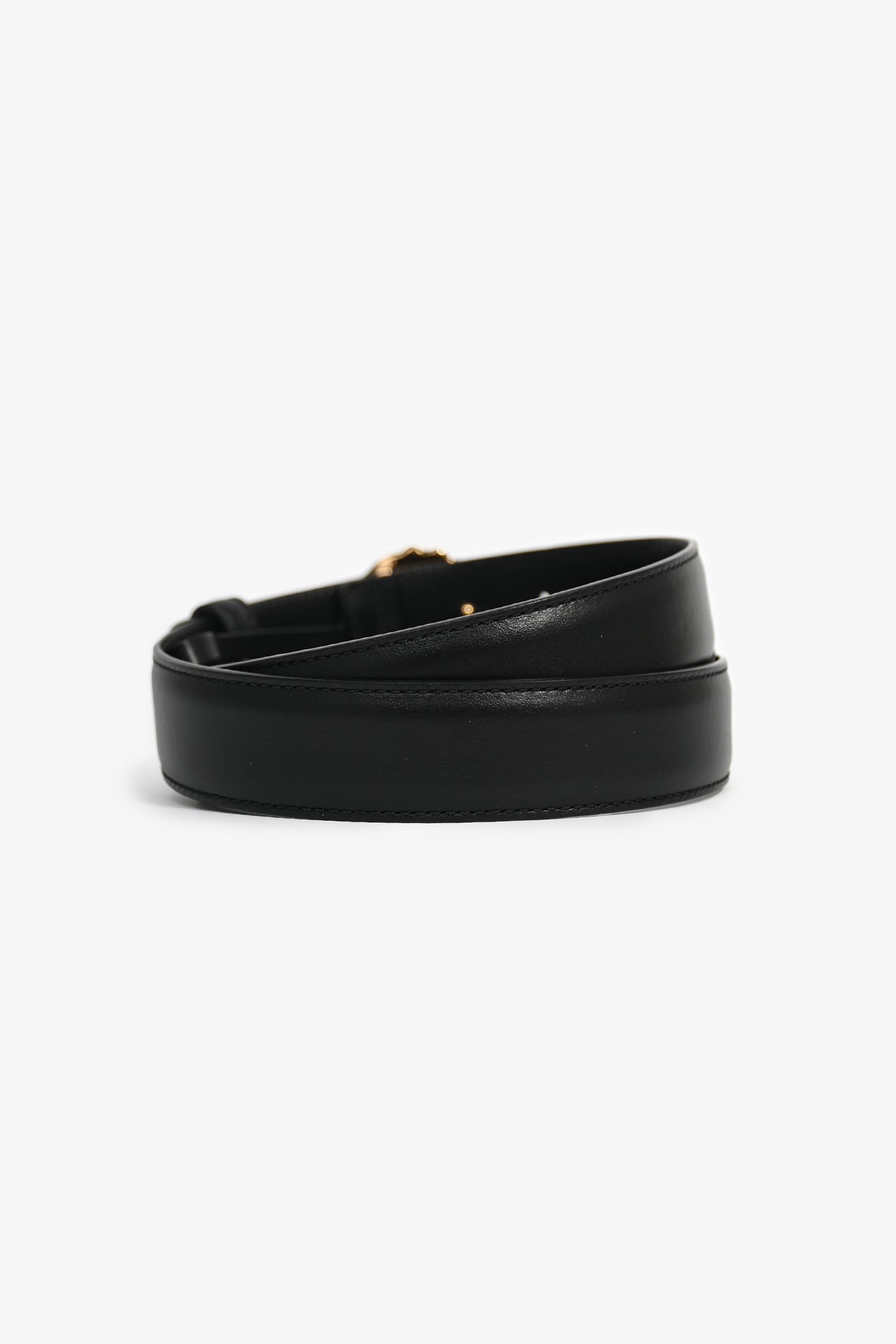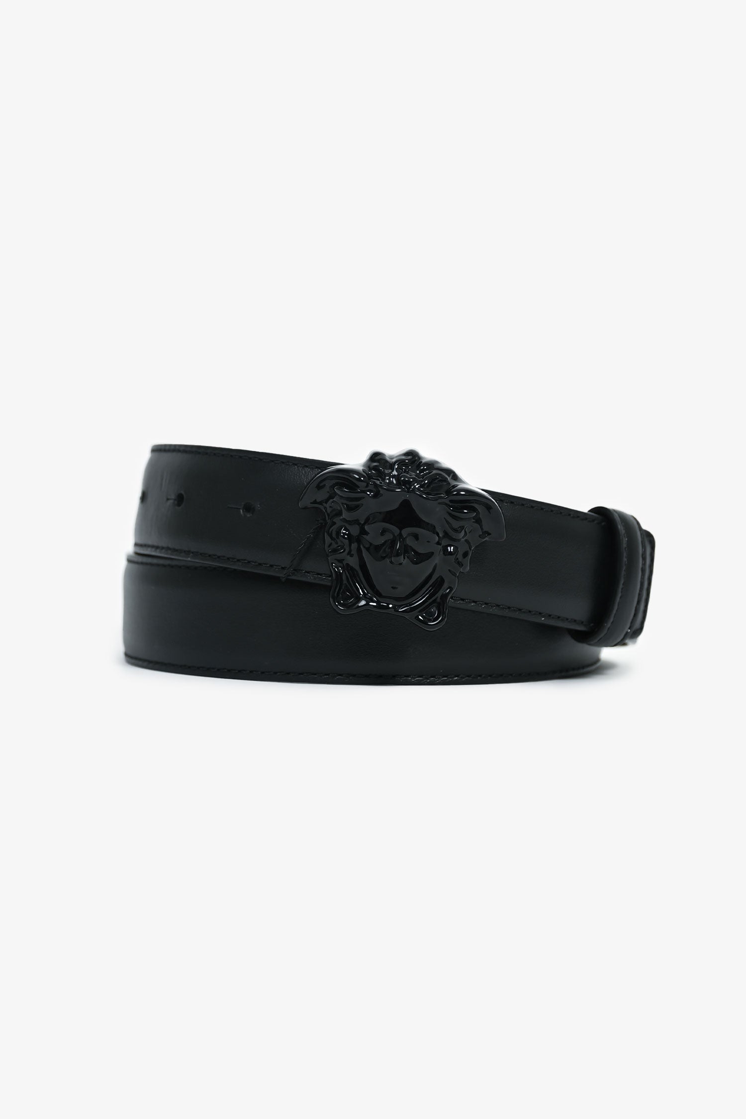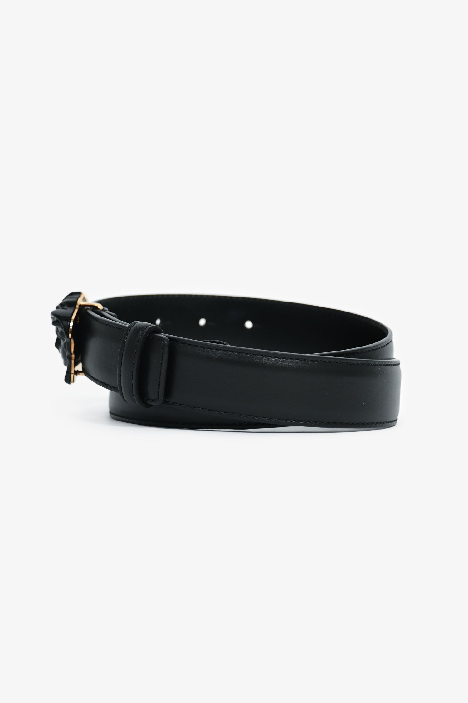 Refresh availabilityVersace Black Leather Medusa Head Belt. Gold-tone hardware. Tonal stitching.
