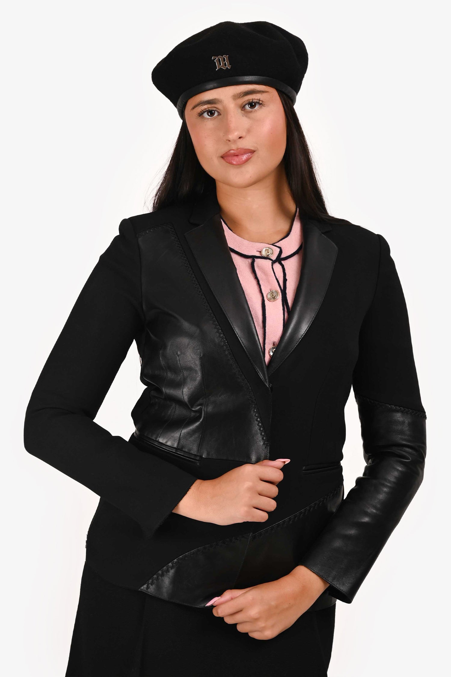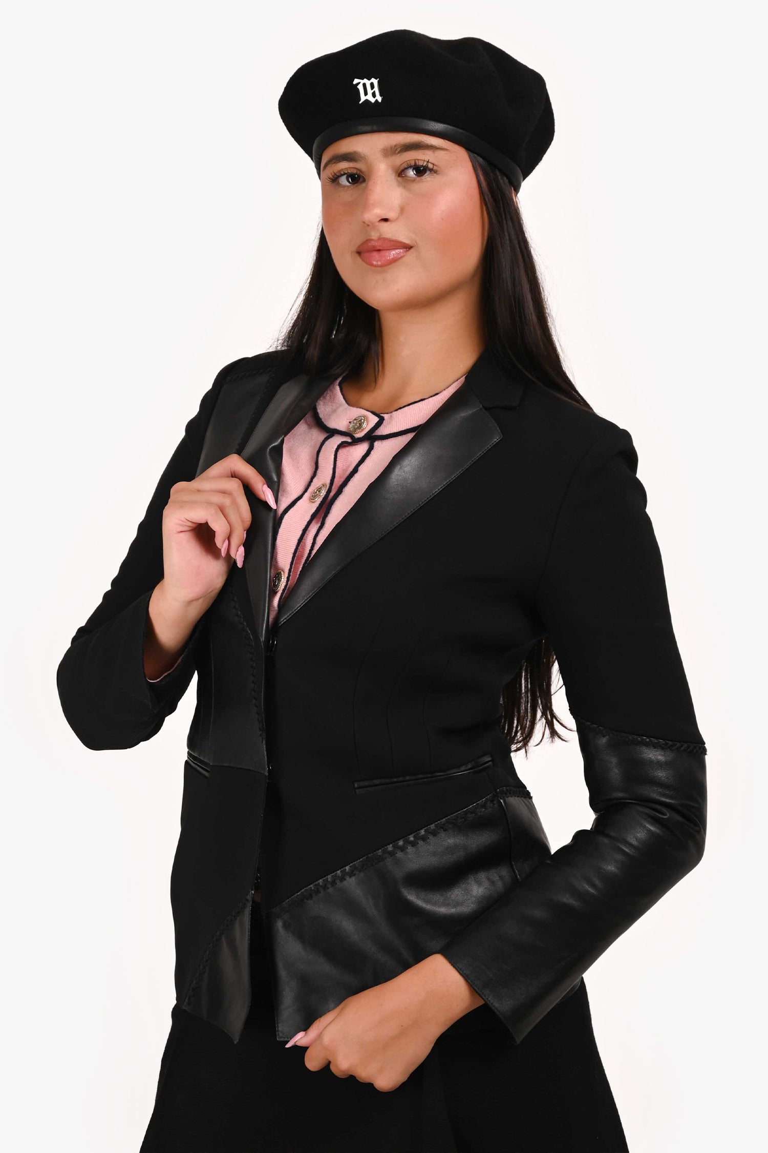 Versace Black Leather Patchwork Single Breasted Blazer Size 40