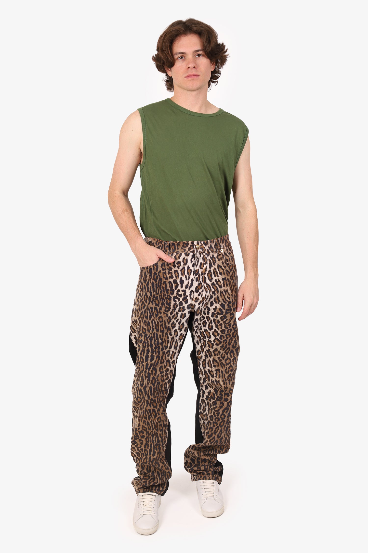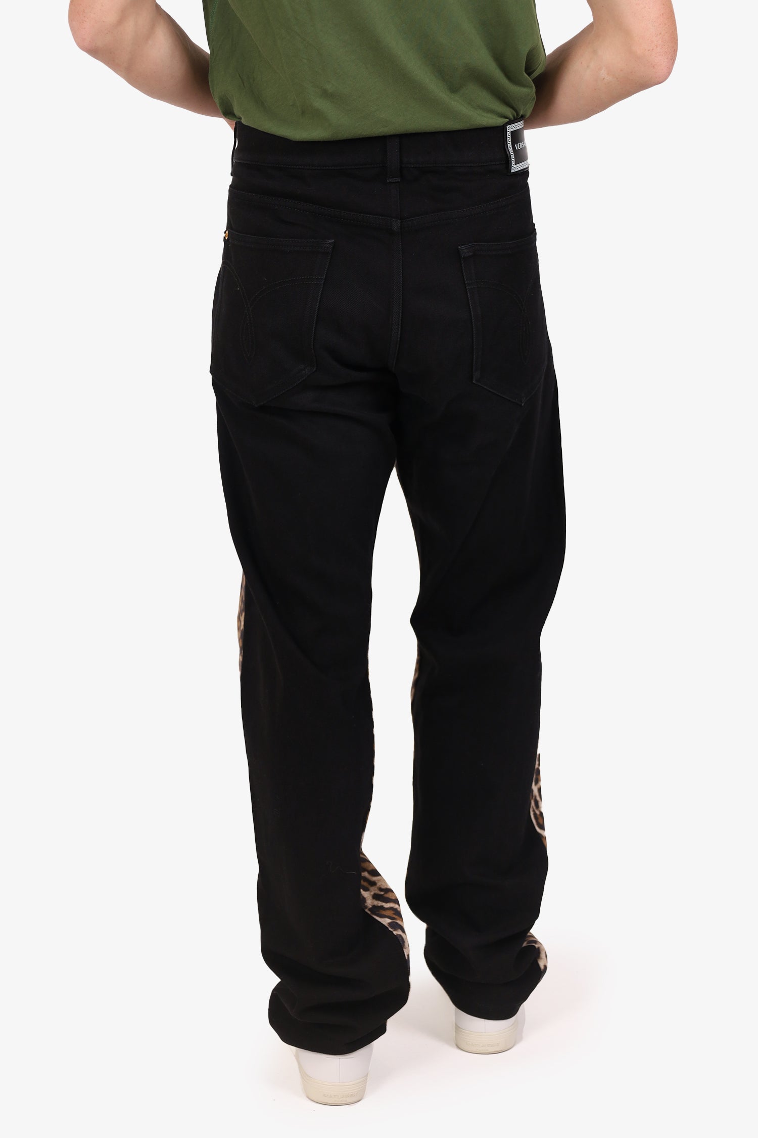 Versace Black Leopard Print Denim Straight Leg Jeans Size 40 Mens