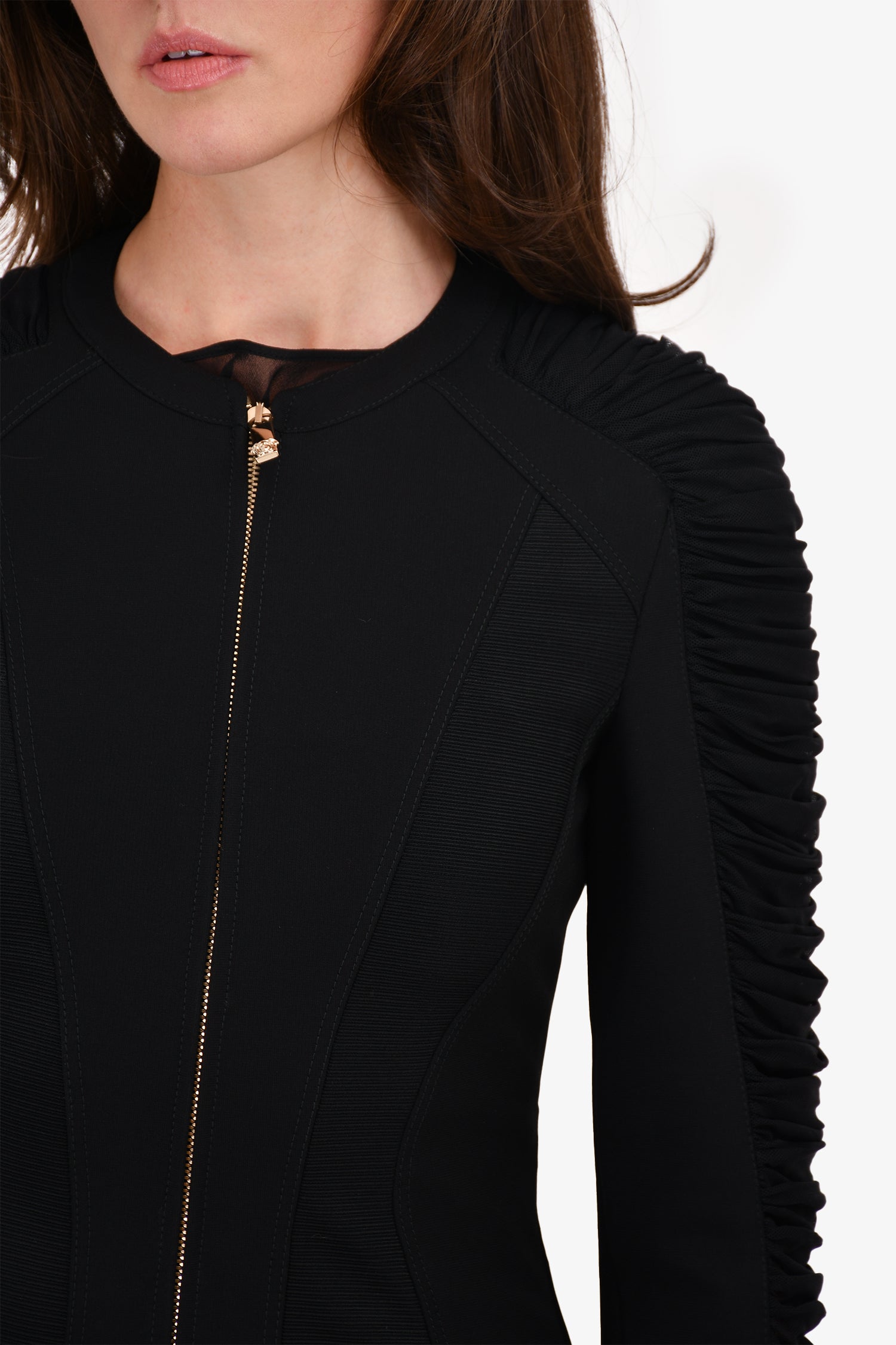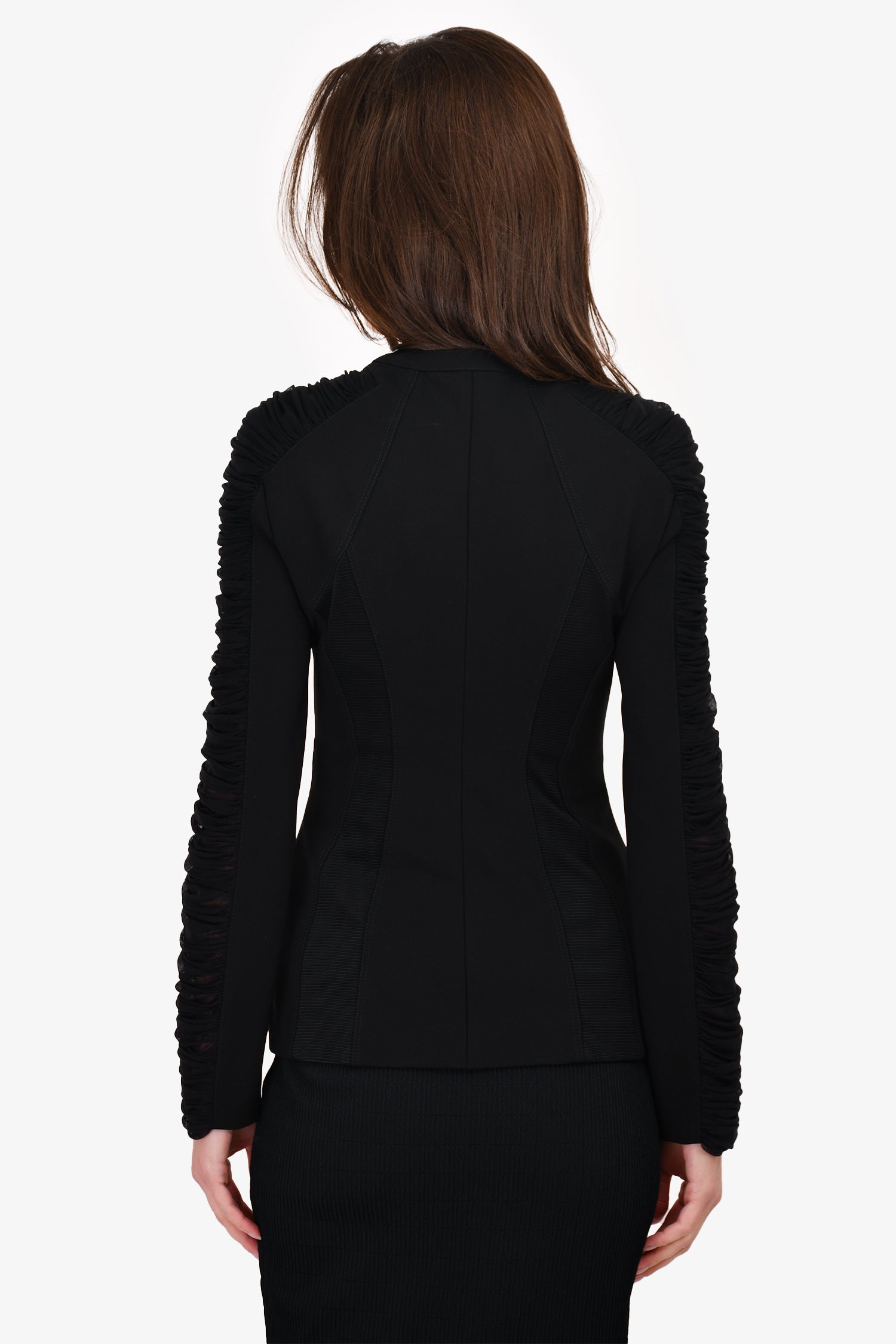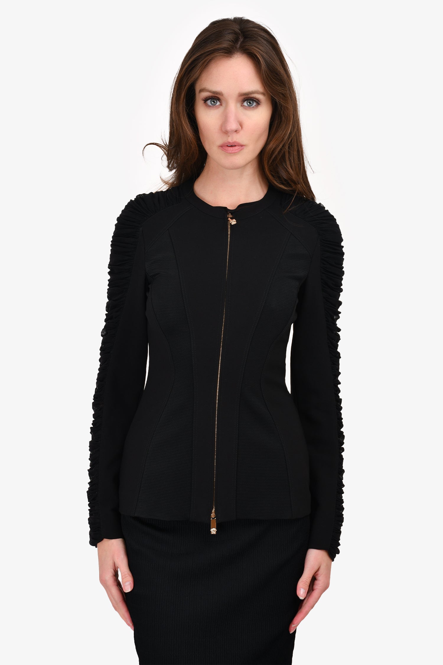 Versace Black Ruched Sleeve Zip Up Jacket Size 40