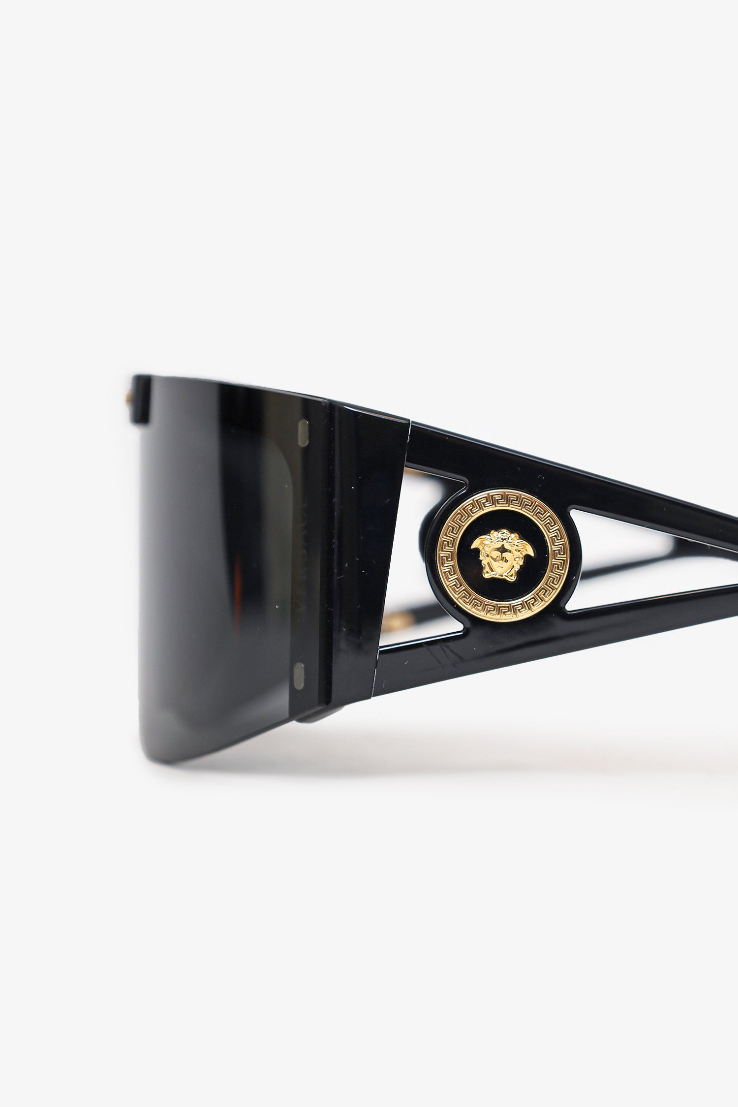 Refresh availabilityVersace Black Shield Interchangeable Lenses Sunglasses. Built-in nose pads. Gold-tone hardware.